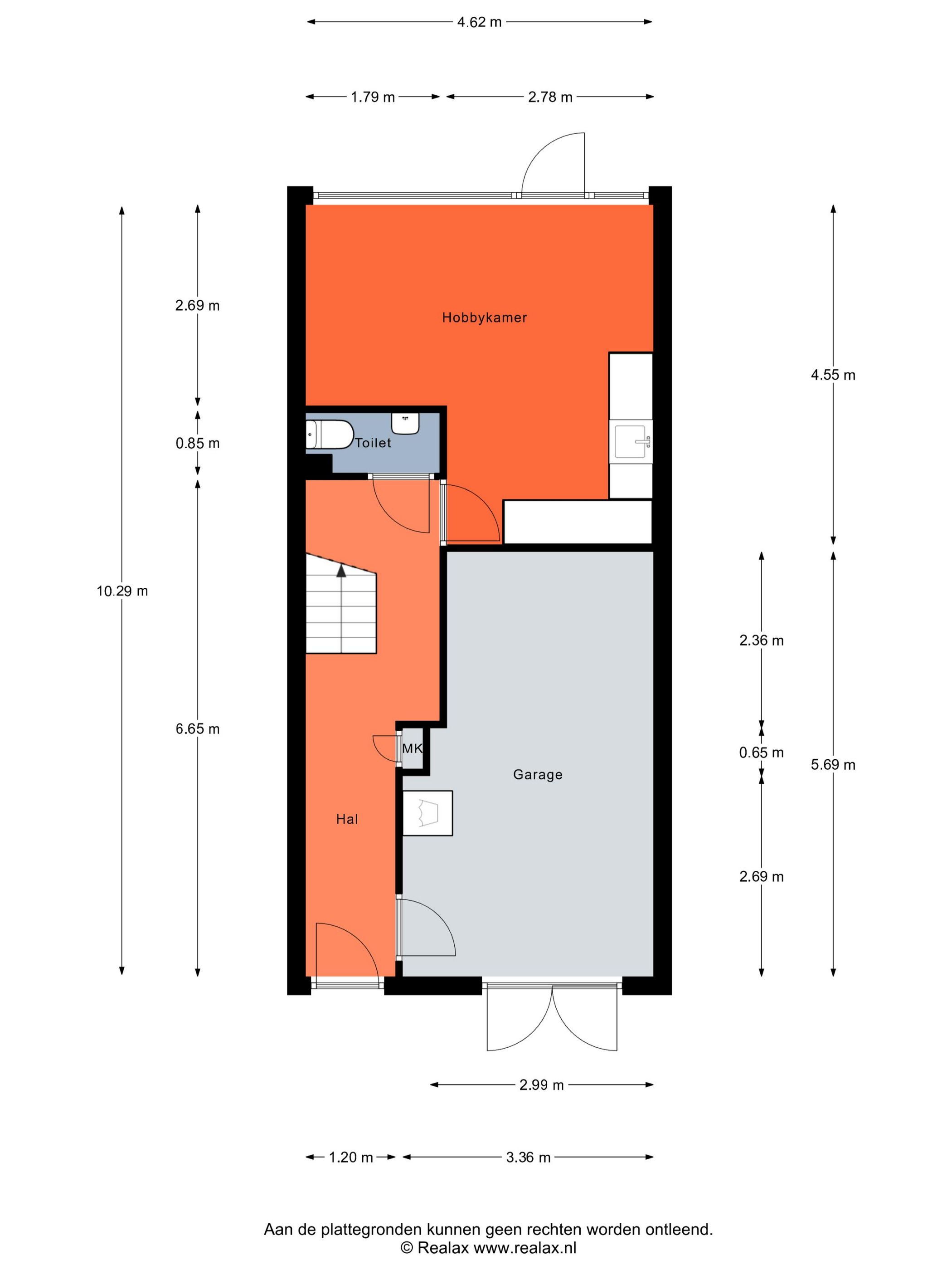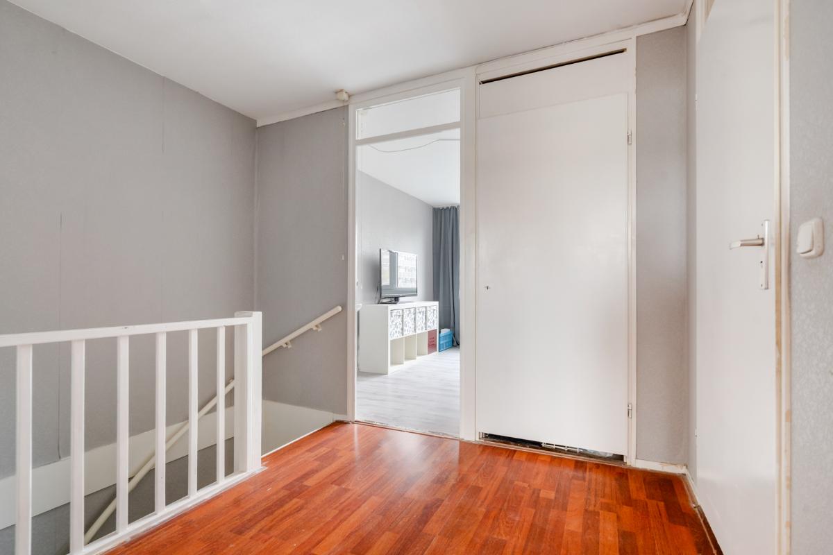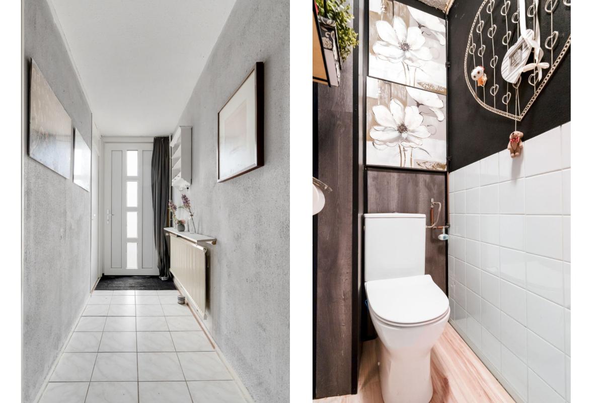 Begane grond: Op de begane grond kom je binnen via de hal, waar je direct toegang hebt tot de meterkast, het toilet en de trapopgang naar de eerste verdieping. Vanuit de hal stap je door naar de verrassend ruime hobbykamer aan de achterzijde van de woning. Deze kamer biedt volop mogelijkheden: ideaal als werkplek, speelruimte, logeerkamer of om te toveren tot extra woonruimte. Dankzij het grote raam en de deur naar de tuin geniet je hier van veel lichtinval en een prettig uitzicht op het groen. Aan de voorzijde van de woning bevindt zich de inpandige garage, die niet alleen ruimte biedt voor een auto, maar ook perfect is voor het stallen van fietsen, het opbergen van gereedschap of als klusruimte. De garage is direct vanuit de hal bereikbaar, wat het extra praktisch maakt.