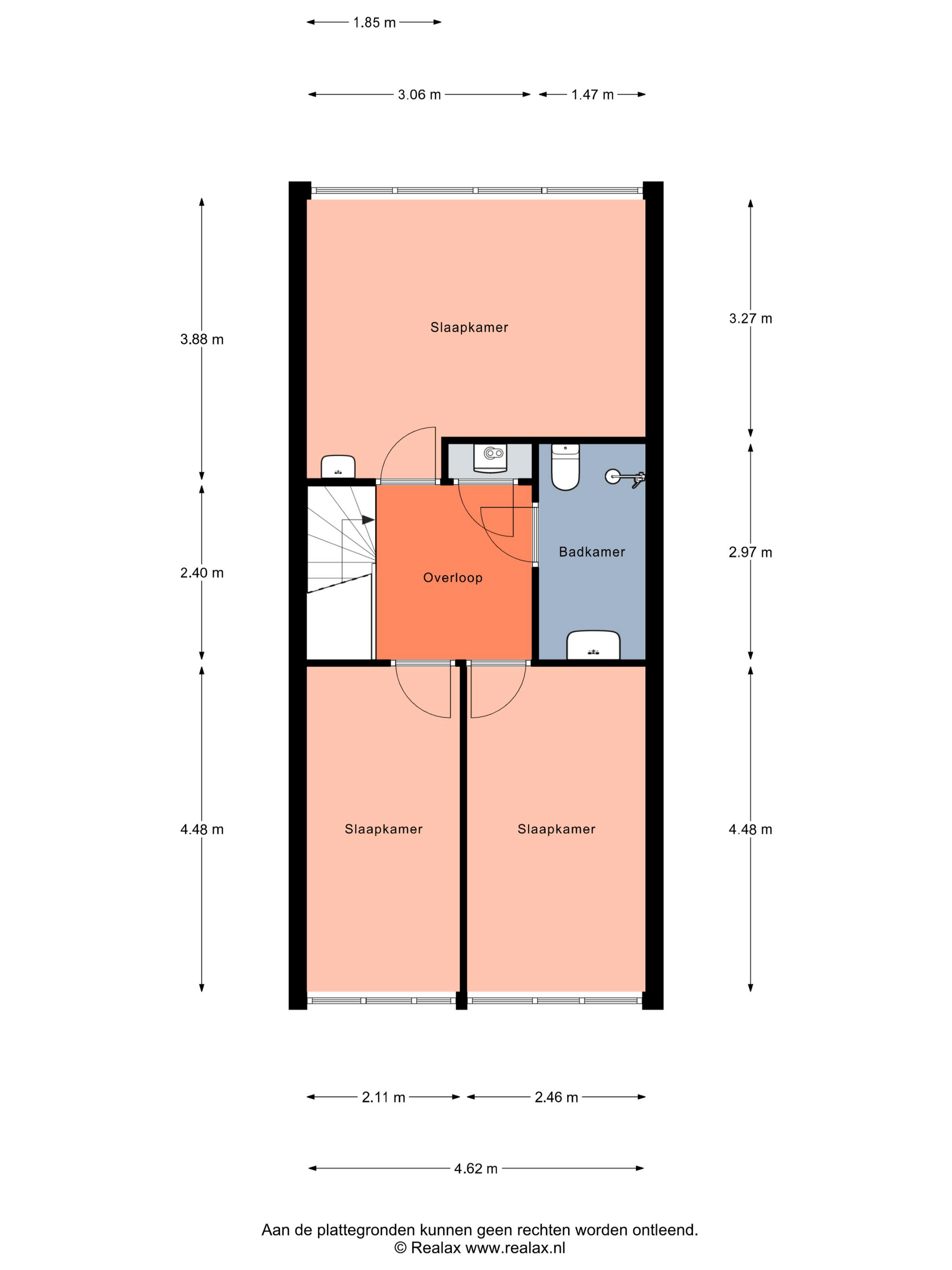 2e verdieping: Op de tweede verdieping bevinden zich drie slaapkamers en een badkamer. De grootste slaapkamer, aan de achterzijde van de woning, heeft ruimte voor een tweepersoonsbed en een grote kledingkast. Daarnaast is er dankzij de brede raampartij veel lichtinval. Hier creëer je met gemak een fijne plek om heerlijk tot rust te komen. Aan de voorzijde vind je nog twee slaapkamers, allebei met hun eigen mogelijkheden. Denk aan een gezellige kinderkamer, een inspirerende werkplek of juist die walk-in closet waar je altijd van droomde. De badkamer is strak afgewerkt in een moderne kleurstelling en voorzien van een inloopdouche met regendouche, een wastafelmeubel met opbergruimte, toilet en designradiator. Een fijne, functionele ruimte waar je de dag fris kan beginnen.