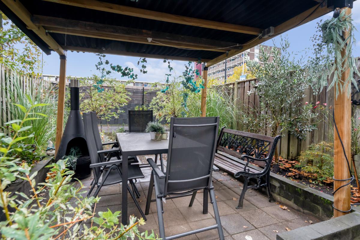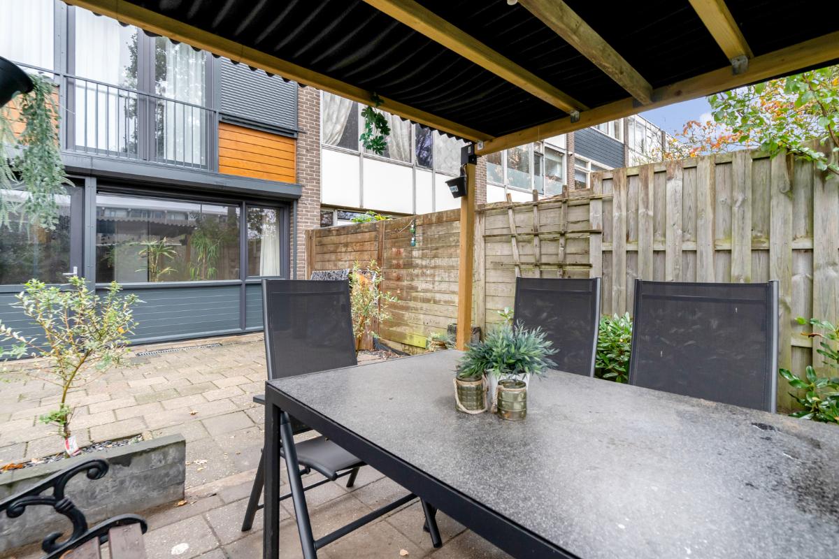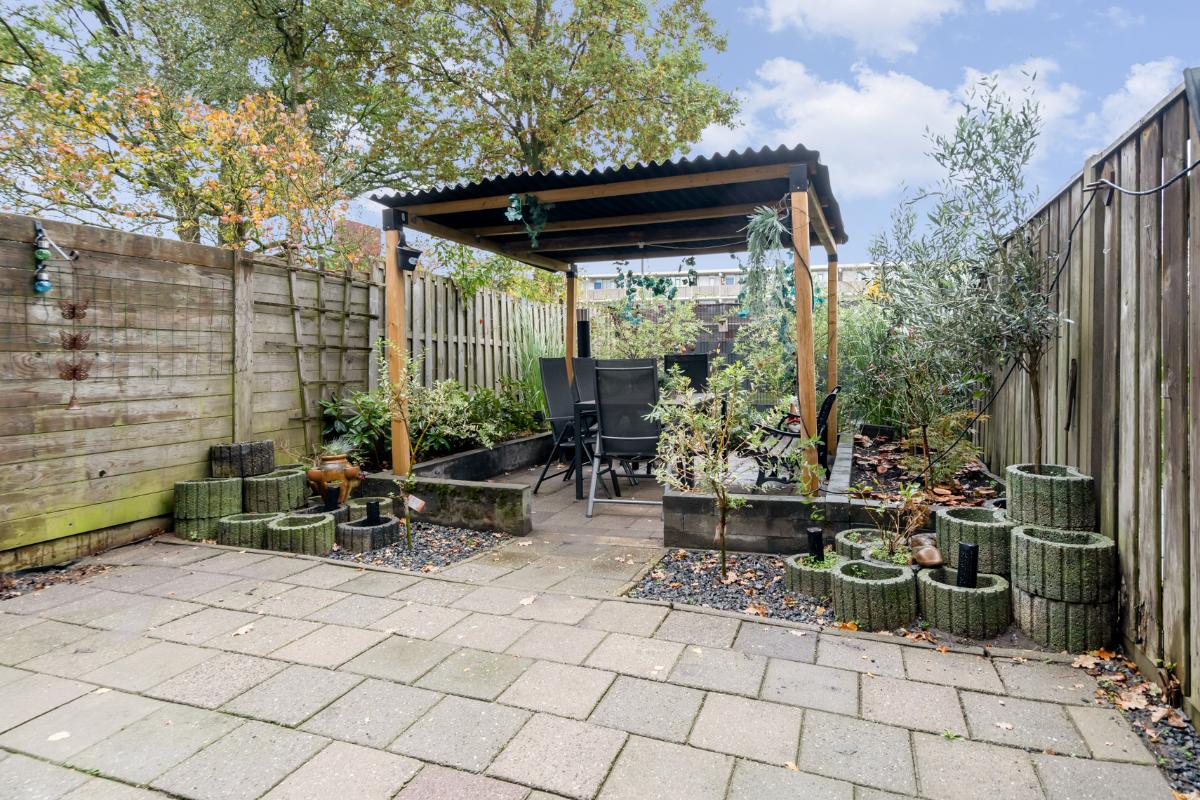 Tuin: De achtertuin is een heerlijke plek om even te ontsnappen aan de drukte van de dag. Dankzij de praktische indeling met grotendeels bestrating is het onderhoud minimaal, terwijl de verhoogde plantenbakken en het groen langs de randen zorgen voor een sfeervol geheel. Onder de overkapping kun je genieten van een kop koffie in de ochtendzon tot een gezellige borrel op een zwoele zomeravond. Er is genoeg ruimte voor een eettafel, loungehoek of buitenkachel, waardoor dit echt een verlengstuk van je woonkamer wordt.
