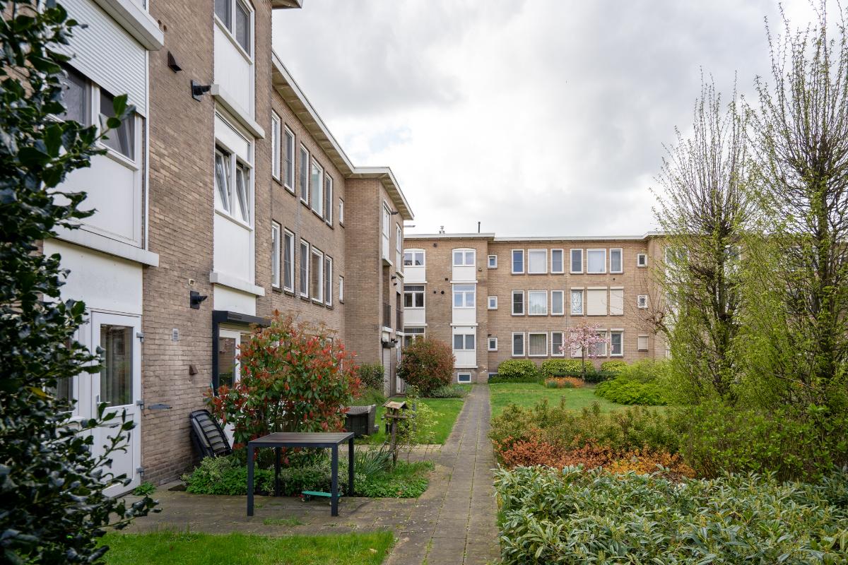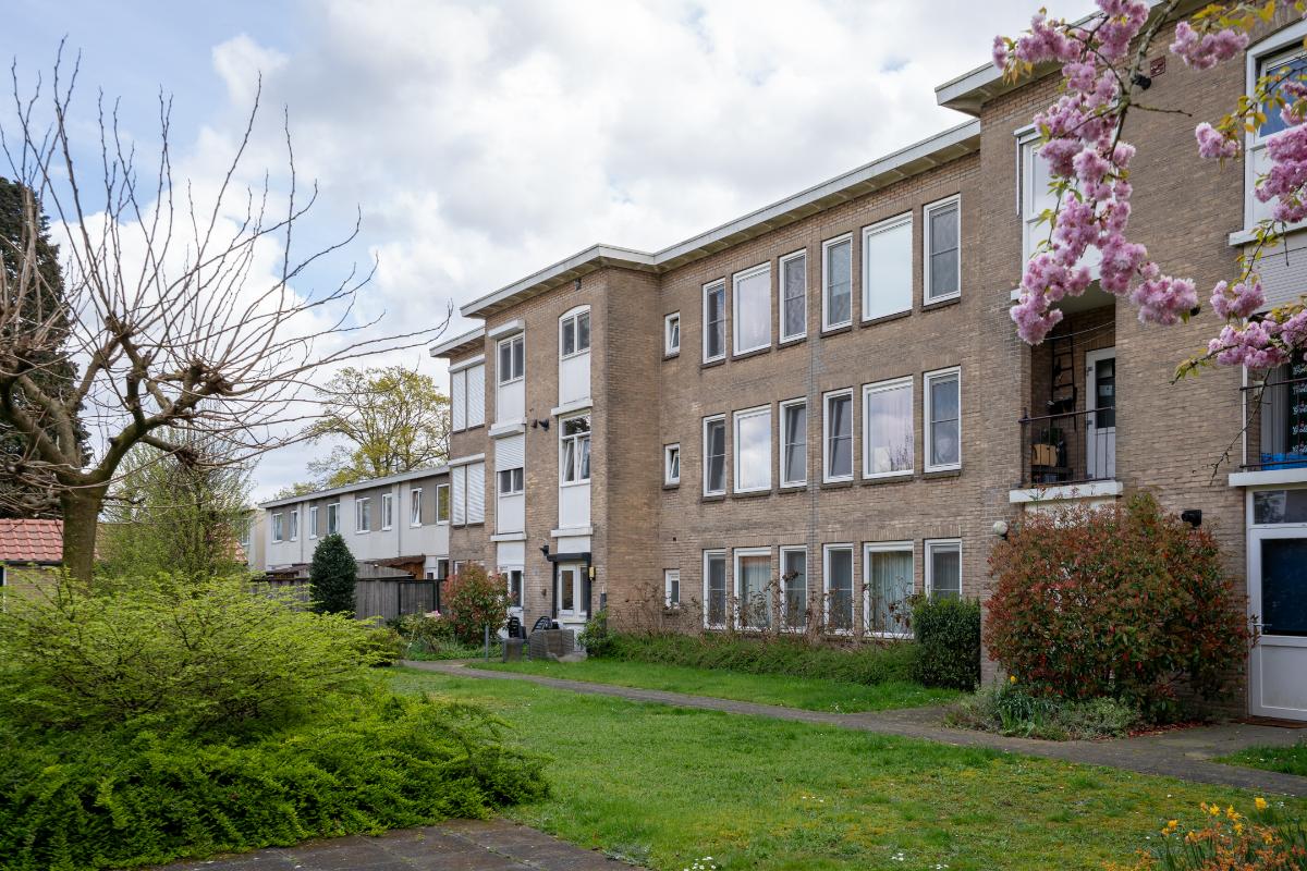 Via de centrale entree kom je binnen in een nette gezamenlijke hal met een intercom, de postvakken en het trappenhuis. Het appartement zelf ligt op de begane grond en heeft daarmee een bijzonder prettige ligging. Ook woon je hier dus gelijk aan het binnenplein. Dat zorgt voor een laagdrempelig en comfortabel woongevoel met direct zicht op het groen en een rustige omgeving vlak voor de deur. Het binnenterrein is ruim opgezet met gras, beplanting en een open karakter waardoor het complex een vriendelijke en bijna parkachtige sfeer krijgt. Bovendien beschikt het appartement over een praktische berging, handig voor het stallen van fietsen of spullen die je niet dagelijks nodig hebt.