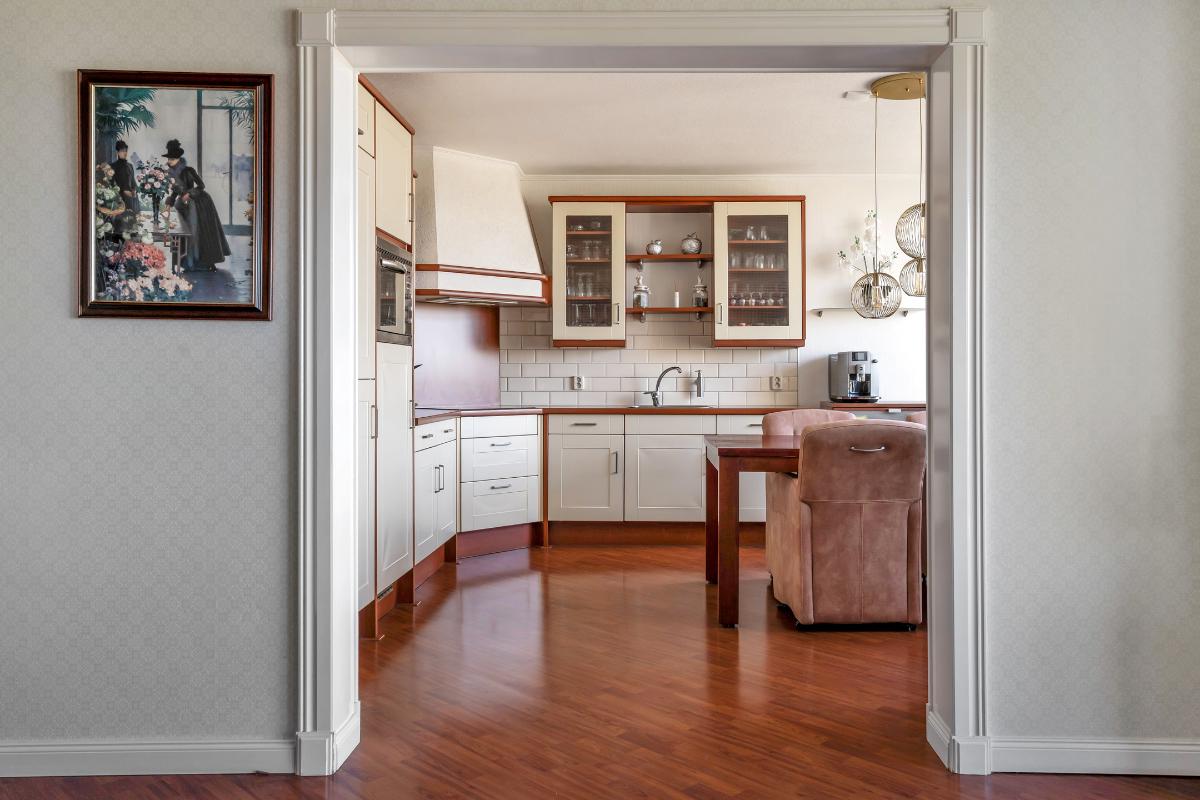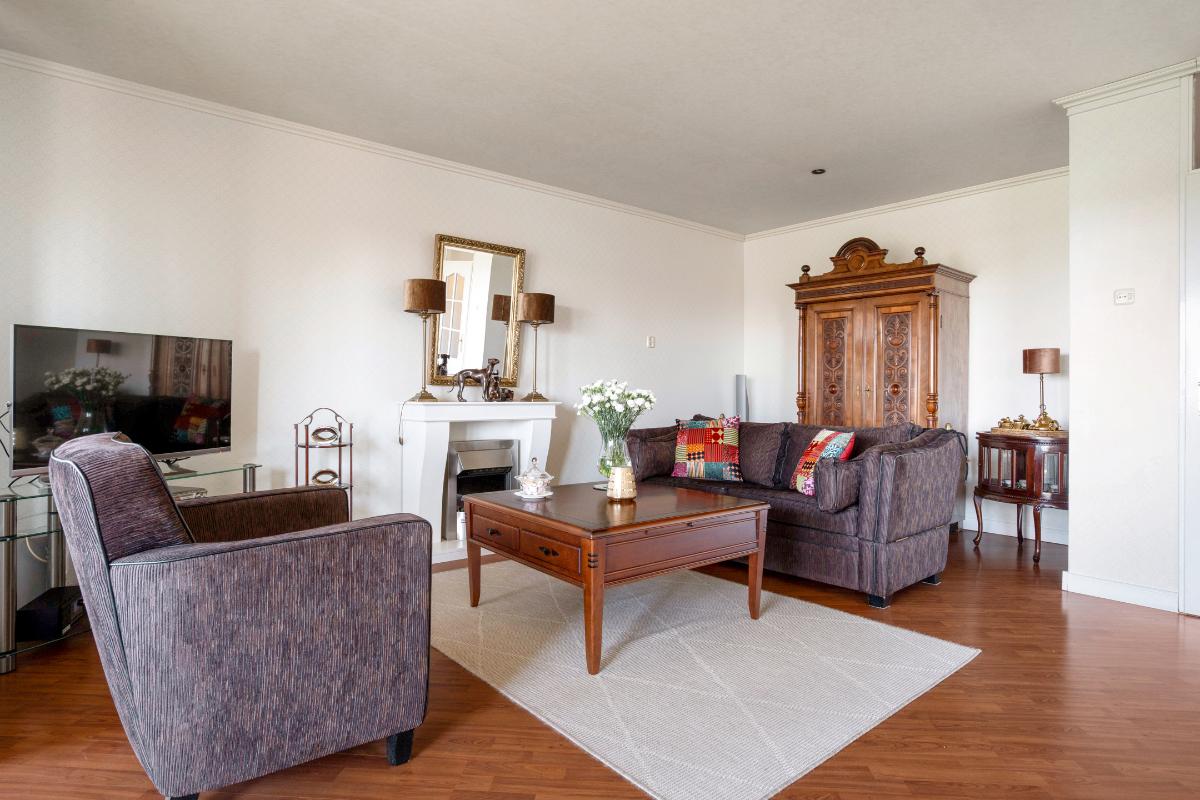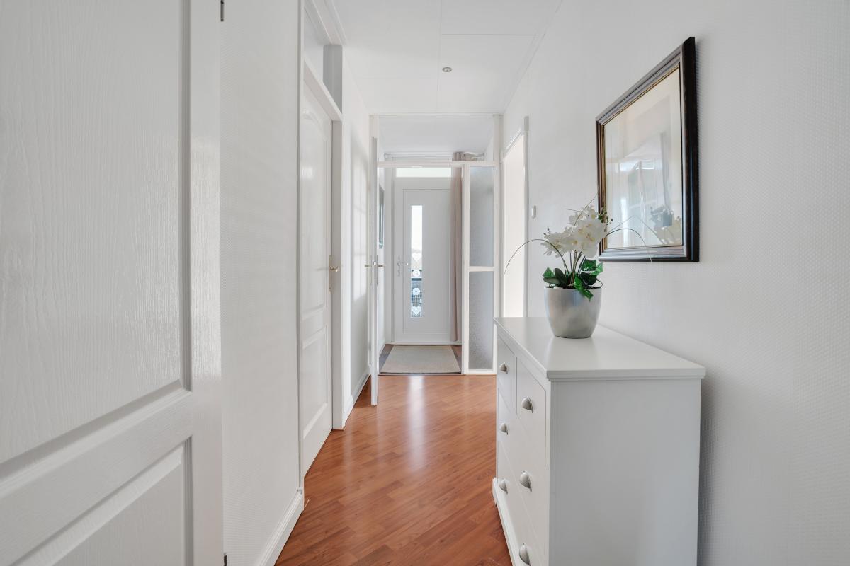 Appartement Achter de voordeur wacht een ruim en verzorgd appartement met een prettige indeling en een warm karakter. Vanuit de entree komt u in de hal, die toegang geeft tot de verschillende vertrekken. Wat direct opvalt, is de nette afwerking met fraaie sierlijsten langs het plafond, de plinten en karaktervolle details. Deze elementen geven het appartement een stijlvolle en huiselijke uitstraling.