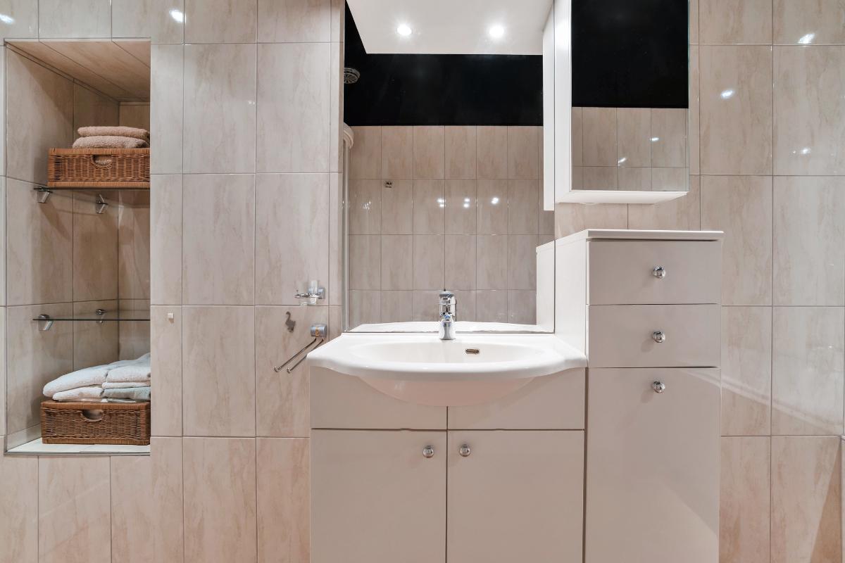 Het appartement beschikt over twee slaapkamers. De grootste slaapkamer is bovendien voorzien van vaste kastruimte. De tweede slaapkamer is eveneens prettig in te delen, handig als extra slaap-, werk- of hobbykamer. De badkamer is verzorgd en ruim opgezet. Deze is uitgerust met een ligbad, wastafelmeubel en een douchecabine die beschikt over een stoomfunctie. De ingebouwde spots zorgen voor een aangename verlichting in de gehele badkamer. Het toilet met fontein bevindt zich tegenover de badkamer. Deze is apart van de badkamer, wat altijd een prettig en praktisch pluspunt is.