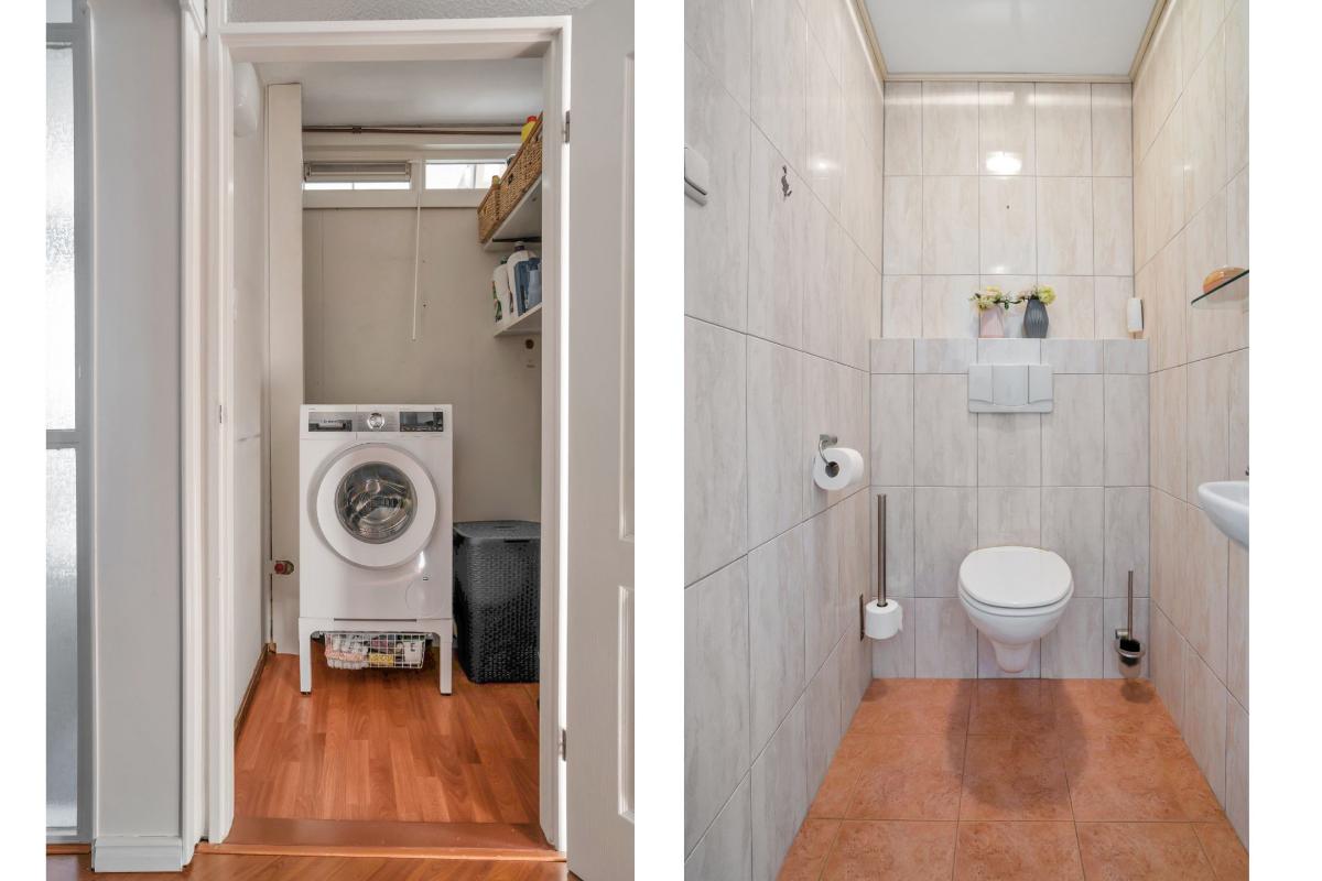Ander praktische punten zijn de twee bergingen in het appartement. Één van deze bergingen is voorzien van de aansluiting voor de wasmachine, terwijl de andere uitstekend geschikt is als voorraad- of opbergruimte. Samen met de externe berging beneden beschikt u hierover opvallend veel bergruimte, iets wat het wooncomfort van dit appartement extra compleet maakt.