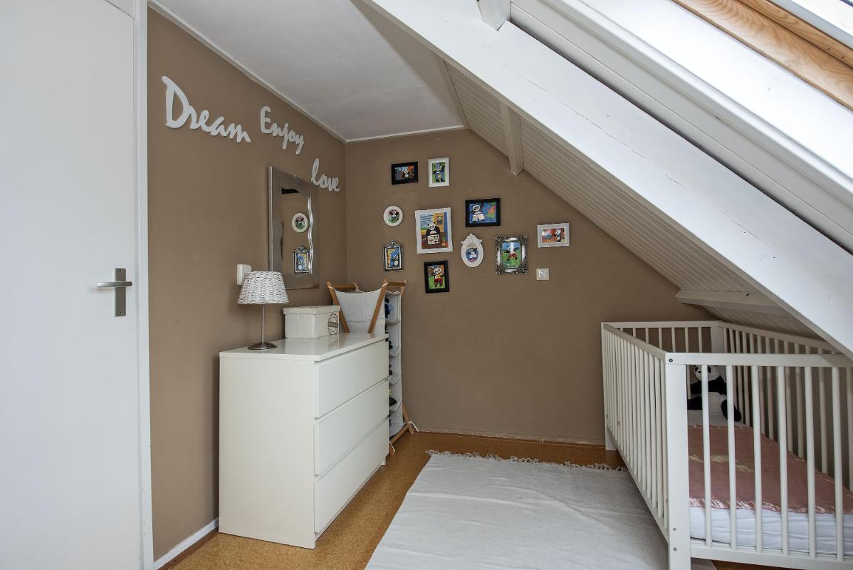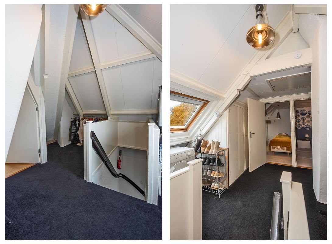 Tweede verdieping: De vaste trap leidt je naar de bovenste verdieping. Hier word je verwelkomd door een royale overloop die toegang biedt tot drie volwaardige slaapkamers. De efficiënte indeling van deze verdieping, deels onder de schuine kap, biedt een ruime hoofdslaapkamer en twee comfortabele kamers, die ideaal zijn als kinderkamer, thuiskantoor of logeerkamer. Verder is op deze verdieping een praktische opbergruimte aanwezig voor extra bergmogelijkheden.