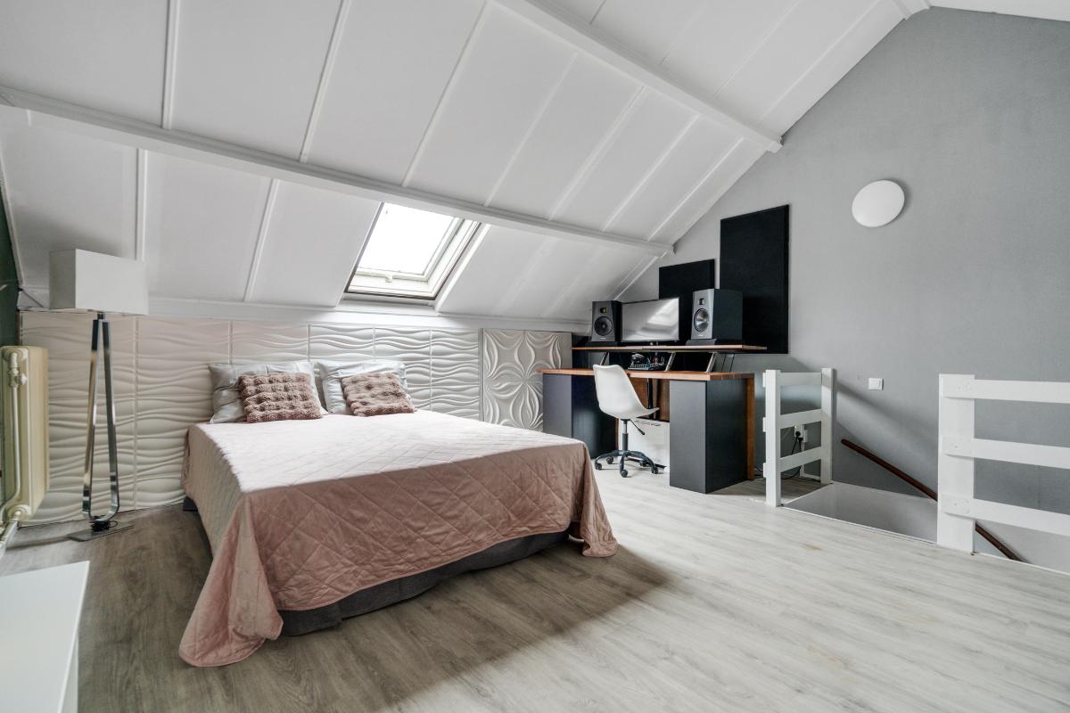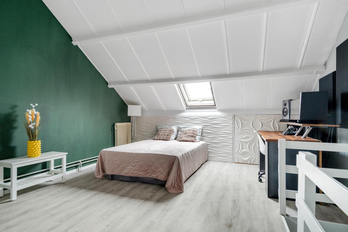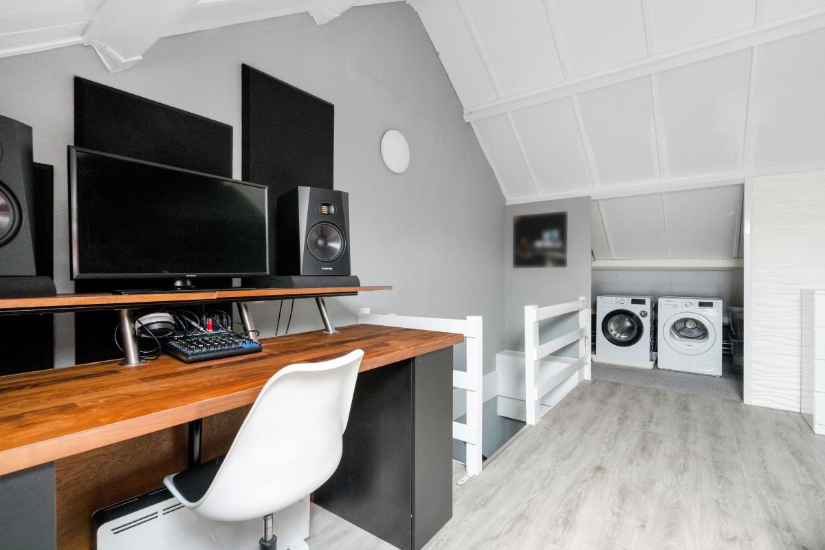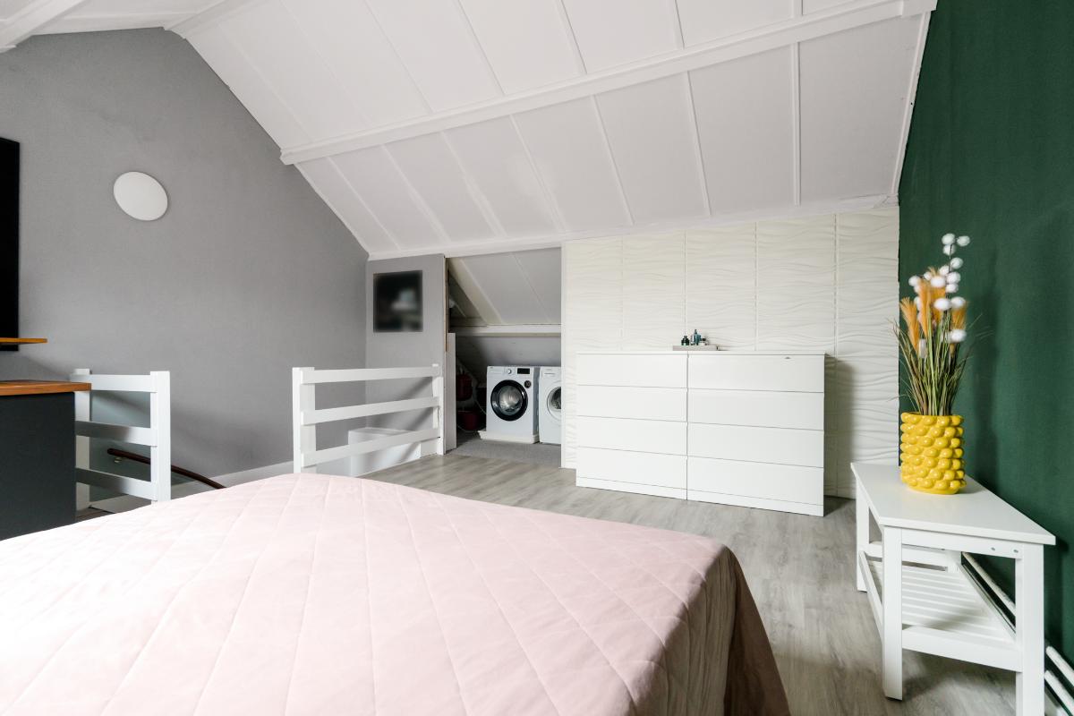 2e verdieping: De vaste trap brengt je naar een verrassend ruime zolderverdieping. Boven aangekomen valt direct de hoogte van het dak en het dakraam op, waardoor het hier ruim en licht is. Langs beide zijden zijn nette kasten, ideaal voor koffers, seizoenskleding en andere spullen die je uit het zicht wilt opbergen. Er is plaats voor de wasmachine en droger, zodat ook het wassen een eigen plek heeft. Door de hoogte van het dak en de open ruimte voelt deze verdieping groot aan. Het is een volwaardige extra verdieping die je naar wens kan invullen als slaap-, werk- en/of hobbykamer.
