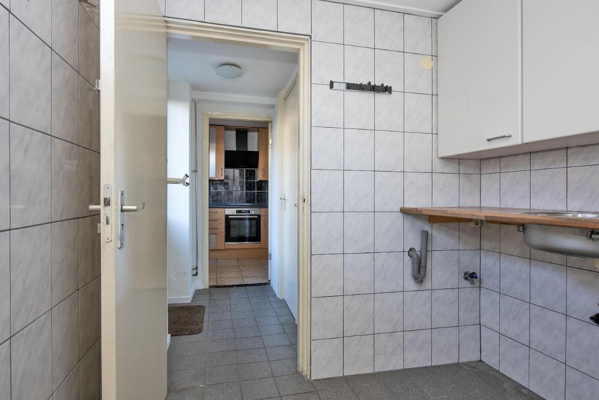 Begane grond: Aan de voorkant maakt de woning meteen een verzorgde indruk. Het hoekhuis heeft een vriendelijke uitstraling met de erker aan de voorzijde, de ronde ramen en een praktische voortuin waar je fijn aankomt. Via de voordeur aan de zijkant van de woning, stap je de hal binnen waar je toegang hebt tot de woonkamer, de trap naar boven en een vaste kast. De woonkamer strekt zich uit over de volledige diepte van het huis. Door de erker aan de straatkant en het raam aan de achterzijde komt er veel daglicht naar binnen waardoor dit een prettige leefruimte is. De rechthoekige vorm maakt het inrichten eenvoudig en biedt genoeg plek voor een royale zit- en eethoek. Aan de achterzijde ligt de keuken. Deze is ingericht in een praktische hoekopstelling waardoor je veel werkblad en opbergruimte hebt. De keuken is voorzien van inbouwapparatuur zoals een kookplaat, afzuigkap, combi oven en een vaatwasser. Achter de keuken bevindt zich een tweede hal met het toilet, een vaste kast en de deur naar de badkamer. De badkamer is volledig betegeld en voorzien van een douche, wastafel en een radiator. Hier is bovendien voldoende ruimte om een wasmachine en droger te plaatsen. Vanuit de tuin loop je door naar de berging die aan het huis grenst. Deze berging is erg handig voor fietsen, gereedschap en voorraad.