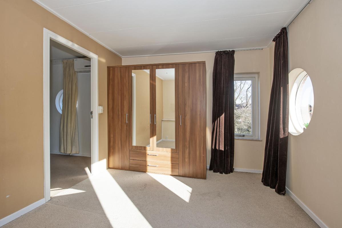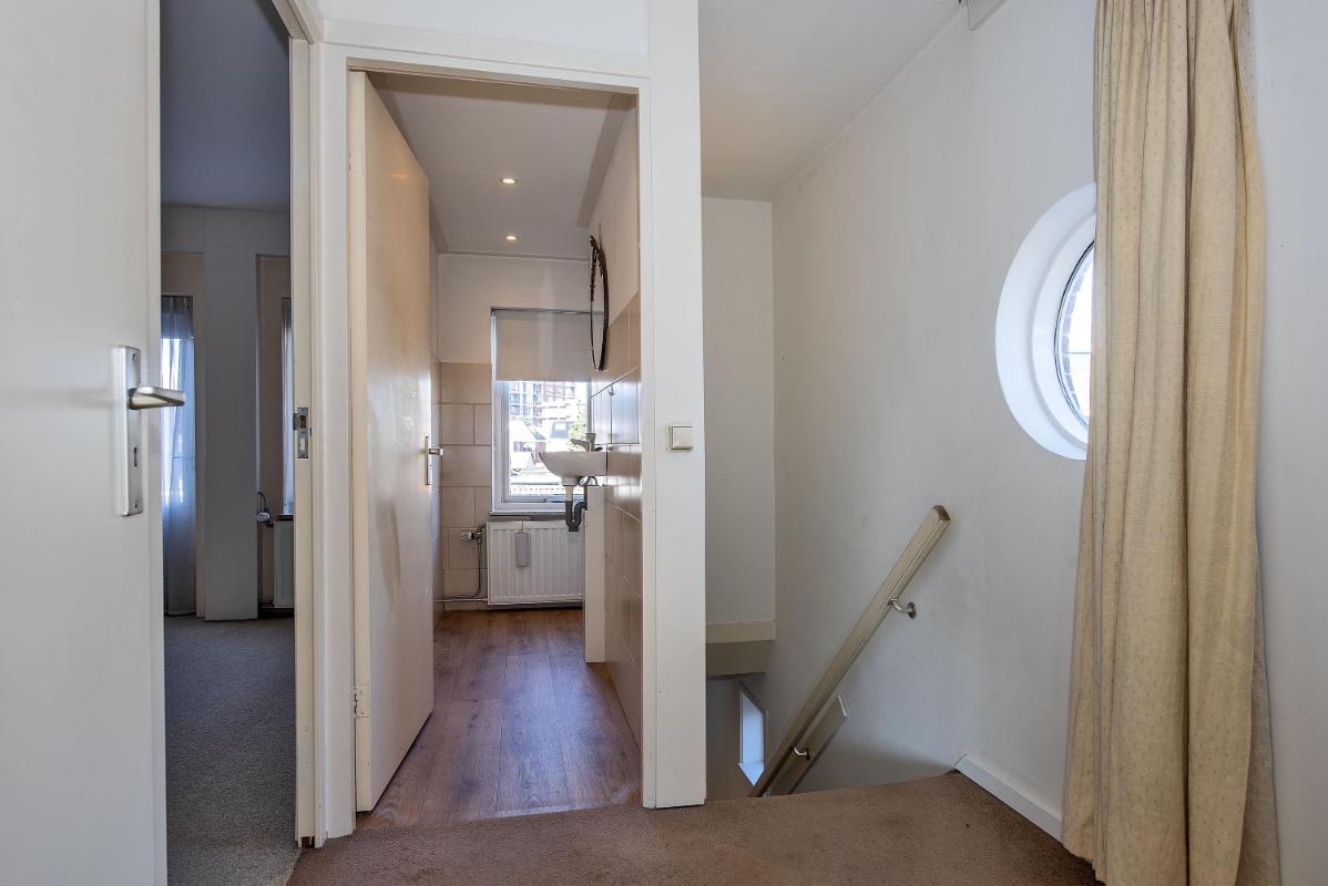 1e verdieping: Op de overloop heb je toegang tot de twee slaapkamers en het tweede toilet met wastafel, fijn voor dagelijks gebruik. Hier is ook een airco geplaatst, zodat deze verdieping in de zomer prettig koel blijft en je hier in de winter ook kunt verwarmen. De grootste slaapkamer ligt aan de voorzijde en heeft ruim voldoende plek voor een tweepersoons bed en kasten om alles netjes in op te bergen. De kamer heeft meerdere ramen en onder andere het markante ronde raam, waardoor er veel licht binnenkomt en de ruimte een eigen karakter krijgt. Aan de achterzijde ligt de tweede slaapkamer, eveneens met een prettig formaat en twee ramen. Daarbij beschikt deze kamer over een vaste kast. Een ideale kamer als kinder-, hobby- of werkkamer.