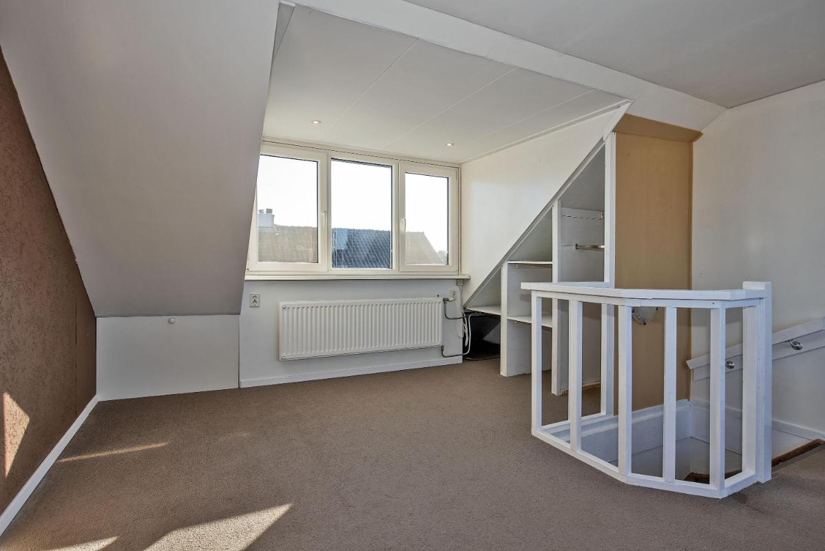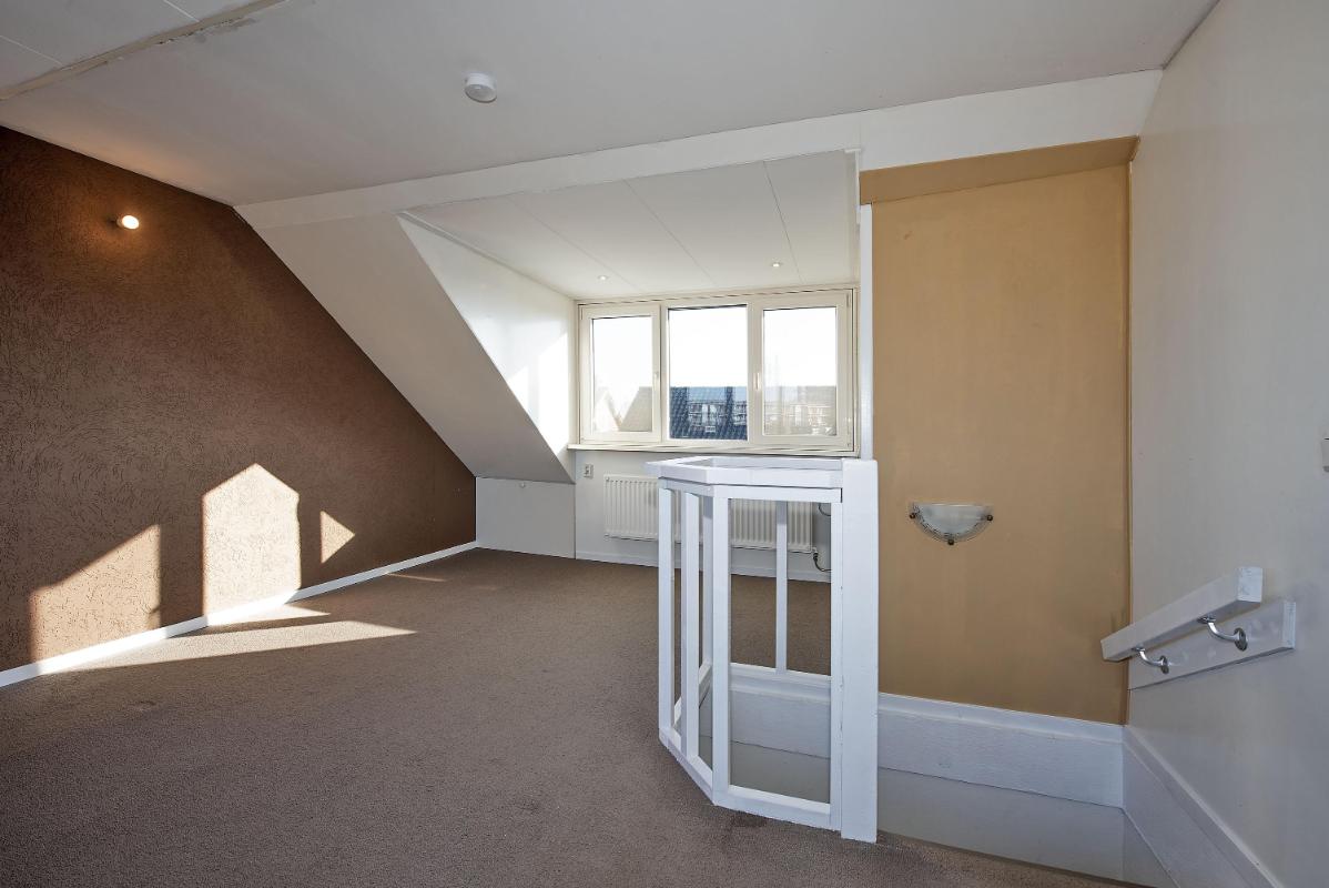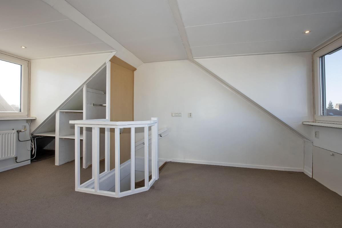 2e verdieping: De vaste trap brengt je naar de tweede verdieping waar je uitkomt in een royale slaapkamer. Door de brede dakkapellen is dit een lichte ruimte met volop stahoogte en een vrij uitzicht over de omgeving. De schuine vlakken zijn handig benut met bergruimte achter knieschotten, zodat spullen uit het zicht blijven. Deze verdieping leent zich uitstekend als ruime slaapkamer, maar kan natuurlijk ook worden ingericht als bergzolder of als fijne tienerkamer met veel eigen plek.