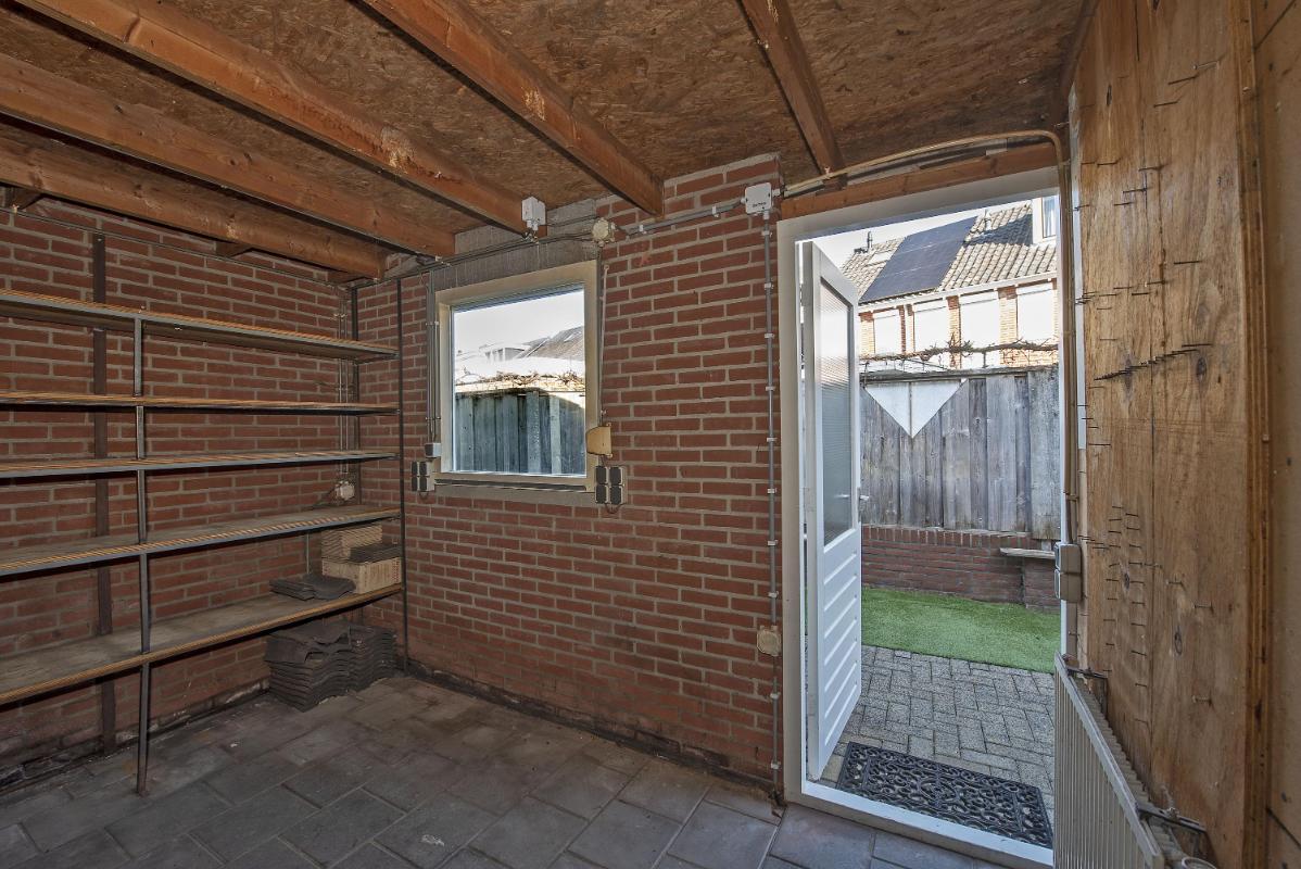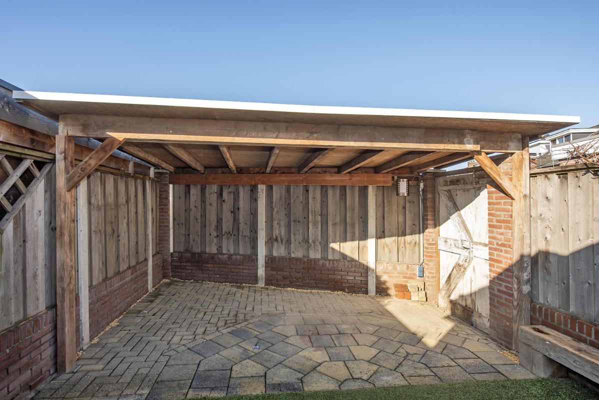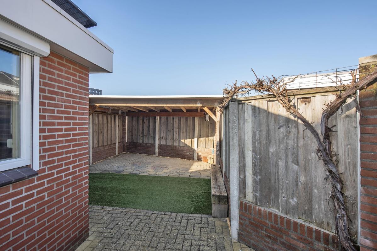 Tuin: Achter de woning ligt een onderhoudsarme achtertuin. De combinatie van bestrating en kunstgras zorgt ervoor dat je geen werk hebt aan maaien of uitgebreid tuinonderhoud, terwijl je toch groen in het zicht hebt. Direct aan de woning grenst de ruime berging, handig voor het stallen van fietsen, seizoensspullen of het creëren van een werkplaats. Achterin de tuin bevindt zich een ruime overkapping waar je beschut kunt zitten en bijvoorbeeld een tuinset kunt plaatsen, ook voor als het minder weer is. Via de poort aan de achterzijde heb je een praktische achterom, zodat je met de fiets of kliko ook langs achter kunt.