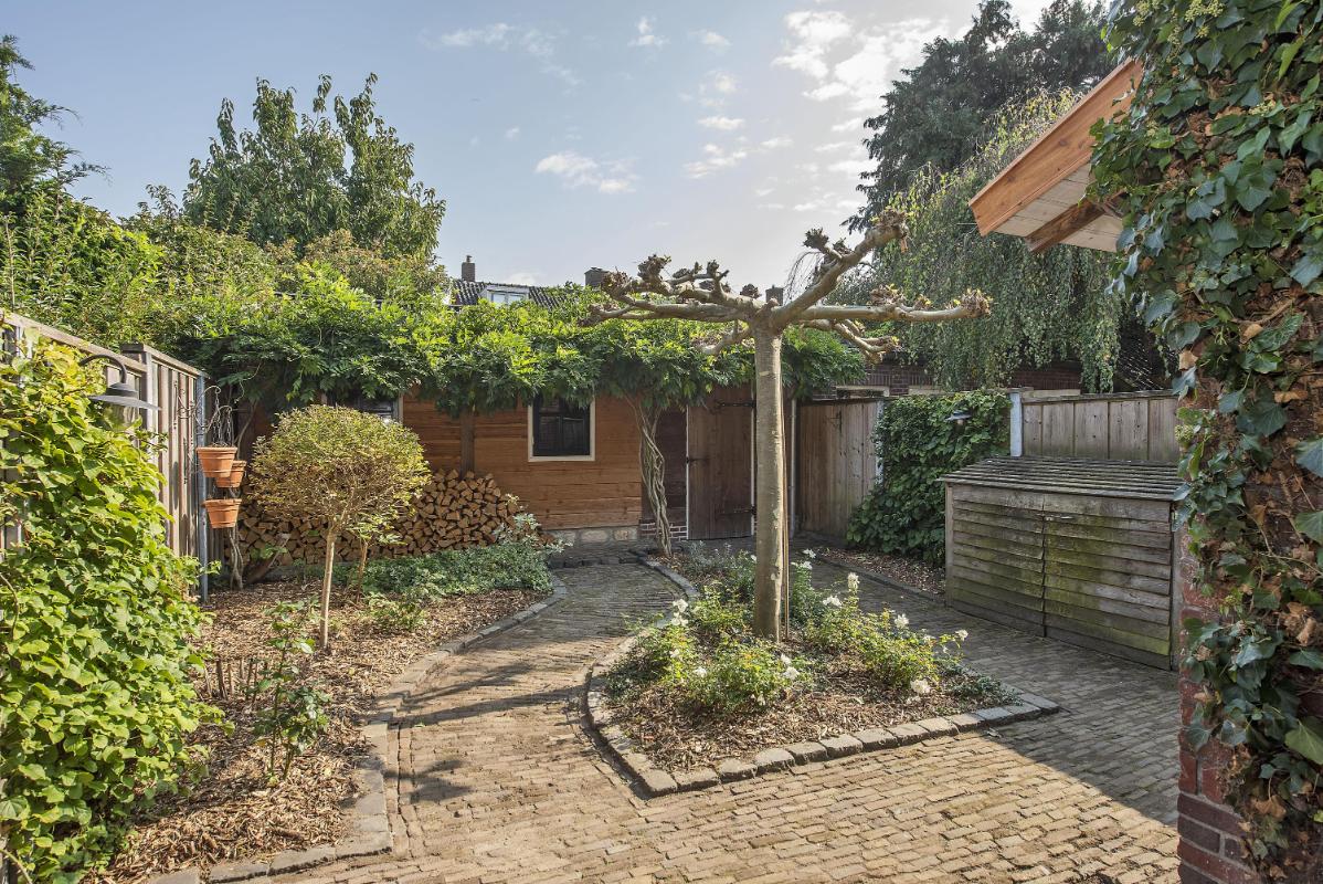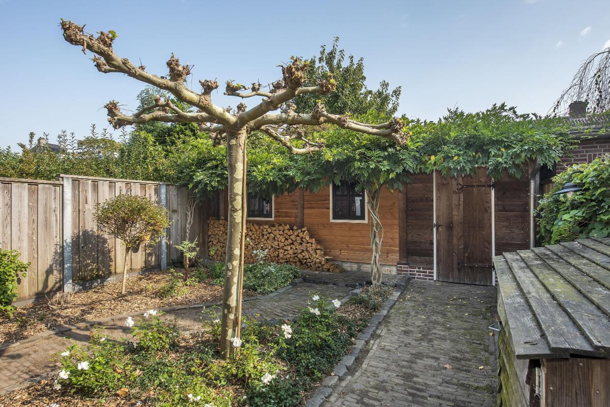 Tuin: De achtertuin is een heerlijke, groene plek met volop privacy en sfeer. Via de zijdeur of rechtstreeks vanuit de woonkamer stap je de tuin in met veel sfeervol groen. Achterin de tuin staat een houten berging, ideaal voor het opbergen van fietsen, tuingereedschap of haardhout. Dankzij de ligging van de tuin kun je hier op elk moment van de dag een fijne plek vinden in de zon of schaduw. De tuin is overzichtelijk aangelegd, onderhoudsvriendelijk en biedt tegelijkertijd volop karakter en gezelligheid, een perfecte plek om te ontspannen, te tuinieren of te genieten van lange zomeravonden buiten.