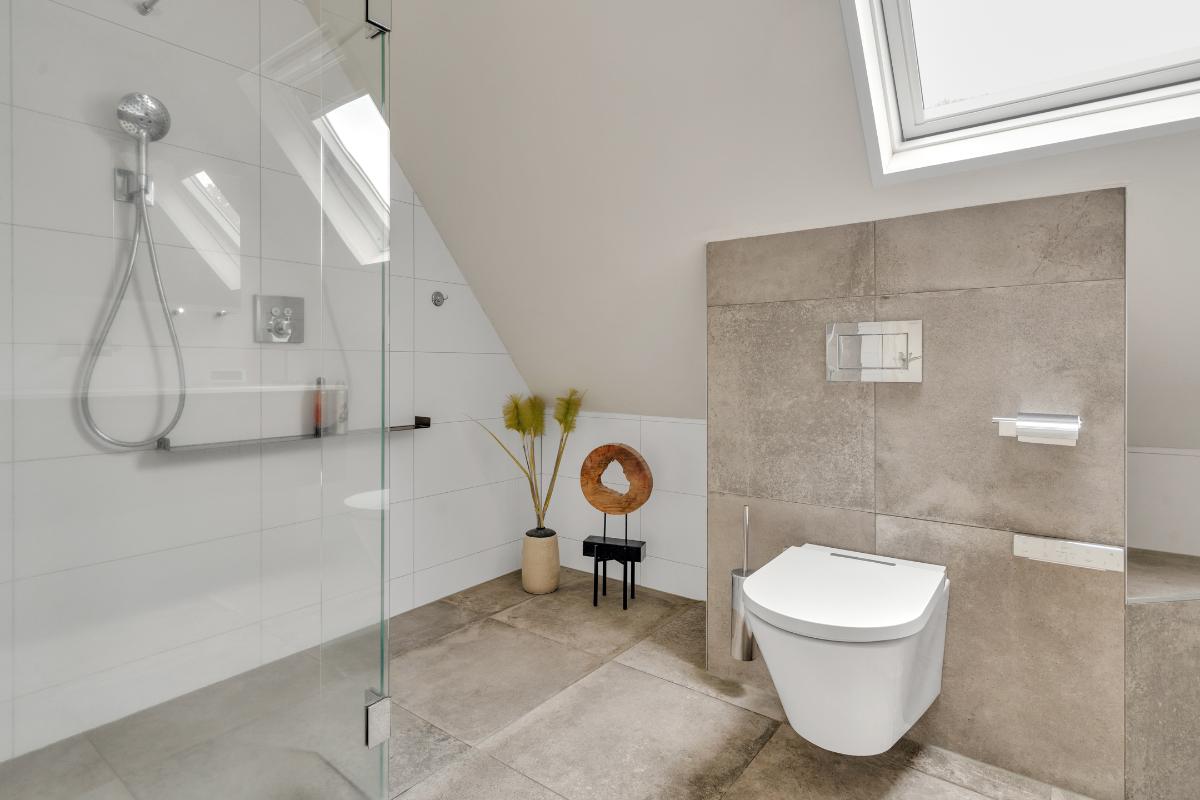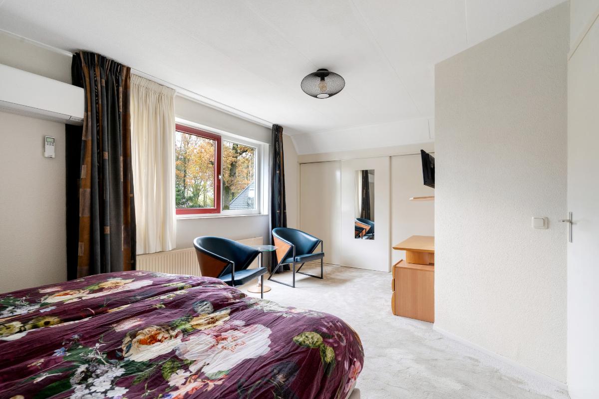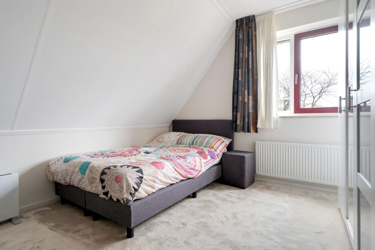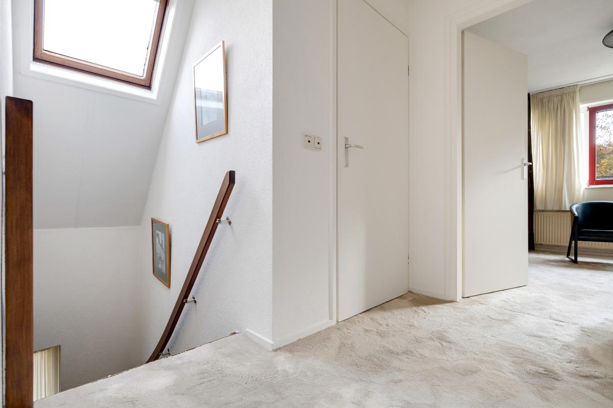 1e verdieping: Boven aangekomen ervaar je meteen de uitnodigende, zachte uitstraling en het comfort van de verdieping, benadrukt door de lichte kleur vloerbedekking die in alle ruimtes ligt en elke stap dempt. Naast de trapopgang ligt een praktische inloopkast waarin zich de CV ketel bevindt en waar tevens ruimte is voor het opbergen van de nodige spullen. De masterbedroom, over de volledige achter breedte van het huis, is een ware verrassing waar ruimte en sereniteit elkaar vinden. De wandbrede kasten met schuifdeuren zorgen voor een overzichtelijke, bijna luxe garderobe, terwijl de royale indeling uitnodigt tot meer dan alleen slapen; er is hier plek voor een zitje, een kaptafel of gewoon om vrij te bewegen. De aanwezige airco maakt het plaatje compleet en geeft de ruimte het gevoel van een royale hotelkamer. Aan de voorzijde liggen twee kamers, identiek qua maat. Of je hier nu kinderen laat spelen en slapen, gasten ontvangt of een rustige werkplek creëert, de ruimtes zijn er geschikt voor en voelen prettig aan. De badkamer, vernieuwd in 2020, is een plek om te genieten. Warme zandtinten, een houtstructuur, meubel en fris wit vormen samen een tijdloos aantrekkelijk geheel. De ruime douche met stortdouche en sunshower maakt van elk douchegebruik een wellnessmoment. Het dakraam zorgt voor natuurlijk lichtinval, zonder inkijk. Daarnaast is de badkamer voorzien van comfortabele vloerverwarming.