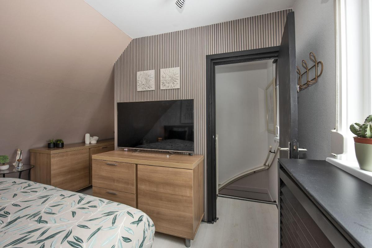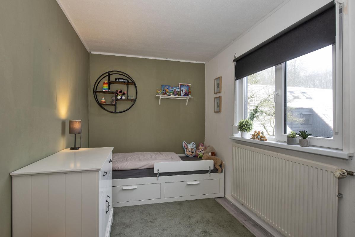 2e verdieping: Met de vaste trap kom je op de tweede verdieping waar zich een verrassend ruime kamer bevindt. Het schuine dak geeft de ruimte een knusse sfeer, terwijl het zijraam zorgt voor prettig daglicht en in combinatie met de lichte vloer een ruimtelijk gevoel geeft. Dankzij de aanwezige airco is het hier in de zomer heerlijk koel en in de winter snel op temperatuur. Een fijne extra verdieping, praktisch als slaap-, werk- of logeerkamer.