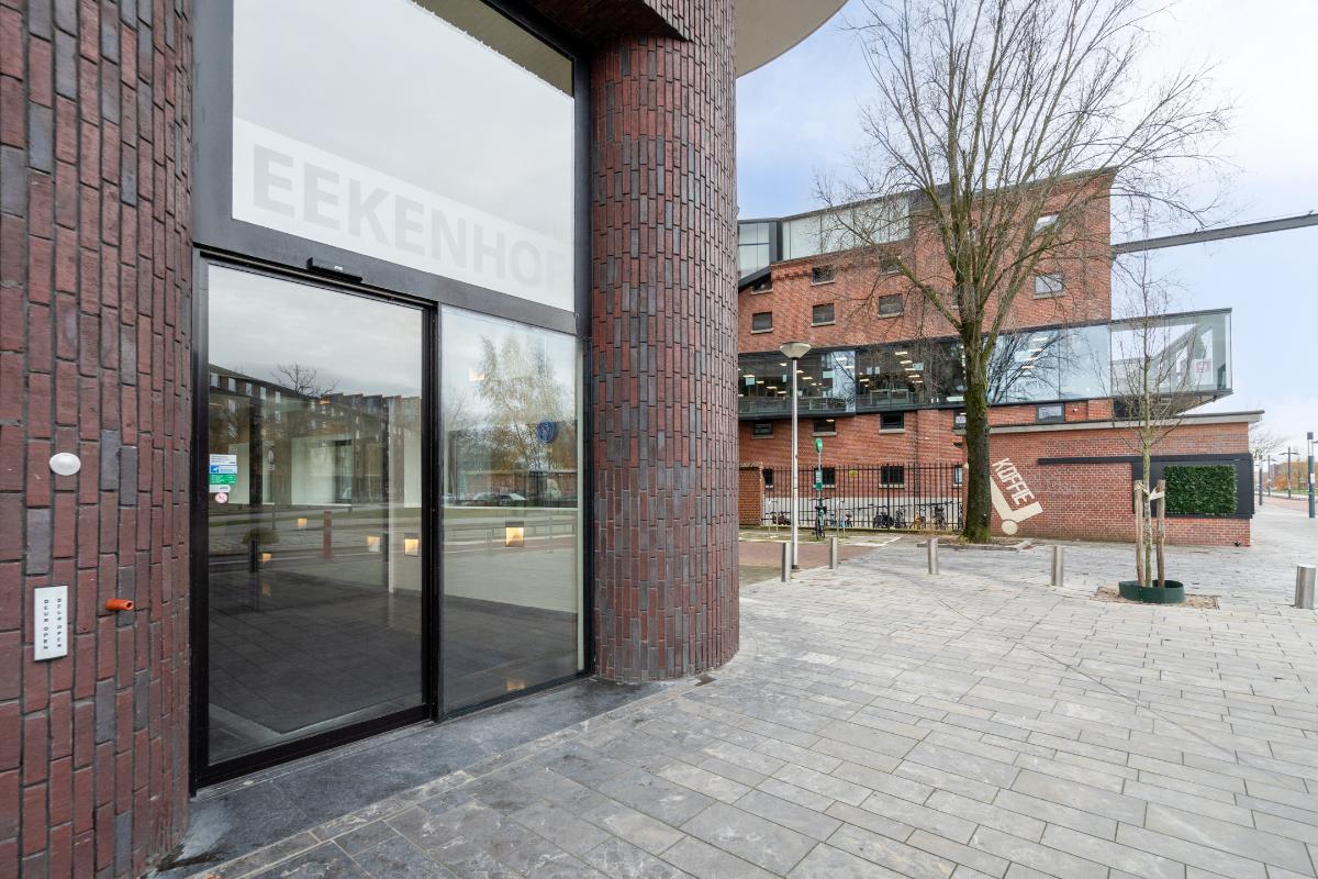 Complex: Eekenhof is een opvallend appartementencomplex dat direct opvalt door zijn speelse architectuur met verspringende bouwlagen en afgeronde balkons. Via de brede stoep kom je bij de representatieve hoofdentree met grote glaspartijen. Hier stap je binnen en loop je door naar het indrukwekkende atrium. Een hoge open ruimte met strakke witte lijnen, houten wandbekleding en verlichting die voor een luxe en moderne sfeer zorgt. Via deze centrale hal kun je zowel vanuit de straat als vanuit de ondergelegen parkeerkelder binnendoor naar de liften en het trappenhuis. Met de lift of trap ga je naar de tweede verdieping, waar een nette gang naar de voordeur van het appartement leidt. In de afgesloten parkeerkelder beschik je over je eigen parkeerplaats. Beneden is bovendien een aparte berging aanwezig, ideaal voor fietsen, koffers en seizoensspullen, zodat je in het appartement zelf alle ruimte overhoudt om prettig te wonen.