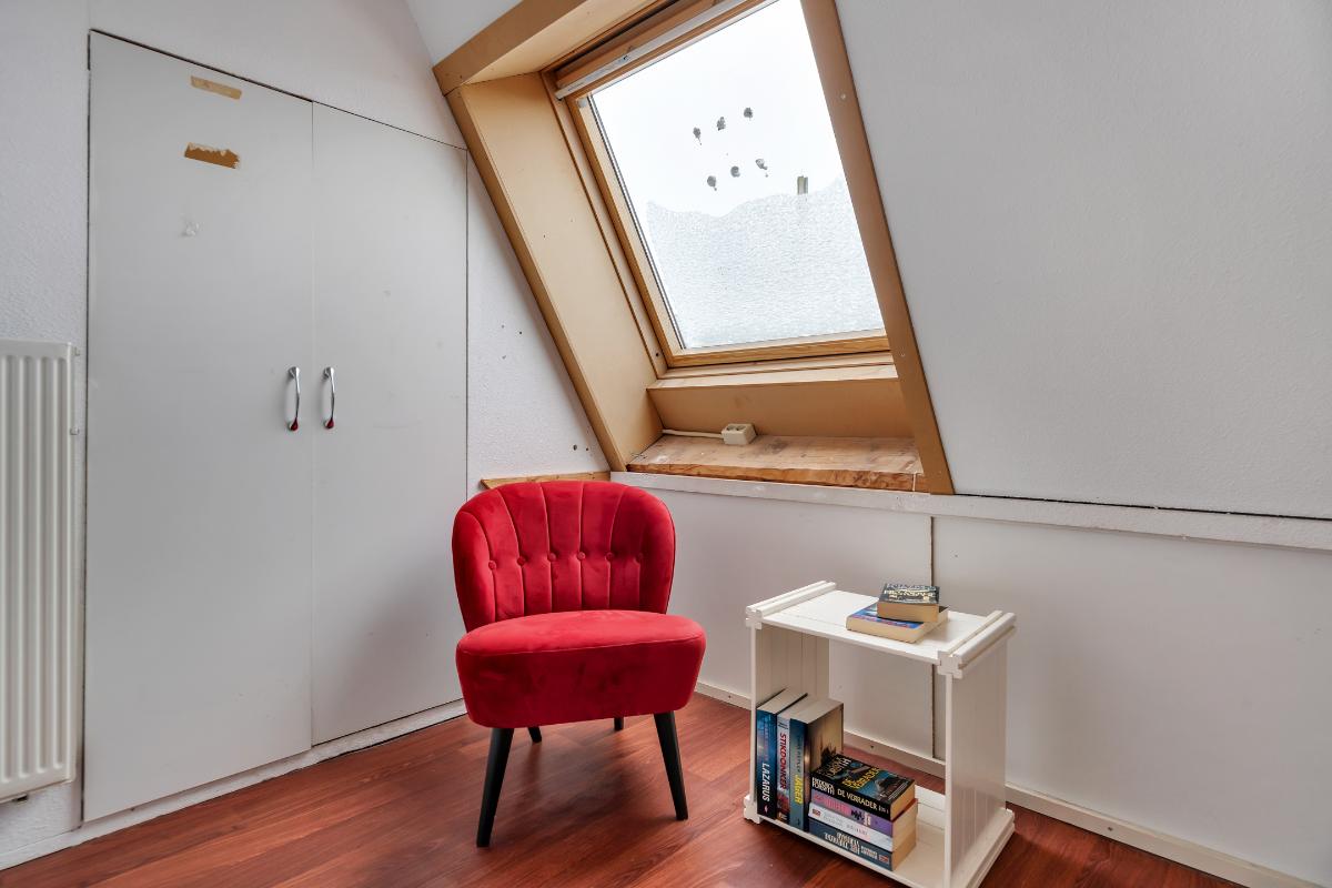 2e verdieping: Met de vaste trap bereik je de tweede verdieping. Je komt boven uit op een lichte overloop met dakkapel, waardoor dit geen donkere zolder, maar echt een extra woonlaag is. Vanaf de overloop heb je toegang tot de twee kamers en een vlizotrap naar de extra bergzolder. De twee kamers zijn beide voorzien van een dakraam of een dakkapel en hebben door de schuine kap een gezellige sfeer. Achter de knieschotten en in de vaste kast is veel praktische bergruimte gecreëerd, ideaal voor koffers, seizoens spullen en dingen die je niet dagelijks nodig hebt. Samen met de bergzolder zorgt dit ervoor dat je in dit huis nooit opbergruimte tekort komt. Daarnaast beschikt deze verdieping ook over een wasmachineaansluiting.