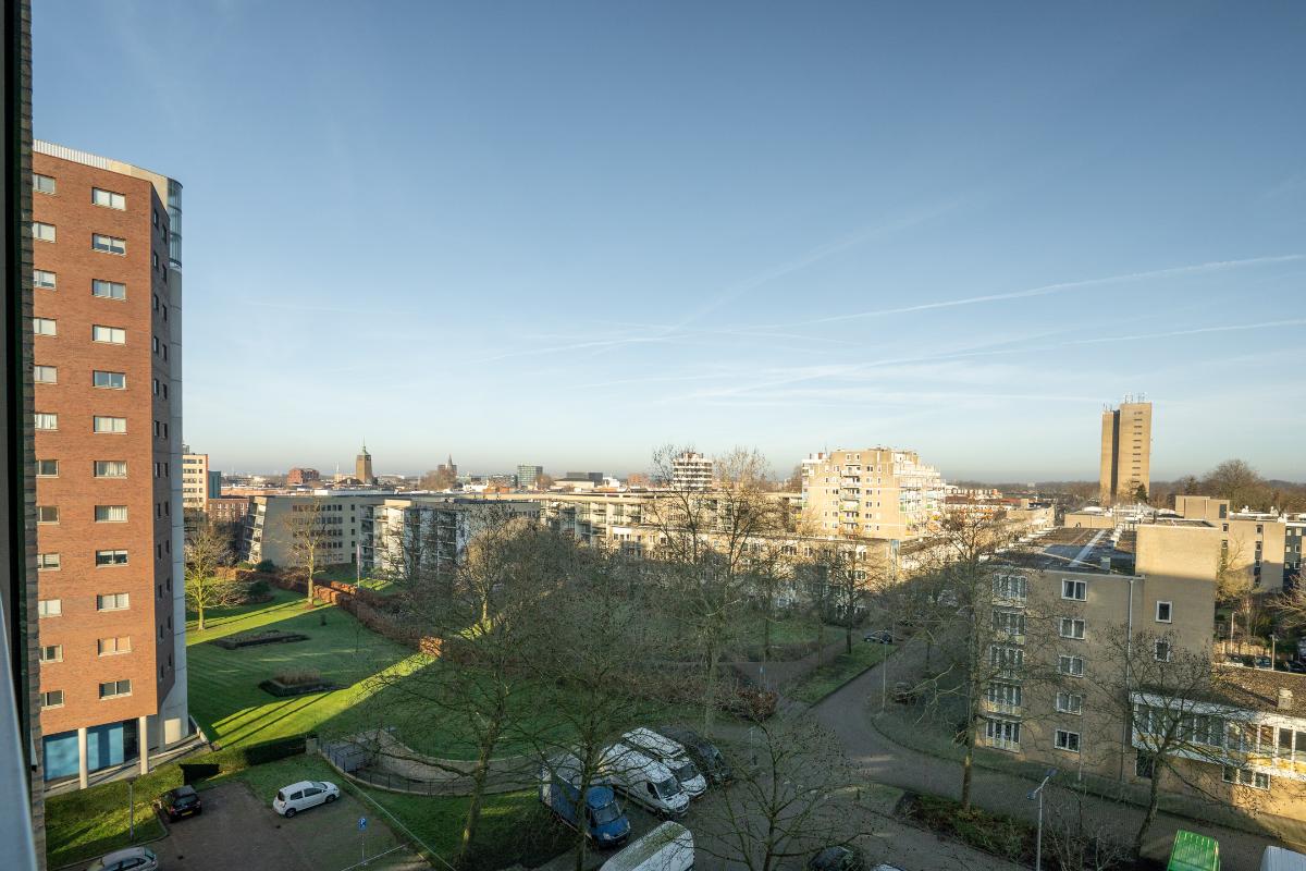 Met dit appartement gaat het bekende gezegde “Noord, oost, zuid, west, thuis best” echt op. Je kijkt namelijk niet alleen over de skyline van Enschede, je profiteert ook volop van alle stadsvoorzieningen die zich letterlijk onder je afspelen. ‘Thuis best’ is daarnaast natuurlijk ook de plek waar je even uit de drukte van de stad kunt ontsnappen en tot rust komt. Of je nu de zon opzoekt op het zuiden of liever beschut zit op het noorden, met drie balkons heb je altijd een perfecte plek om rustig buiten te zitten. Binnen vormt de lichte woonkamer het hart van dit ruime appartement met twee slaapkamers, een kantoorkamer, dichte keuken en badkamer. Zie jij jezelf hier al wonen, werken, ontspannen en tegelijkertijd genieten van het bruisende Enschede?
