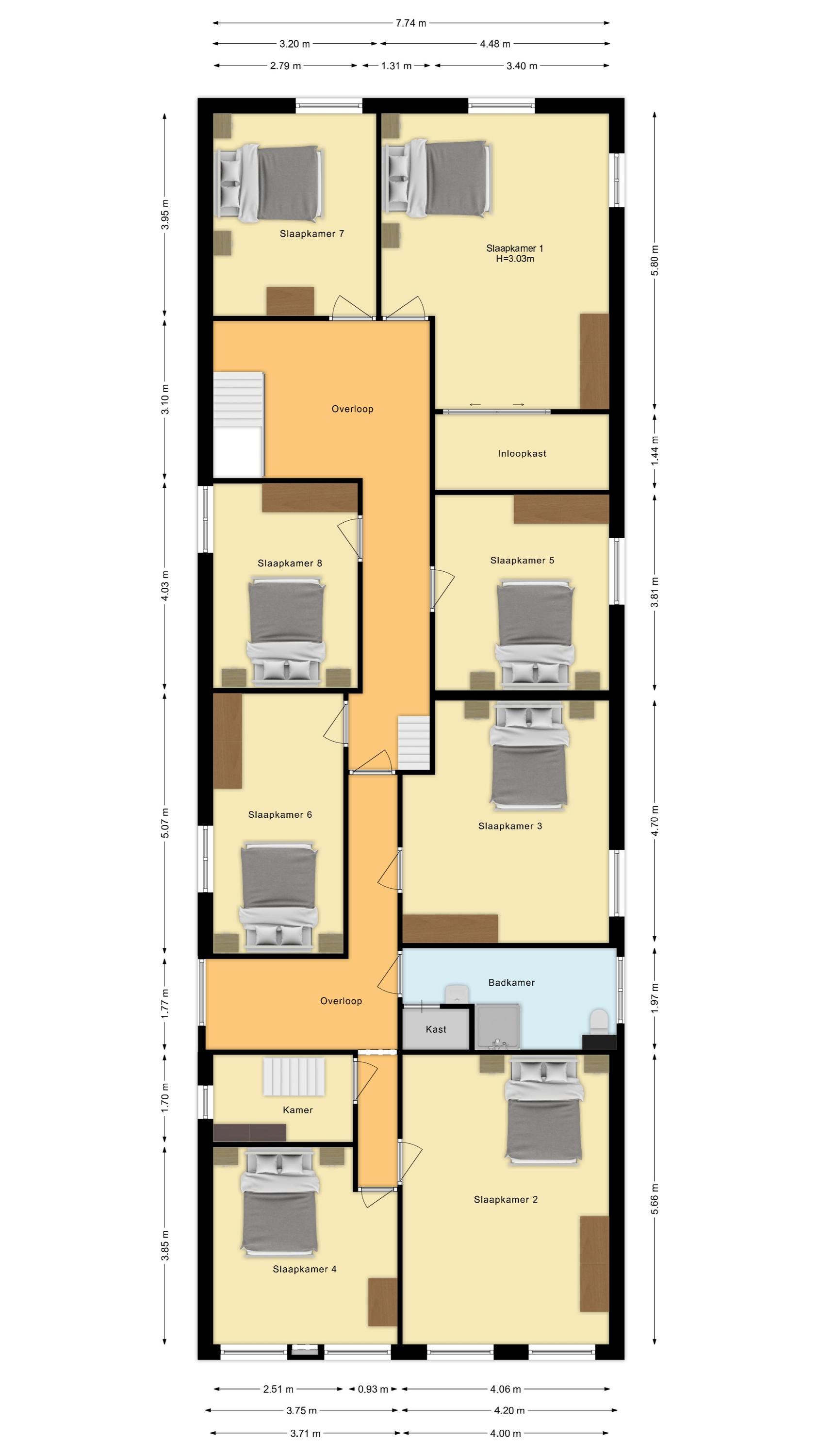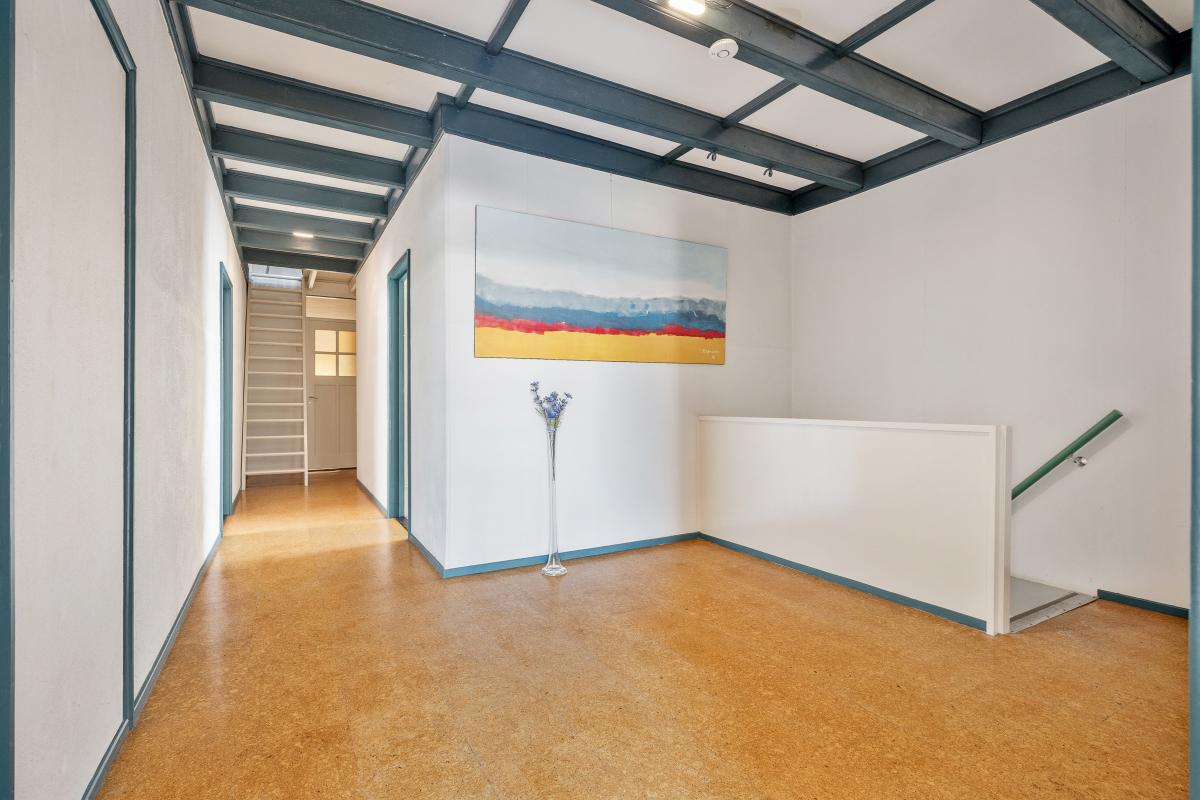 Eerste verdieping – acht slaapkamers en meer; Via de originele trap bereik je de eerste verdieping, waar je wordt verrast door de hoeveelheid ruimte. Maar liefst acht slaapkamers bevinden zich op deze etage, elk met hun eigen karakter en indeling. Sommige kamers zijn ruim en licht, andere knus en sfeervol. De kamers zijn geschikt als slaapvertrek, logeerkamer, werkruimte of hobbykamer – de mogelijkheden zijn eindeloos.
