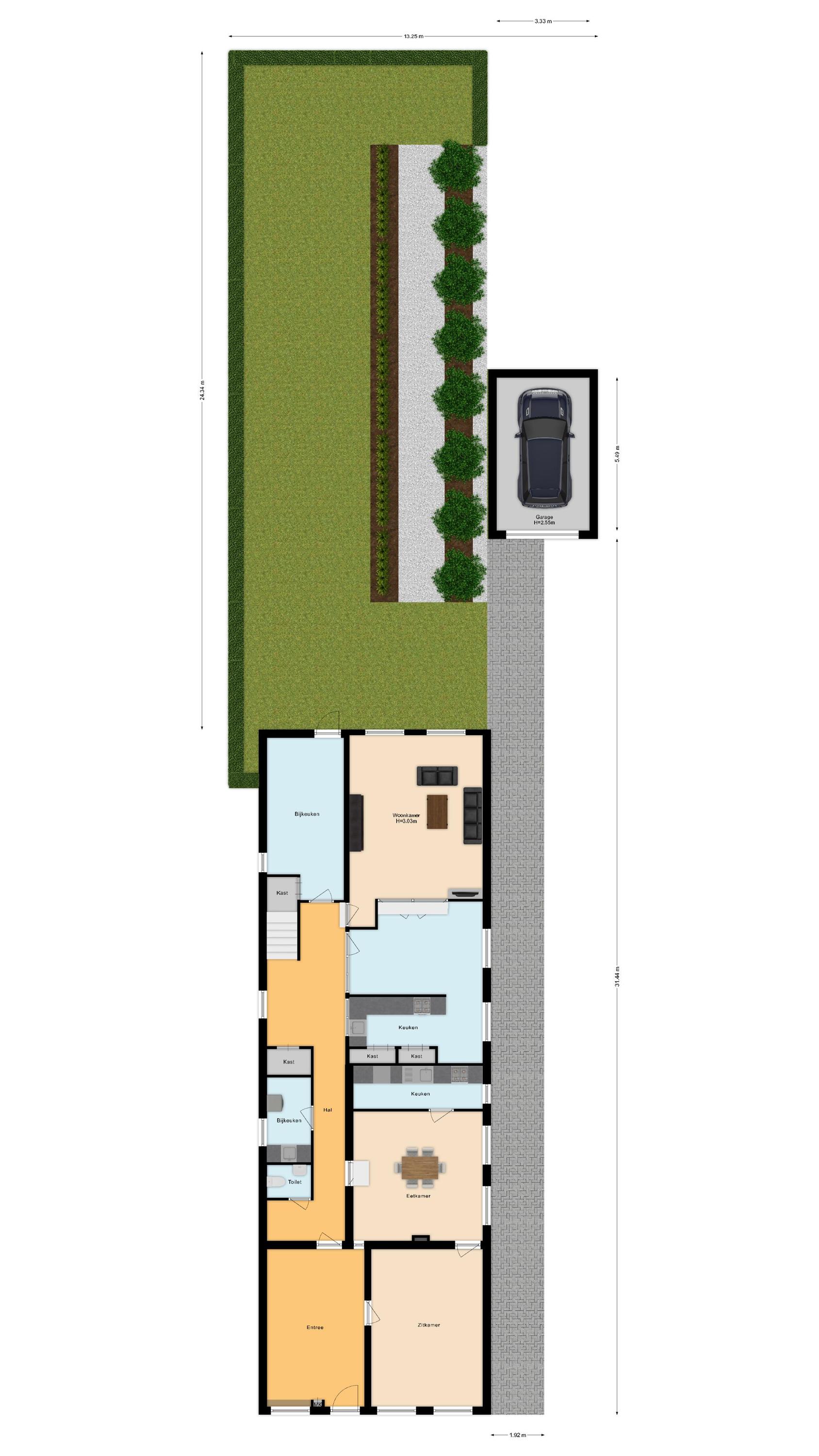 Tuin op het noordwesten – circa 24 meter diep; Aan de achterzijde van de woning ligt een diepe tuin van circa 24 meter, gelegen op het noordwesten. Dit betekent dat je hier vanaf de middag tot in de avond kunt genieten van de zon. De tuin is groen, rustig en biedt volop privacy. De tuin is groot genoeg voor een terras, een moestuin, speelruimte voor kinderen en zelfs een kleine vijver of tuinkamer. Hier kun je echt buiten leven.