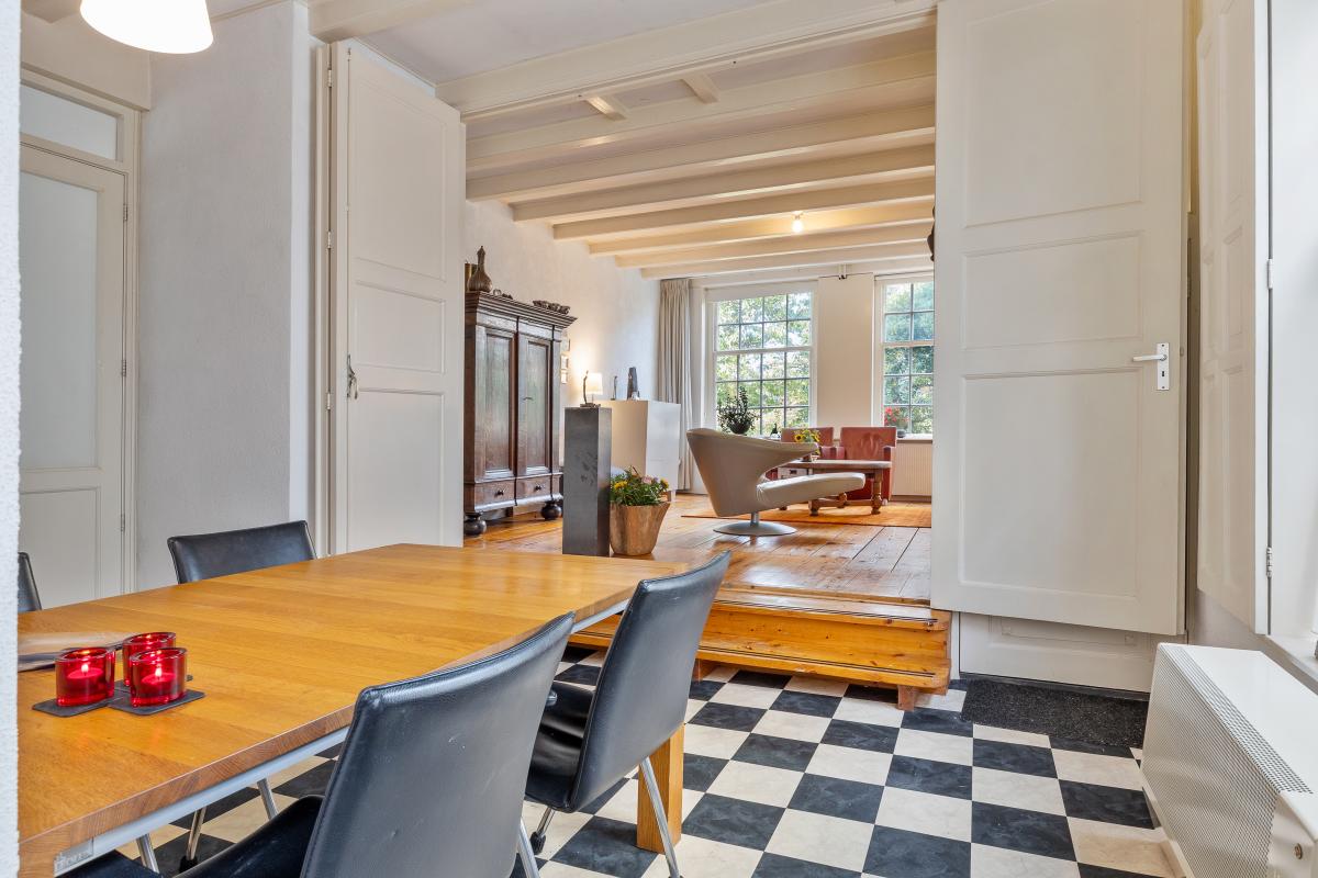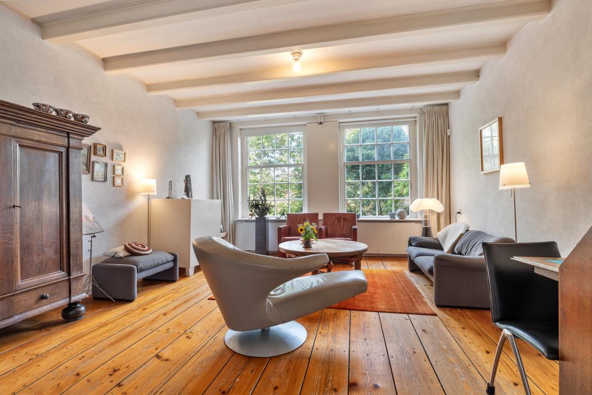 Indeling begane grond – vier kamers en volop leefruimte; Bij binnenkomst in de woning valt direct de royale opzet op. De entree is ruim en statig, met toegang tot meerdere vertrekken. Op de begane grond bevinden zich vier kamers, waaronder een royale woonkamer, een eetkamer, een werkkamer en twee multifunctionele ruimtes die bijvoorbeeld als bibliotheek, atelier of speelkamer kunnen dienen. De hoge plafonds en grote ramen zorgen voor een lichte en luchtige sfeer, terwijl de indeling flexibiliteit biedt voor diverse woonwensen.