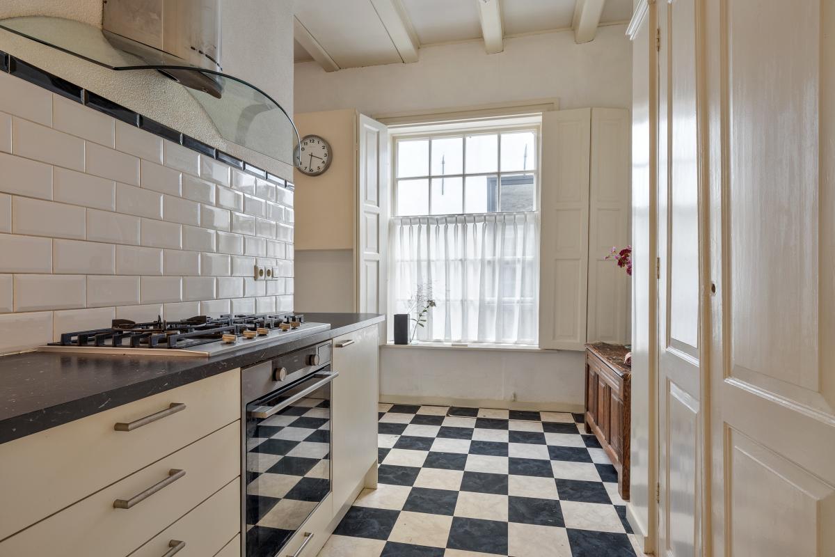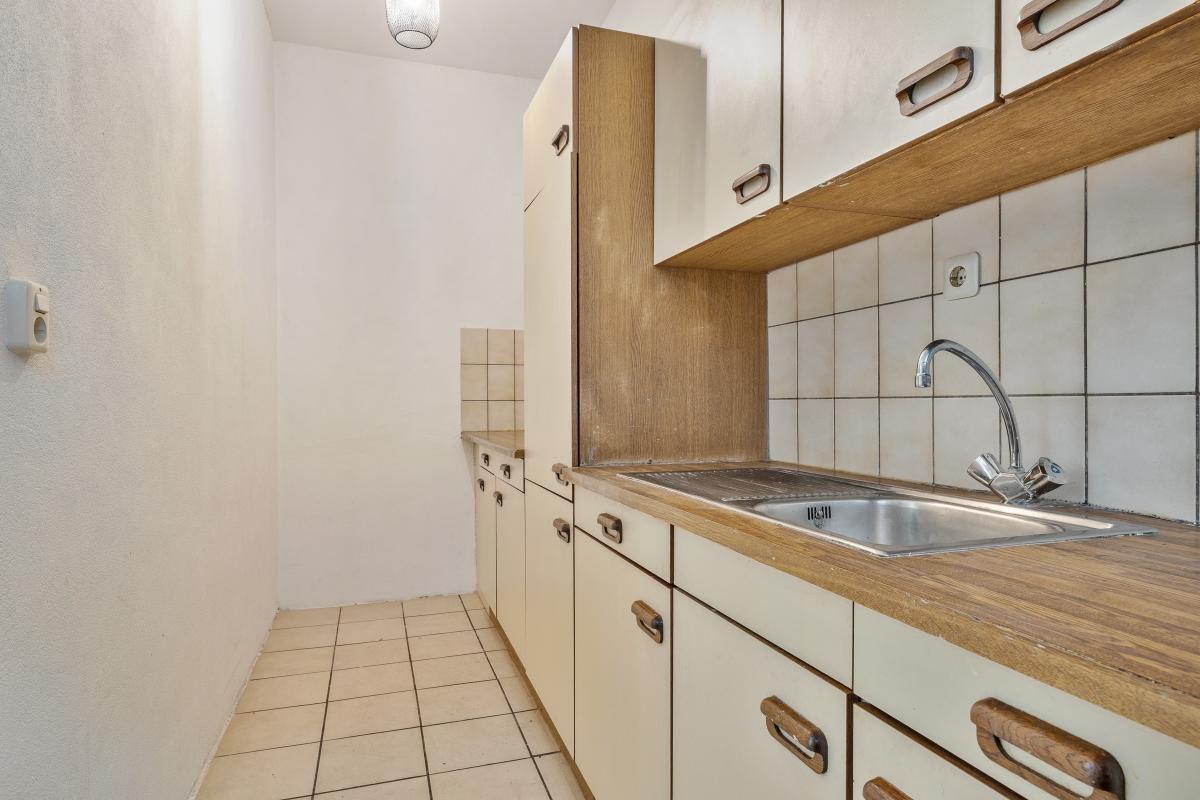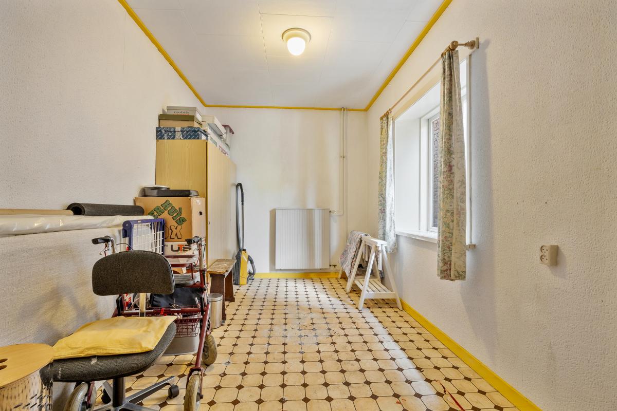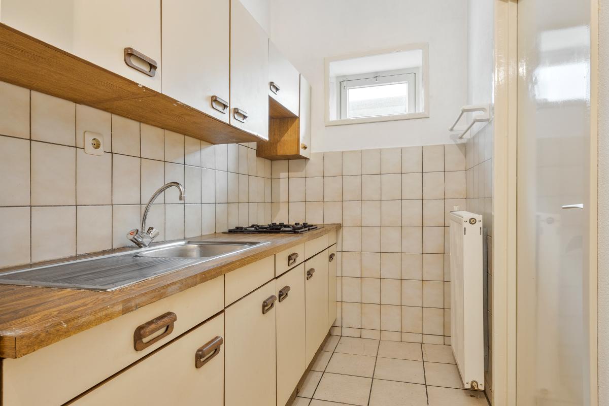 De keuken bevindt zich eveneens op de begane grond en is functioneel ingericht. Hoewel de inrichting gedateerd is, is de ruimte royaal en biedt het volop mogelijkheden voor modernisering. Denk aan een leefkeuken met kookeiland, een klassieke keuken in landelijke stijl of een strakke, moderne opstelling – de basis is er, de invulling bepaal je zelf.