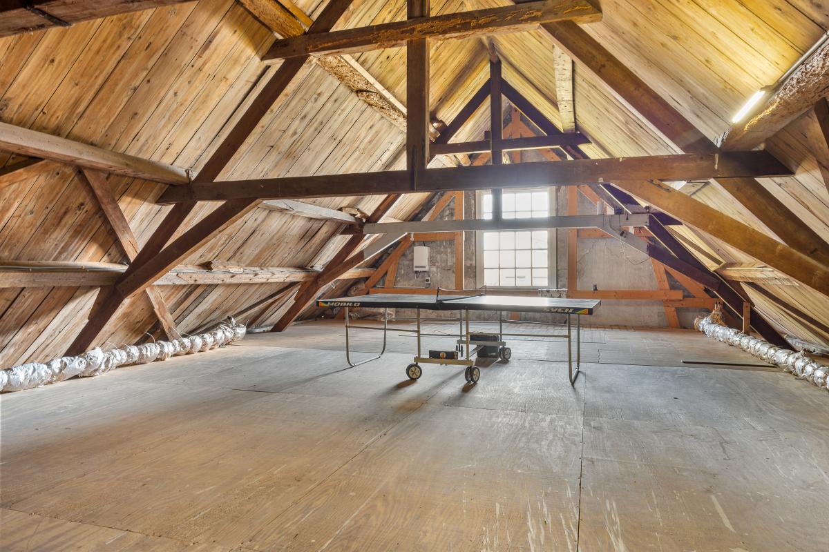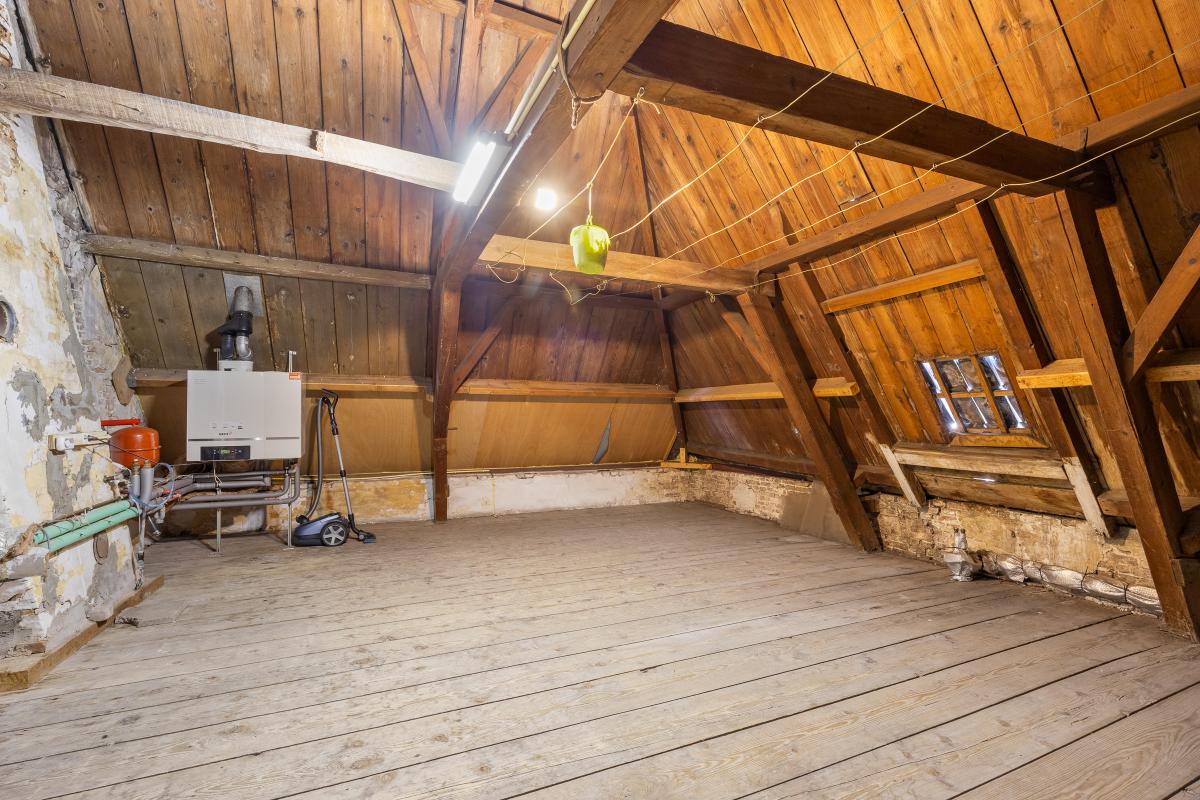 Tweede verdieping – grote bergzolder met potentie; De tweede verdieping bestaat uit een grote bergzolder, momenteel in gebruik als opslagruimte. Maar deze zolder biedt veel meer dan dat. Dankzij de hoogte, het oppervlak en de constructie is het mogelijk om hier extra woonruimte te realiseren. Denk aan een loftachtige studio, een speelzolder, een atelier of zelfs een tweede woonunit. Met de juiste aanpassingen kan deze verdieping een volwaardige aanvulling worden op het woonprogramma.