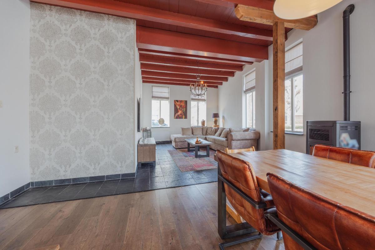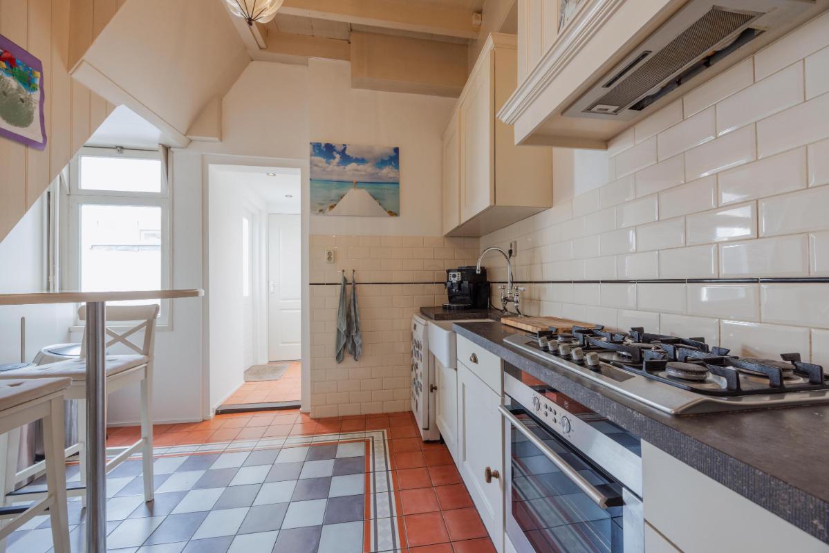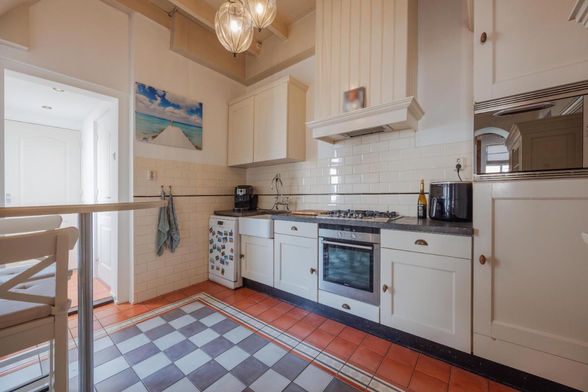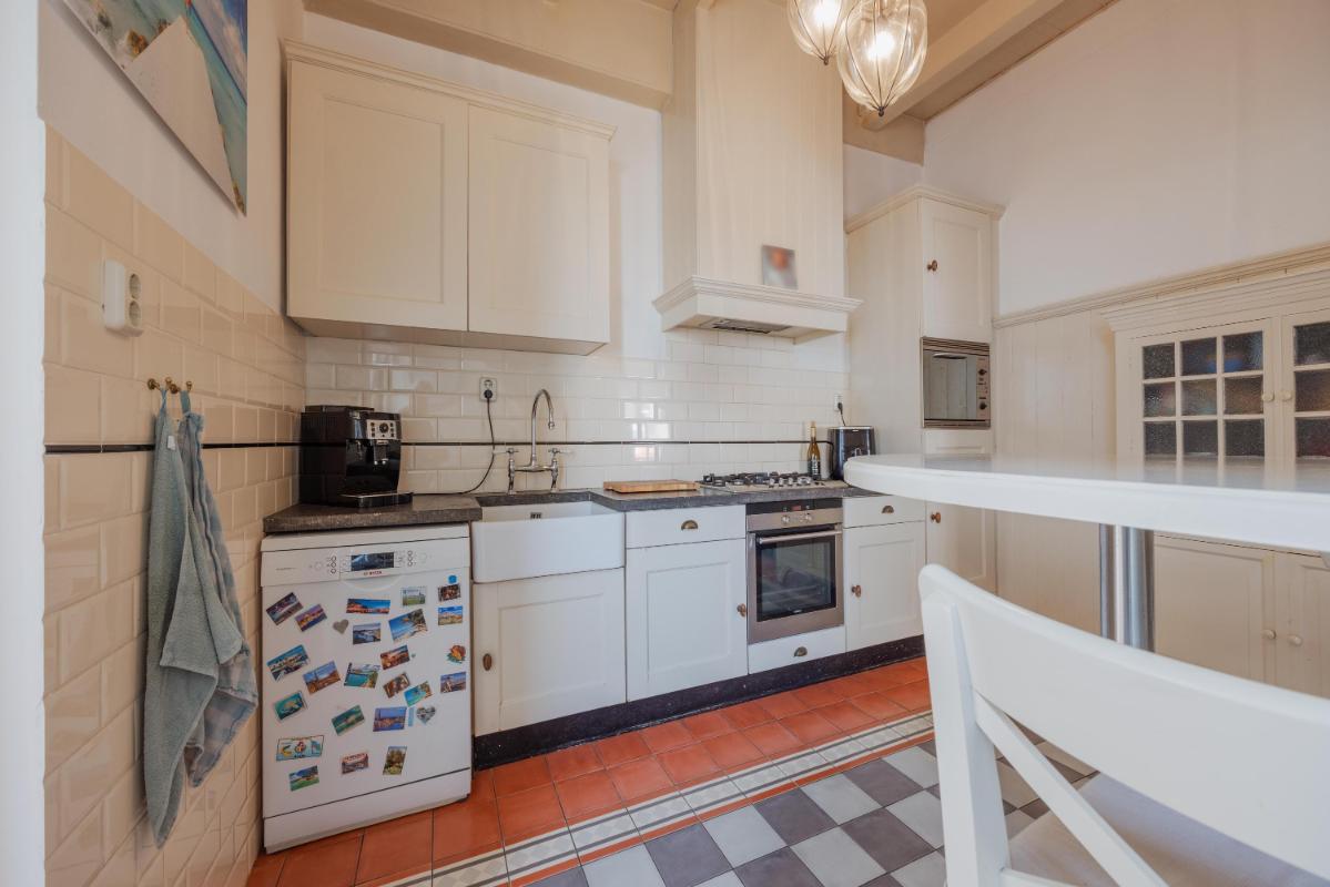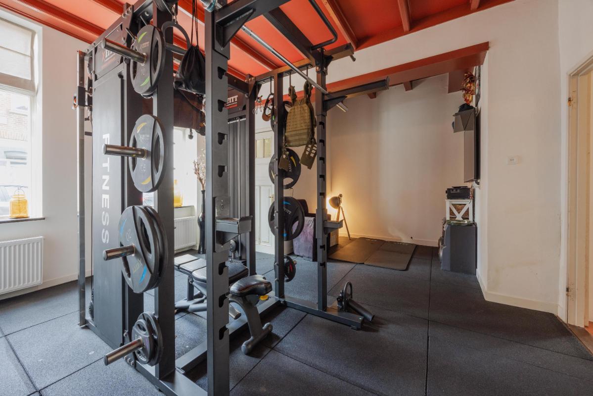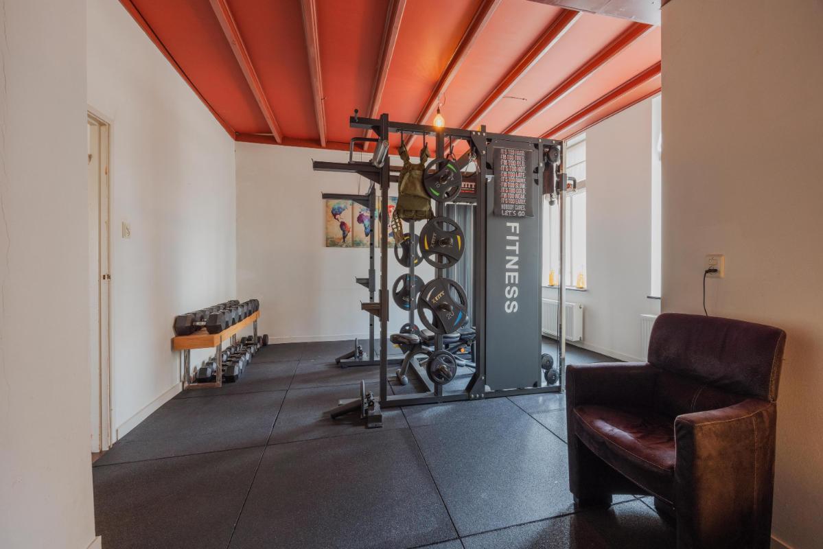 De begane grond is zonder twijfel het absolute pronkstuk van de woning. Zodra je via het portaal de woonkamer binnenstapt, word je gegrepen door de indrukwekkende hoogte en het prachtige balkenplafond. Dankzij de aanwezigheid van diverse zijramen geniet je hier van een prachtige lichtinval die de ruimte nog groter doet lijken. De woonkamer beschikt over twee haardpartijen, waaronder een sfeervolle pelletkachel, en biedt via openslaande deuren direct toegang tot de charmante stadstuin op het zonnige zuidwesten. Naast de riante woonkamer vind je op de begane grond een tweede, royale extra kamer. Deze ruimte is momenteel in gebruik als gym, maar de mogelijkheden zijn hier eindeloos. Denk bijvoorbeeld aan een riant thuiskantoor, een aparte speelkamer voor de kinderen, een atelier of zelfs een slaapkamer met badkamer voor levensloopbestendig wonen. De half-open keuken vormt met zijn passende uitstraling en speelse trapopgang het hart van het huis en verbindt de verschillende leefruimtes op een natuurlijke wijze.