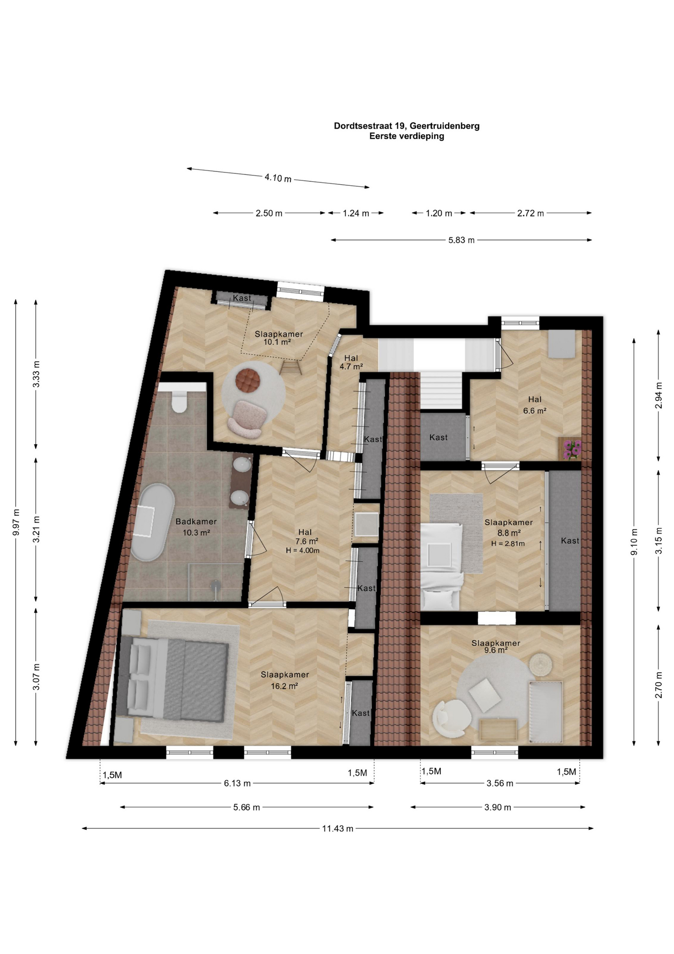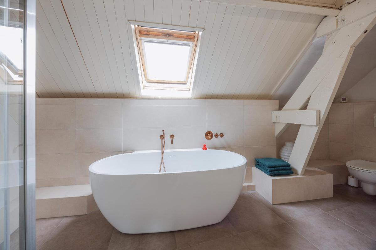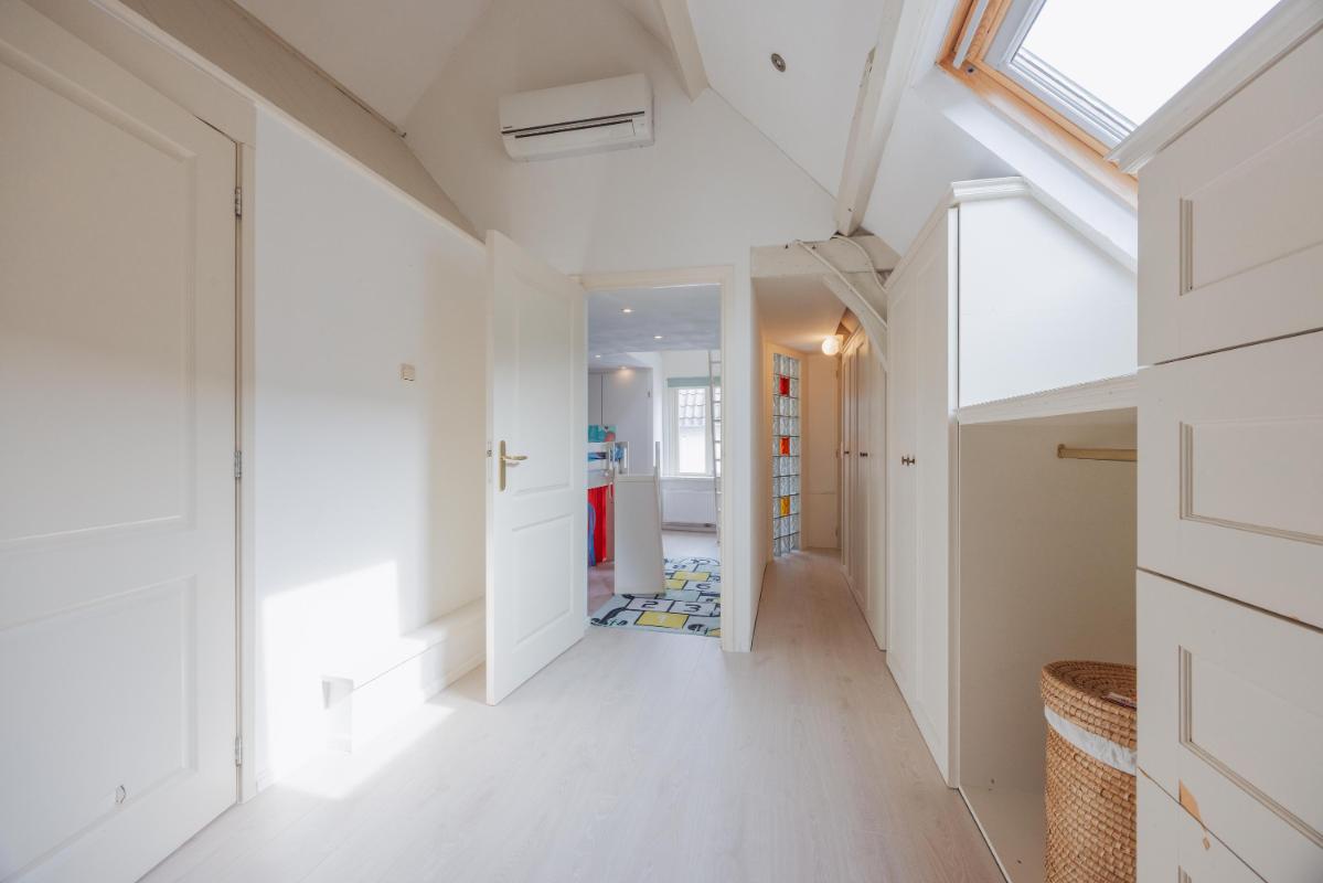 Ook de bovenverdiepingen bieden een zee aan ruimte en flexibiliteit. Omdat de woning voorheen uit twee panden bestond, is de indeling boven verrassend en speels. Er zijn momenteel drie tot vier mooie slaapkamers aanwezig, die dankzij de geplaatste airconditionings het hele jaar door een aangenaam klimaat hebben. De luxe, complete badkamer is uitgevoerd in een moderne kleurstelling en voorzien van alle gemakken, zoals een ligbad, een separate douche, een dubbel wastafelmeubel en een tweede toilet.