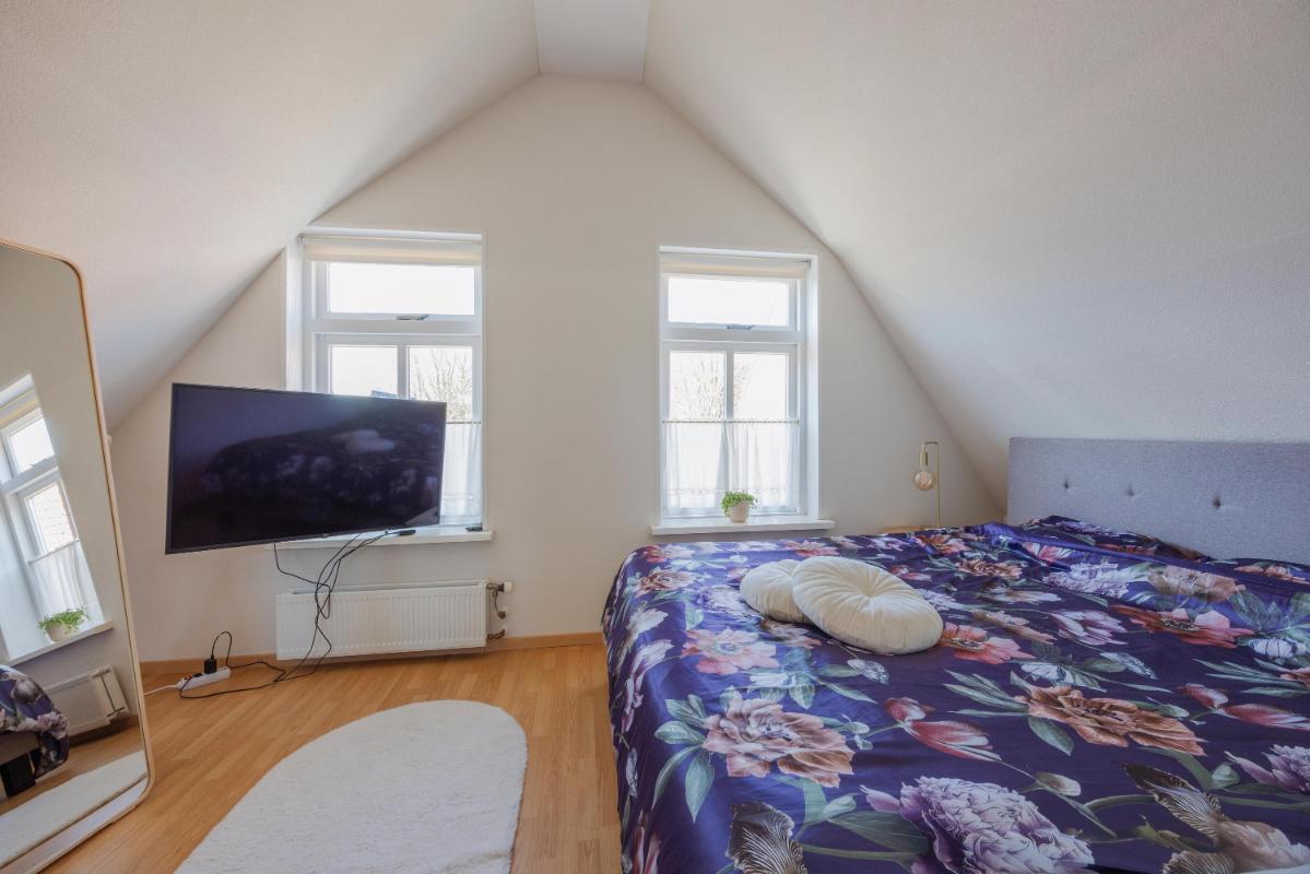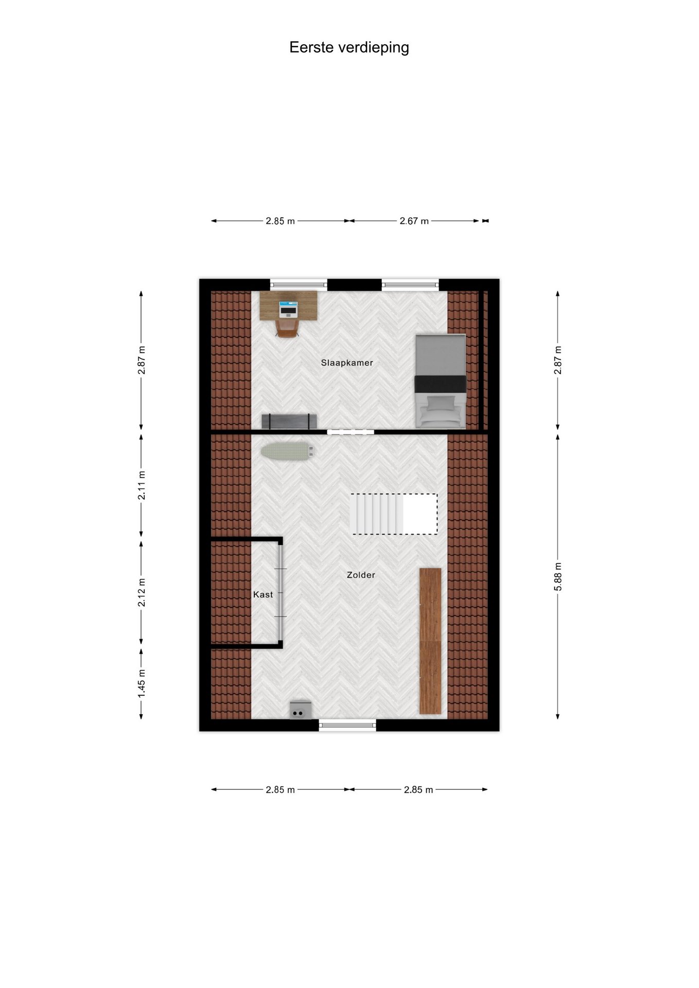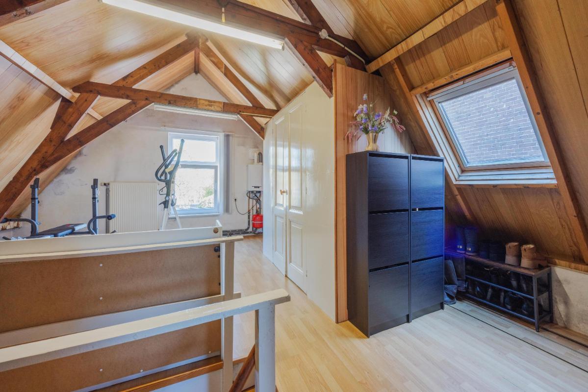 Eerste verdieping Via een vaste trap bereikt u de ruime zolderverdieping met houten vloer. Hier vindt u een grote tweede slaapkamer aan de voorzijde, voorzien van een nette laminaatvloer en inbouwspots. Daarnaast is er een grote vaste kast en de opstelling van de cv-ketel.