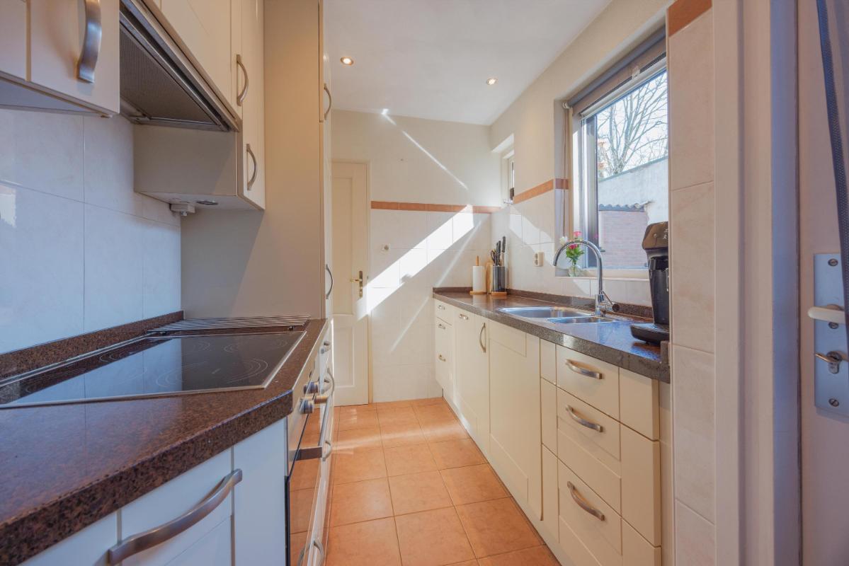 De zonnige patio is eveneens via de keuken bereikbaar en beschikt over een ruime berging met aansluiting voor wasapparatuur.