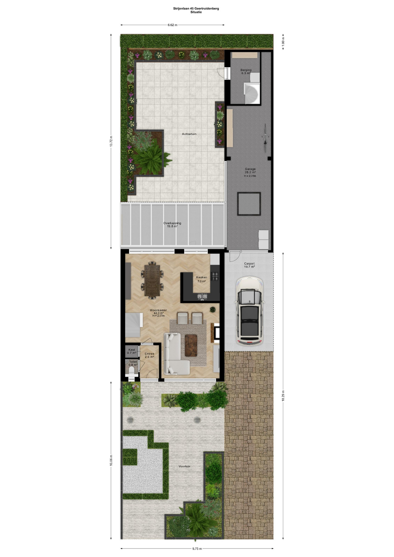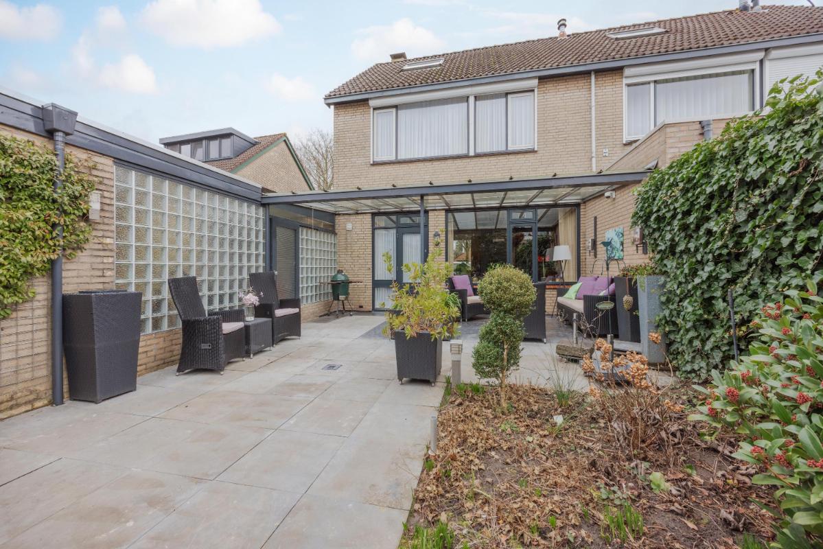 Buitenleven & Parkeren Al bij aankomst valt de royale opzet op. Geen parkeerstress hier; met een eigen oprit én een carport staat je auto altijd veilig en droog. De woning is gelegen op een prachtig perceel van 334 m² met een mooie vrije ligging. In de zonnige achtertuin vind je een sfeervolle overkapping, waar je tot in de late uurtjes buiten kunt genieten van de rust.