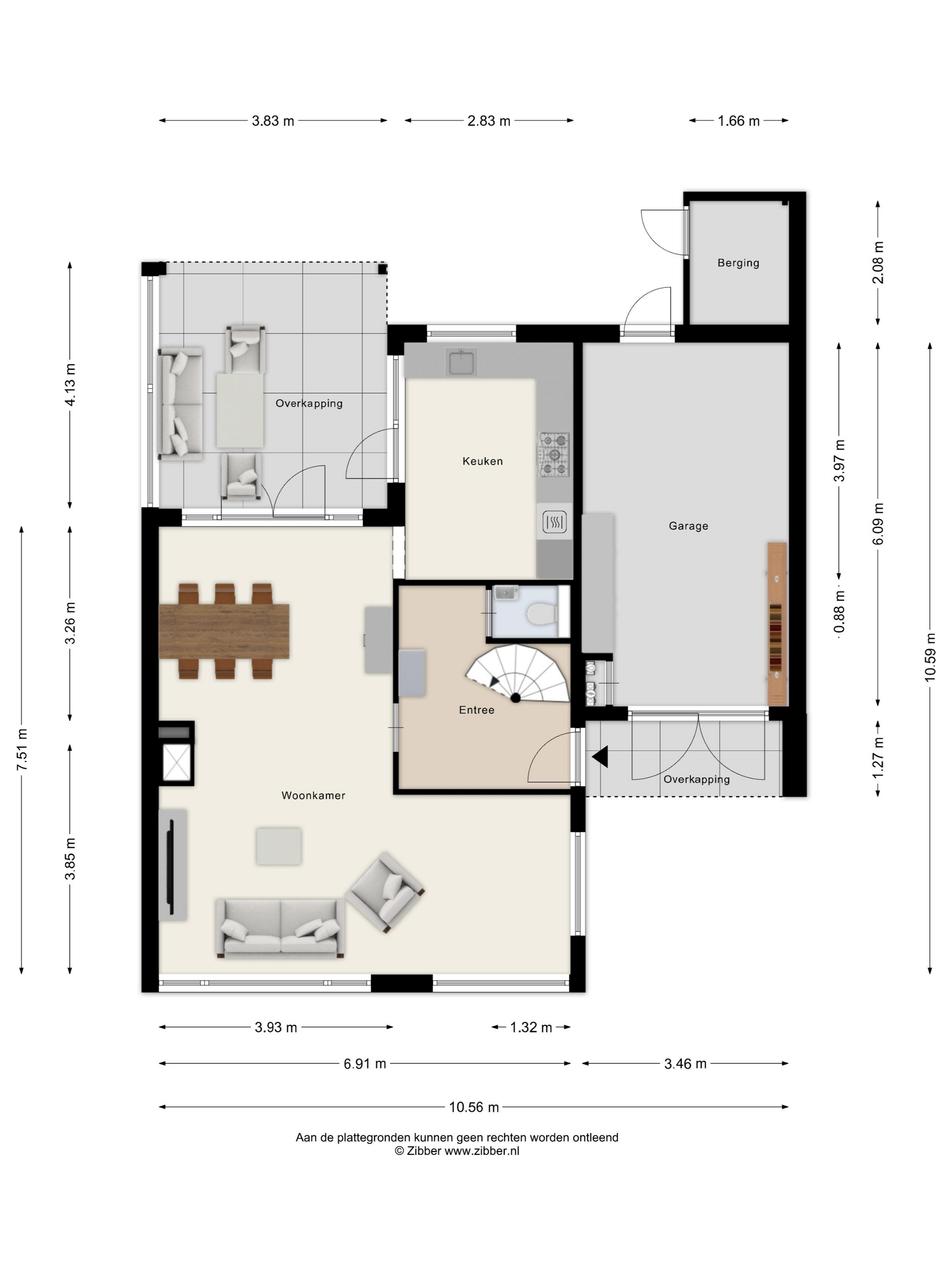 GARAGE Ruime inpandige garage met meterkast en aansluitingen voor was- en droogapparatuur.