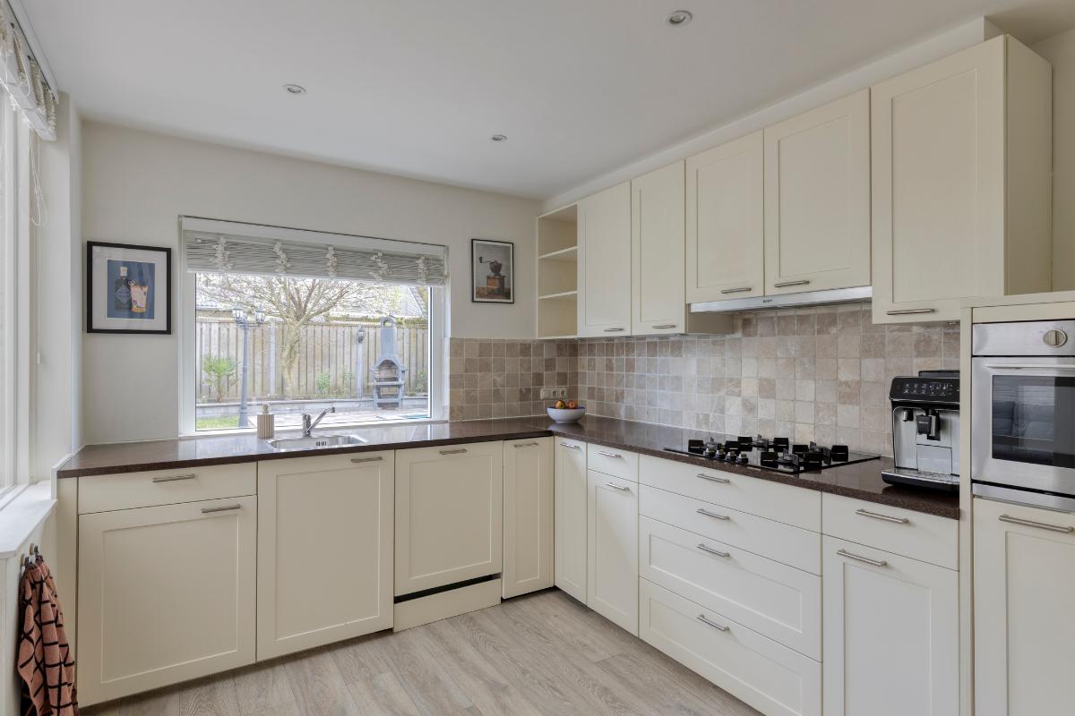 KEUKENKeuken in hoekopstelling, voorzien van inbouwapparatuur, te weten: vaatwasser, combi oven-/magnetron, gaskookplaat, afzuigkap en koelkast. De keuken is fraai afgewerkt met een granieten werkblad. Vanuit de keuken is via een loopdeur eveneens de tuin bereikbaar.