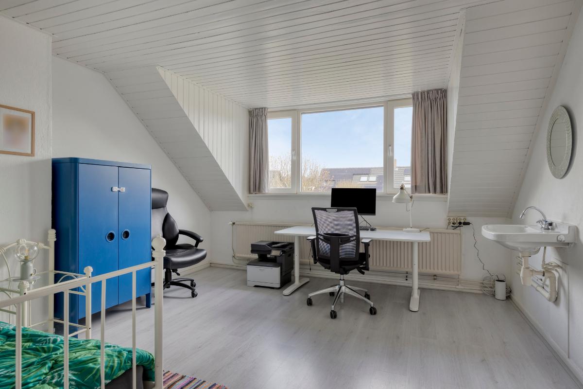 TWEEDE VERDIEPING Middels vaste trap bereikbare zolderverdieping, bestaande uit een voorzolder, twee slaapkamers en een technische ruimte. In de technische ruimte bevinden zich de opstelplaats van de C.V.-ketel en de omvormer voor de zonnepanelen. De vierde slaapkamer is aan de voorzijde gelegen en voorzien van een dakraam. De vijfde slaapkamer beschikt over een grote dakkapel. Tevens is er praktische bergruimte aanwezig onder de kapschuinte.