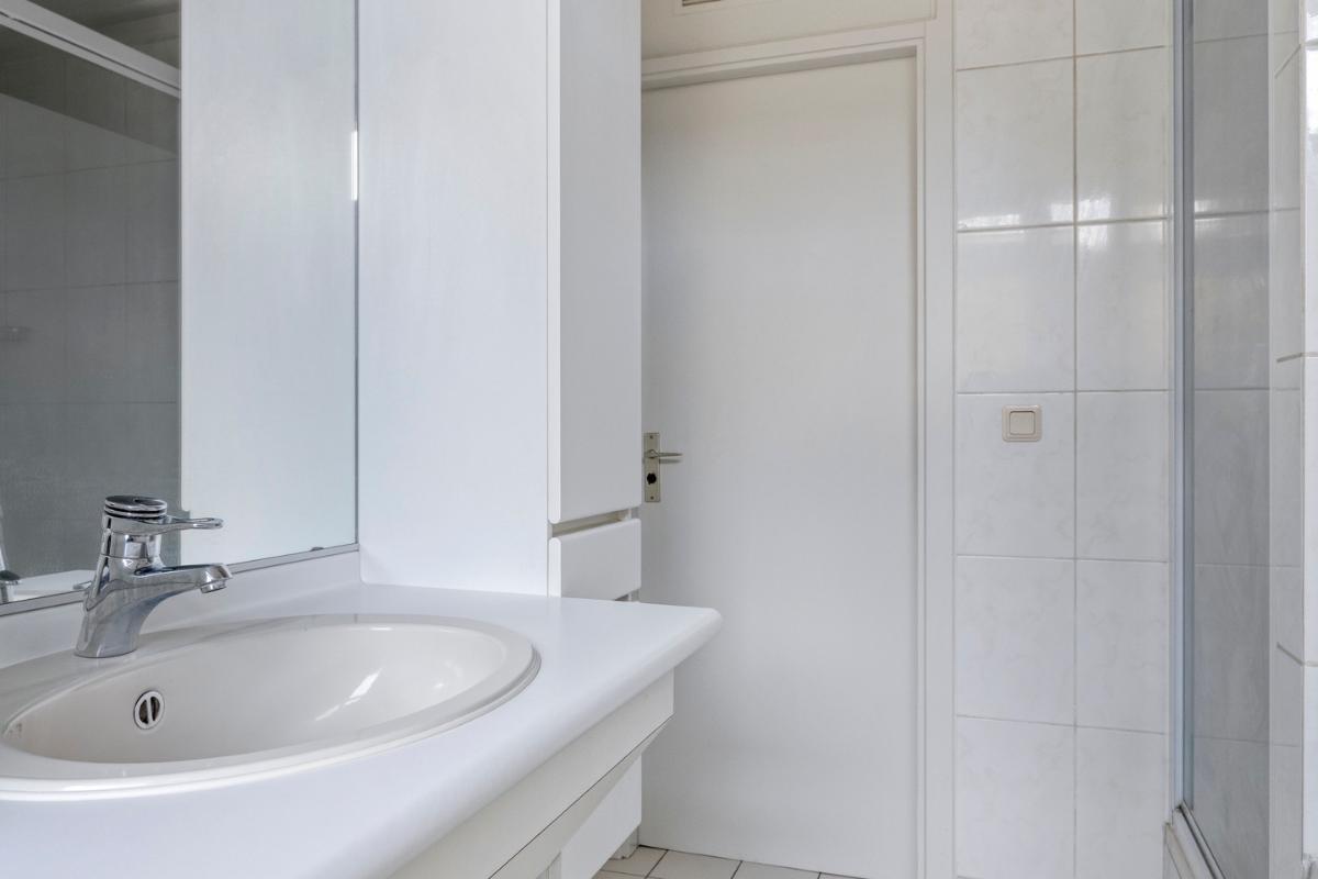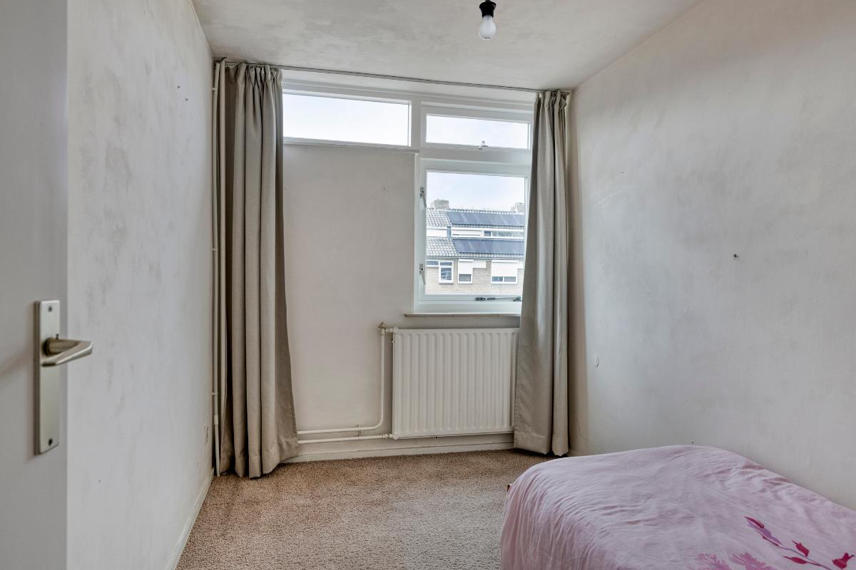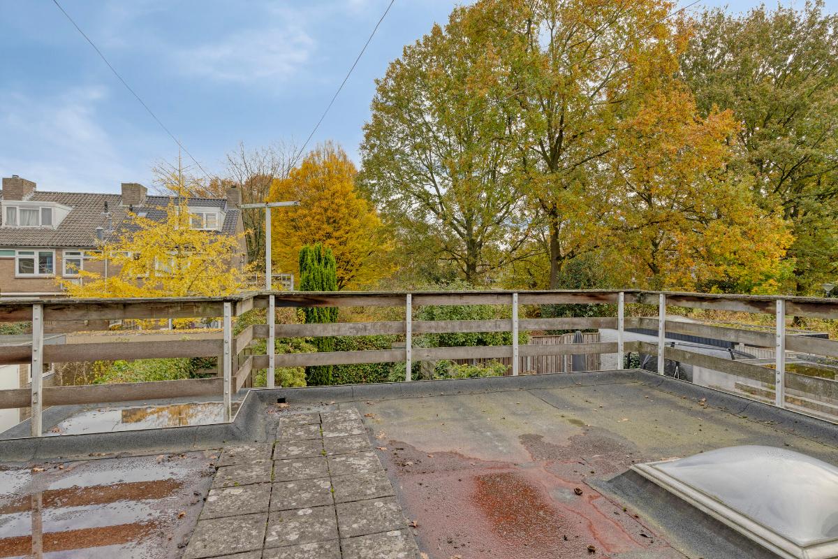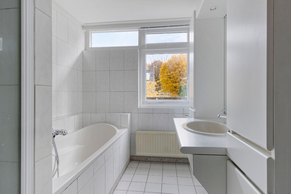 1e Verdieping Overloop; slaapkamer 1 aan de voorzijde van plm. 13 m2 met inbouw kast en een frans balkon; slaapkamer 2 aan de voorzijde van plm. 8m2; slaapkamer 3 aan de achterzijde van plm. 11 m2 met ingebouwde kast en een deur naar het dakterras; badkamer met een ligbad, separate douche en wastafelmeubel met ingebouwde wastafel, spiegel en kast- en lade ruimte; de voormalige badkamer is getransformeerd naar een separaat toilet met een hangcloset, fonteintje en de mogelijkheid om een wasmachine te plaatsen.