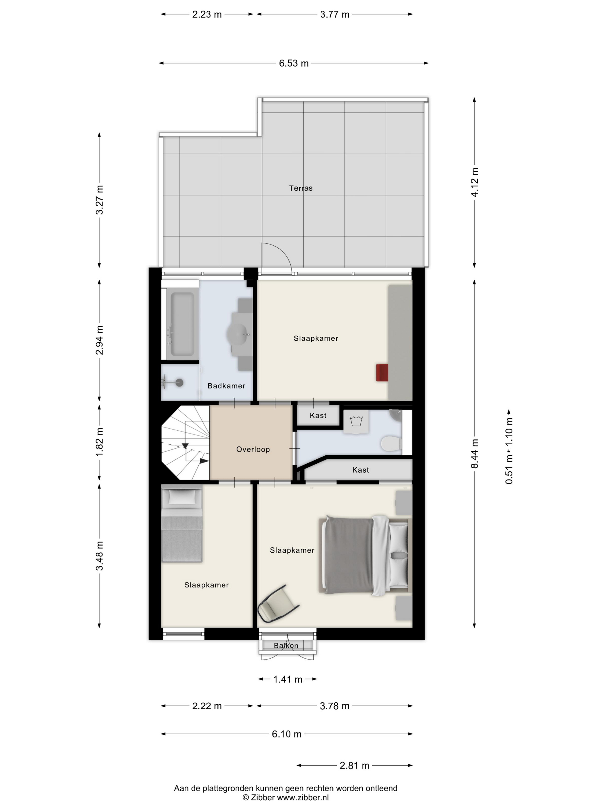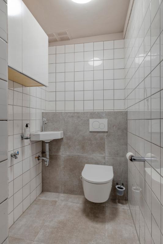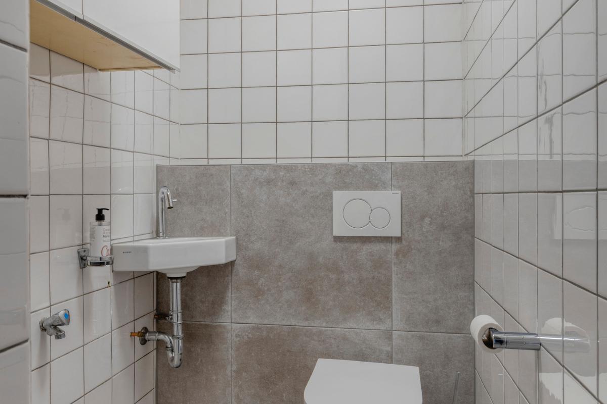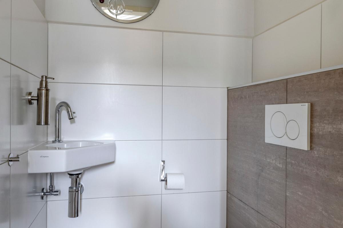 1e Verdieping Overloop; slaapkamer 1 aan de voorzijde van plm. 13 m2 met inbouw kast en een frans balkon; slaapkamer 2 aan de voorzijde van plm. 8m2; slaapkamer 3 aan de achterzijde van plm. 11 m2 met ingebouwde kast en een deur naar het dakterras; badkamer met een ligbad, separate douche en wastafelmeubel met ingebouwde wastafel, spiegel en kast- en lade ruimte; de voormalige badkamer is getransformeerd naar een separaat toilet met een hangcloset, fonteintje en de mogelijkheid om een wasmachine te plaatsen.