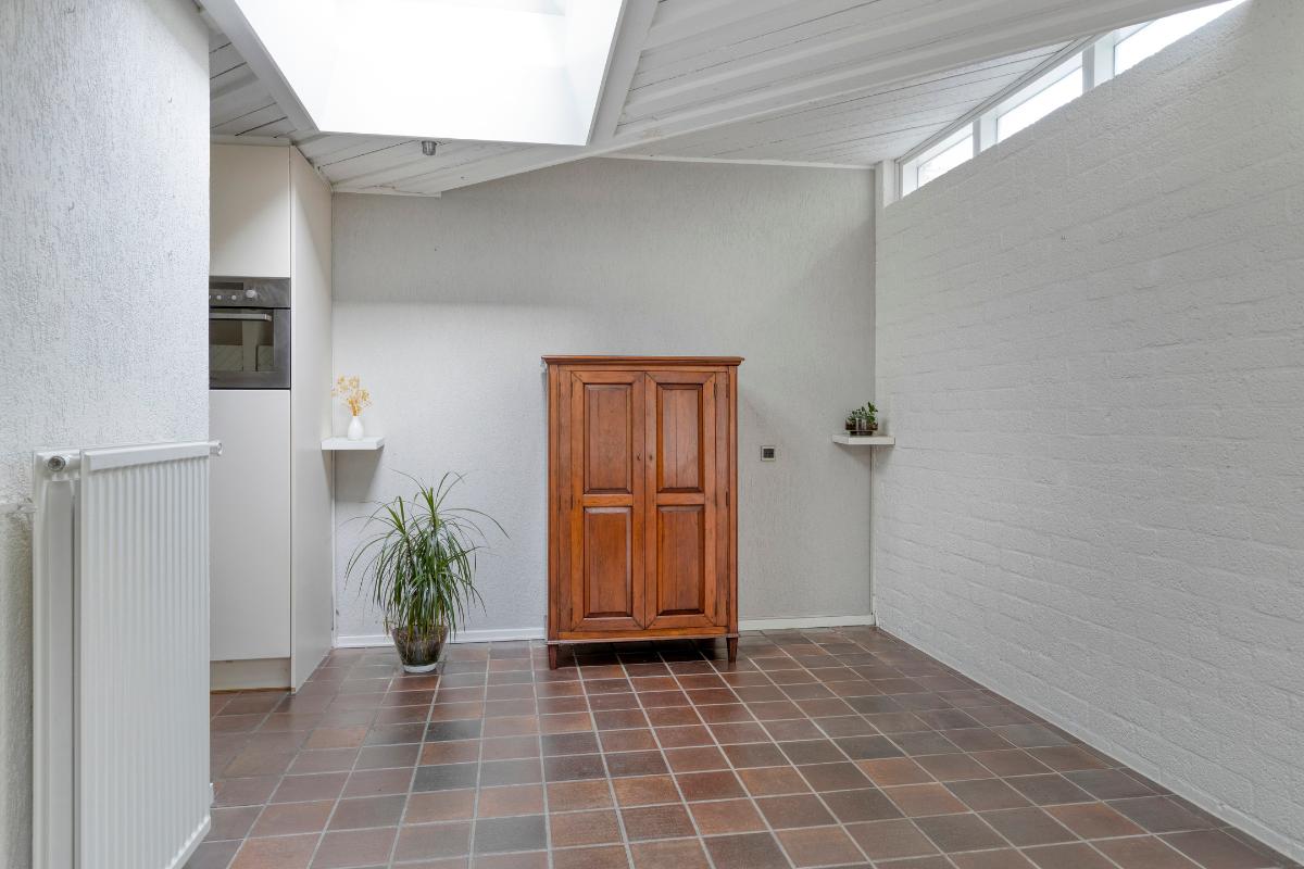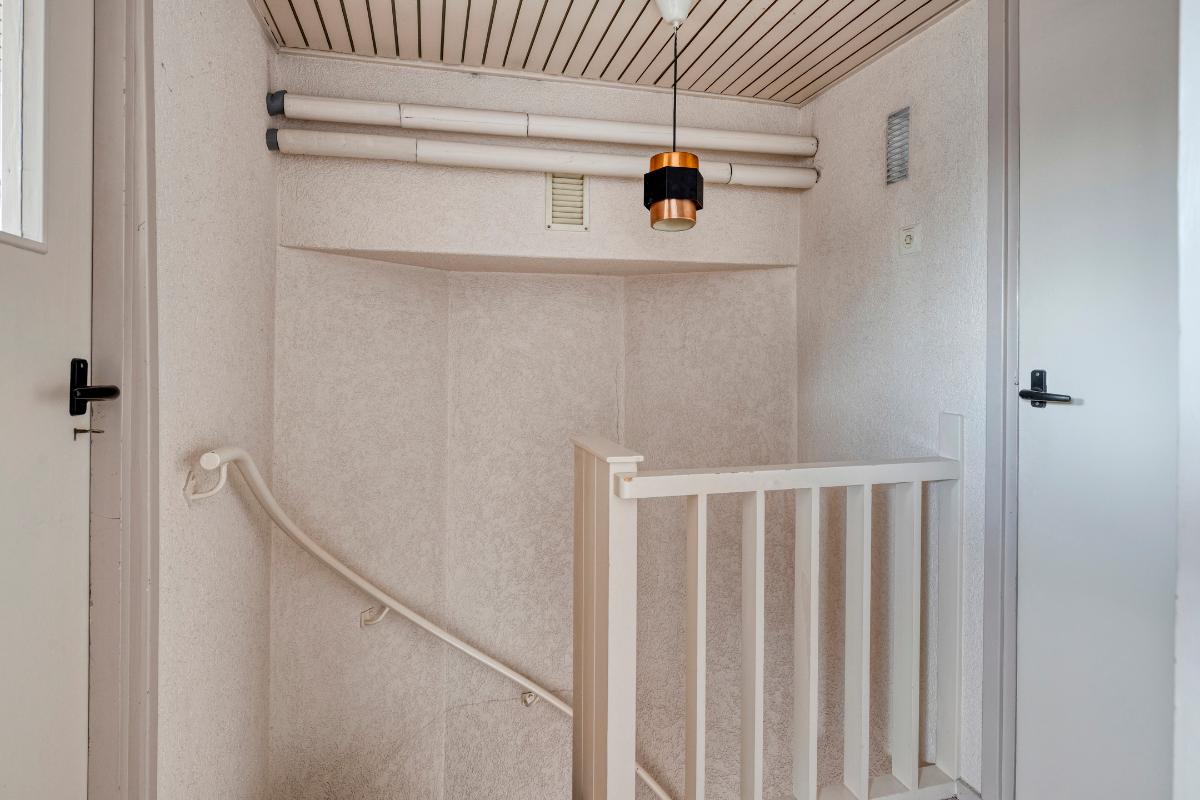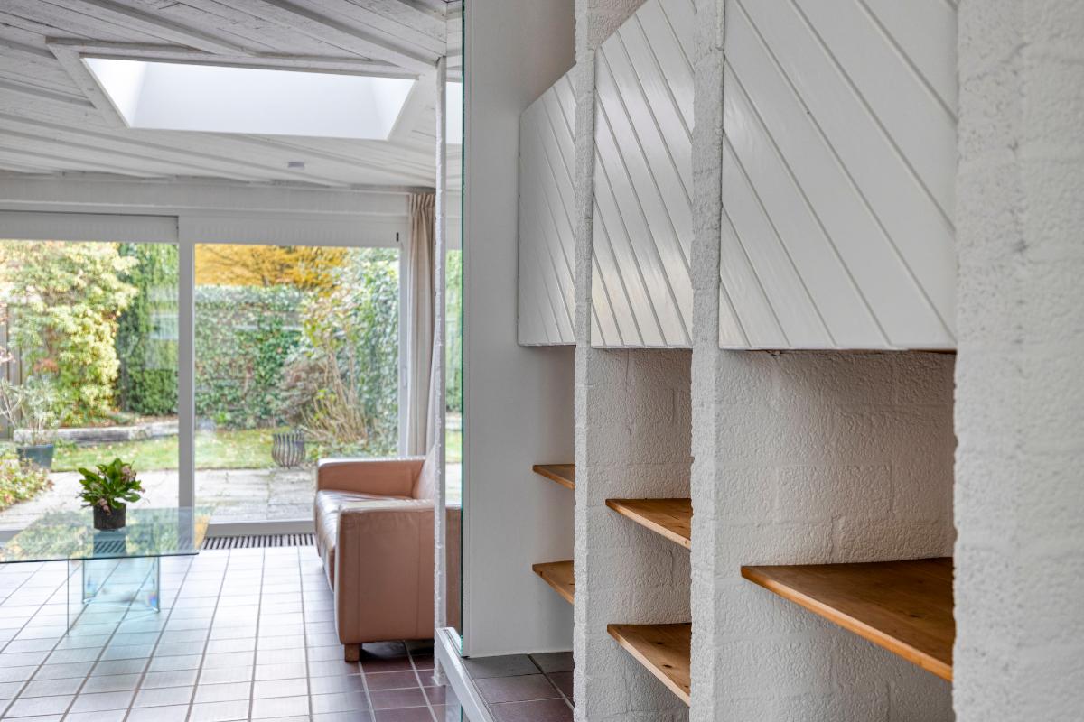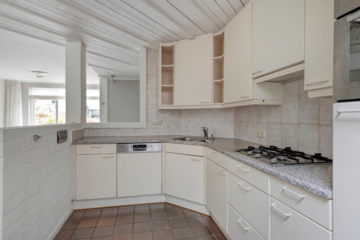 Indeling: Begane grond: Via de ruime en groene voortuin bereik je over het recent vernieuwde pad de overdekte entree met het in deze wijk kenmerkende bankje; ruime hal met tegelvloer en garderobehoek met bergruimte; meterkast met vernieuwde groepenkast (automaat met 8 groepen en aardlekschakelaars): gemoderniseerd toilet met hangcloset en fonteintje; sfeervolle en grote woonkamer met openhaard, plateau en kastruimte. In de woonkamer zijn diverse indelingen mogelijk. Je kan kiezen om aan de voorkant te gaan zitten maar ook aan de tuinzijde. De eethoek kan je op diverse plekken kwijt. Aan de achterzijde is er een grote schuifpui met convectorput naar de tuin. De keuze is aan jou. De half open keuken ligt centraal in de living en heeft een keuken in hoekopstelling met een ruim aanrechtblad, spoelbak, gaskookplaat, afzuigkap, koelkast, close in boiler, vaatwasser en combi oven. Verder is er voldoende kastruimte aanwezig. Aansluitend aan de woonkamer is de inpandige berging bereikbaar. Naast het stallen van fietsen/tuinspullen is dit ook prima bruikbaar als bijkeuken.