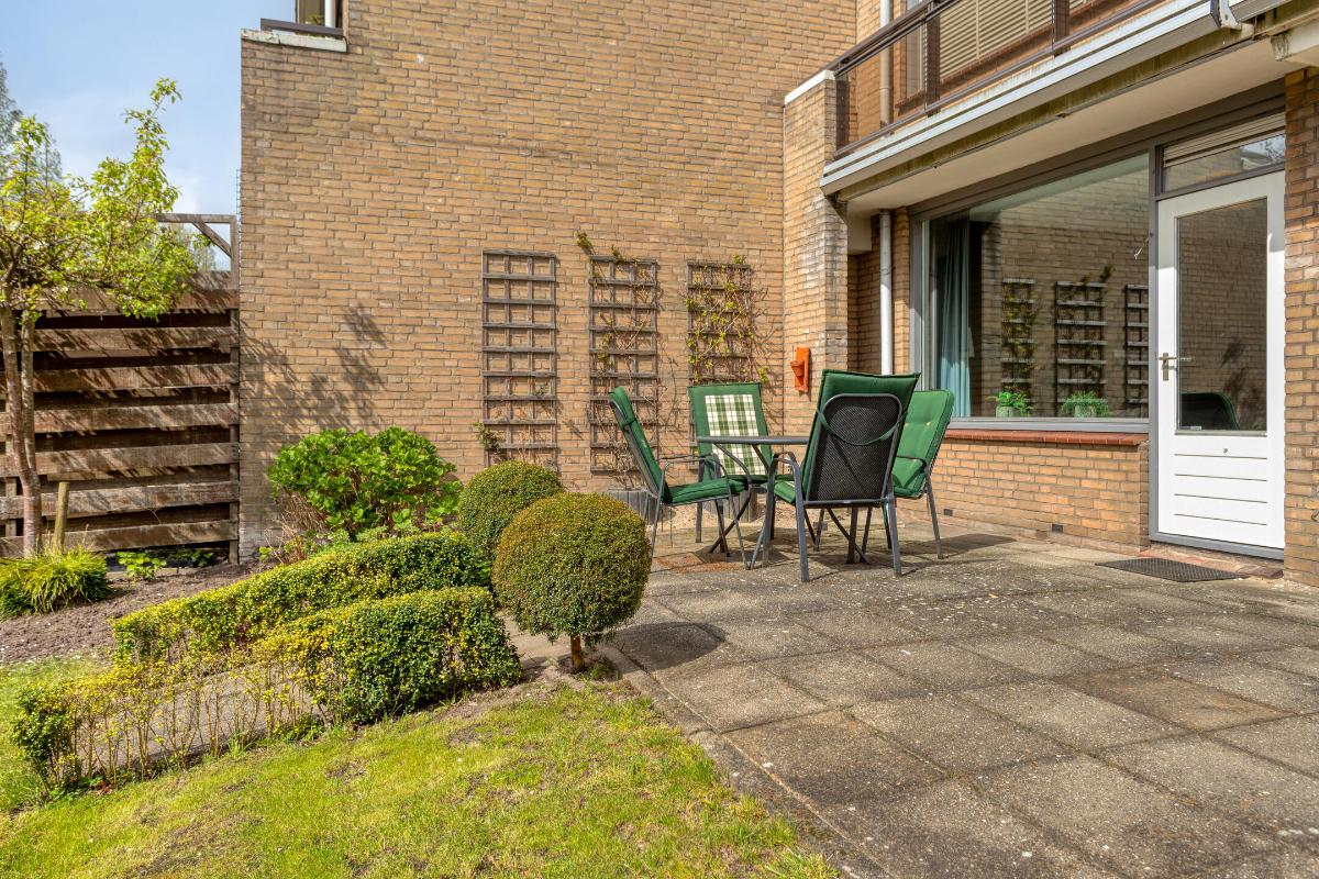 Feiten op een rij: - Benedenwoning, bouwjaar 1979; - Woonoppervlakte ca. 70 m²; - Externe berging ca. 4 m²; - Eén slaapkamer; - Ruime en lichte woonkamer met toegang tot de tuin; - Keuken vernieuwd in 2017 met U-opstelling en diverse inbouwapparatuur; - Badkamer met inloopdouche, toilet en wastafelmeubel; - Aparte wasruimte met CV-opstelling (Vaillant, 2023); - Tuin op het zuiden met elektrische zonneschermen; - Grotendeels dubbel glas (deels enkel glas in bovenlichten); - Recent vernieuwde binnendeuren; - VvE-bijdrage €188,- per maand; - Gelegen in een rustige, groene woonomgeving met voorzieningen nabij.
