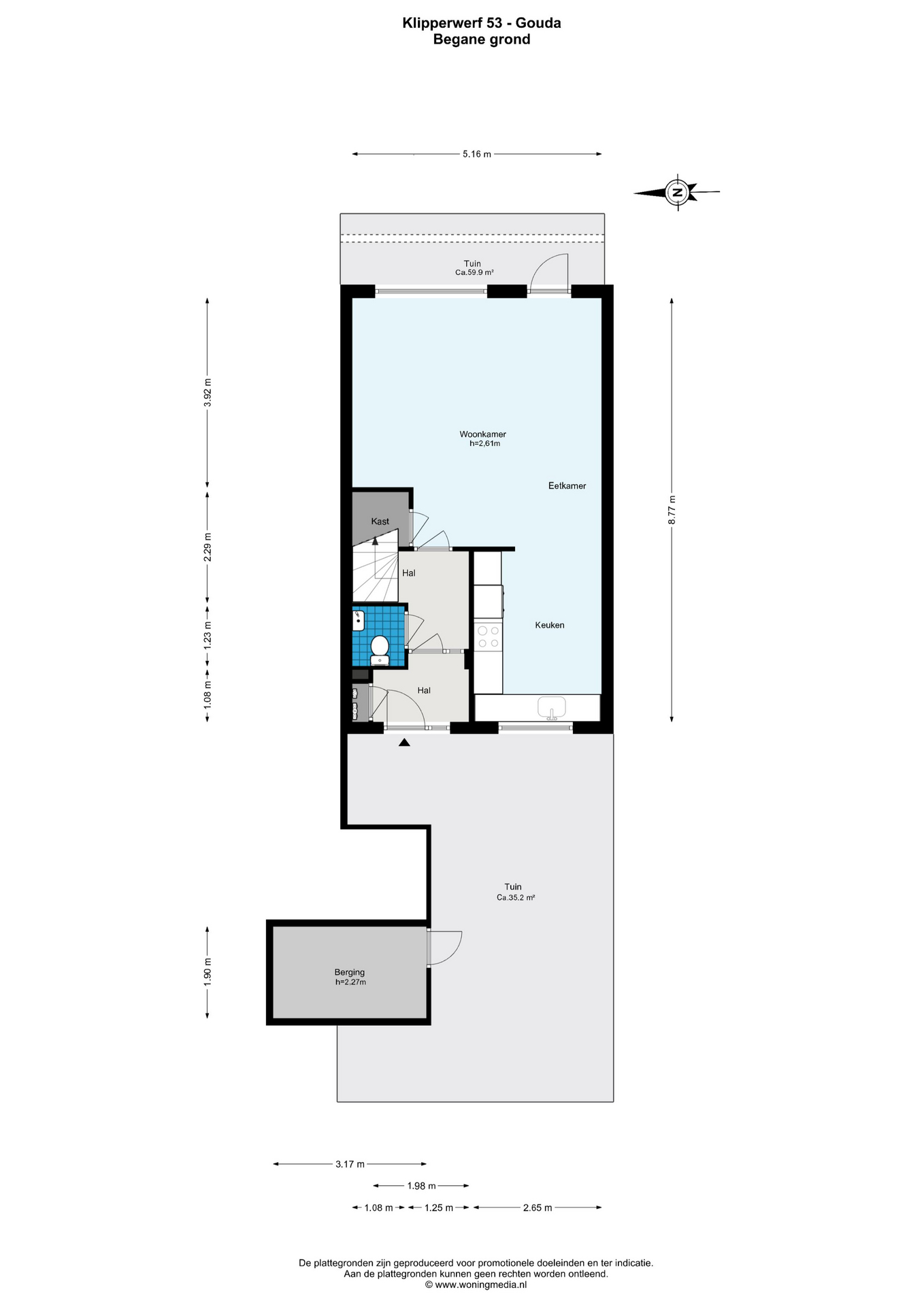 Aan de Klipperwerf 53 in Gouda staat deze goed onderhouden eengezinswoning uit 1982 met een woonoppervlakte van ca. 117 m² en een perceel van 135 m². De woning is sinds 2020 op diverse punten gemoderniseerd, waardoor deze direct te betrekken is. Met vier slaapkamers, een moderne badkamer, een zonnige tuin aan het water en parkeren op eigen terrein is dit een ideale gezinswoning op een rustige en prettige locatie. De begane grond bestaat uit een entree met hal, meterkast en toilet. De lichte woonkamer is voorzien van een nette laminaatvloer (2020) en biedt een fijne verbinding met de achtertuin aan het water. De tuin ligt op het oosten en beschikt over een vlonder waar je tot in de late middag heerlijk van de zon kunt genieten. Aan de voorzijde bevindt zich de moderne keuken (2020), uitgerust met een koel-vriescombinatie, afzuigkap, inductiekookplaat en een vaatwasser (2024). Tevens is er een praktische berging aan de voorzijde met elektra aanwezig. Op de eerste verdieping bevinden zich drie slaapkamers, allen voorzien van een laminaatvloer (2020) en horren bij de ramen. De moderne badkamer is in 2023 vernieuwd en uitgevoerd met een wastafelmeubel, toilet, regendouche, handdoekradiator en een spiegel met verwarming. Het verlaagde plafond met inbouwspots zorgt voor een luxe uitstraling. De tweede verdieping beschikt over een overloop met dakraam en een ruime zolderslaapkamer met twee dakramen en praktische bergruimte achter de knieschotten. Hier bevindt zich tevens de CV-ketel (Intergas, 2024). De woning is in 2024 voorzien van kunststof kozijnen met HR++ glas en een kunststof voordeur, wat bijdraagt aan comfort en onderhoudsgemak. Daarnaast zijn in 2024 de radiatoren vervangen. De ligging is rustig en kindvriendelijk, met wandelpad de Omloopkade om de hoek en een kinderspeeltuin vlakbij. De combinatie van water, rust en goede bereikbaarheid maakt deze woning bijzonder aantrekkelijk. Bovendien zijn voorzieningen zoals winkels, scholen en uitvalswegen op korte afstand gelegen.