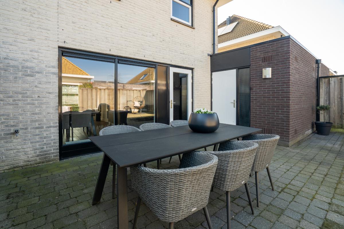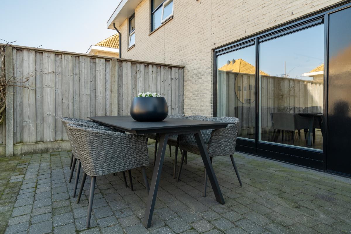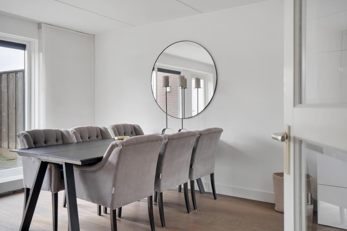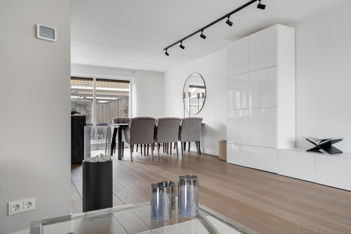 Tuin: De tuin is strak aangelegd, ruim van opzet en zeker groot genoeg om er een eettafel, loungeset of ligbedden in te plaatsen. Ook voor gezinnen is dit een fijne plek, met voldoende ruimte voor spelende kinderen en bijvoorbeeld een trampoline of glijbaan. Het is geen tuin waar je eindeloos werk aan hebt, maar wel een plek waar je heerlijk schakelt tussen buiten eten, een stoel in de zon en gewoon even niks. Direct aan de woning ligt het terras als verlengstuk van de leefruimte. Met de grote pui naar binnen heb je een fijne overgang tussen het huis en de tuin. Daarbij maakt de grote garage het geheel extra praktisch, vooral om van alles in op te bergen. Bovenal een verzorgde tuin met privacy en een goede maat.
