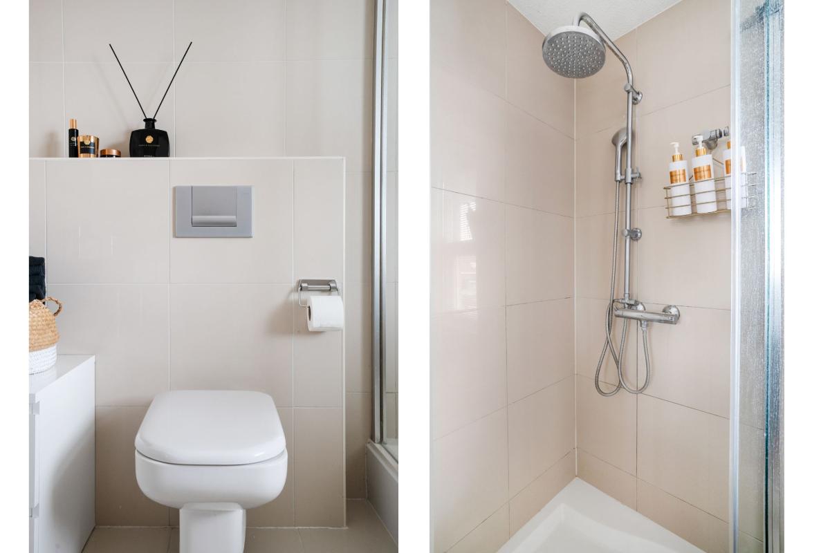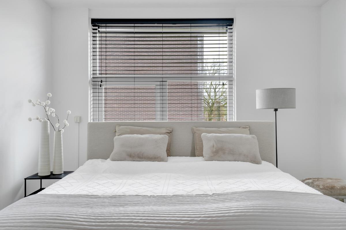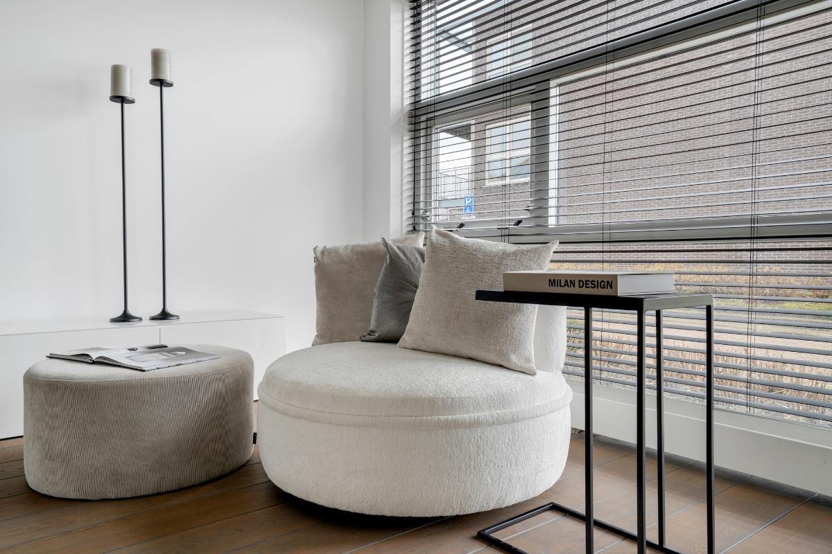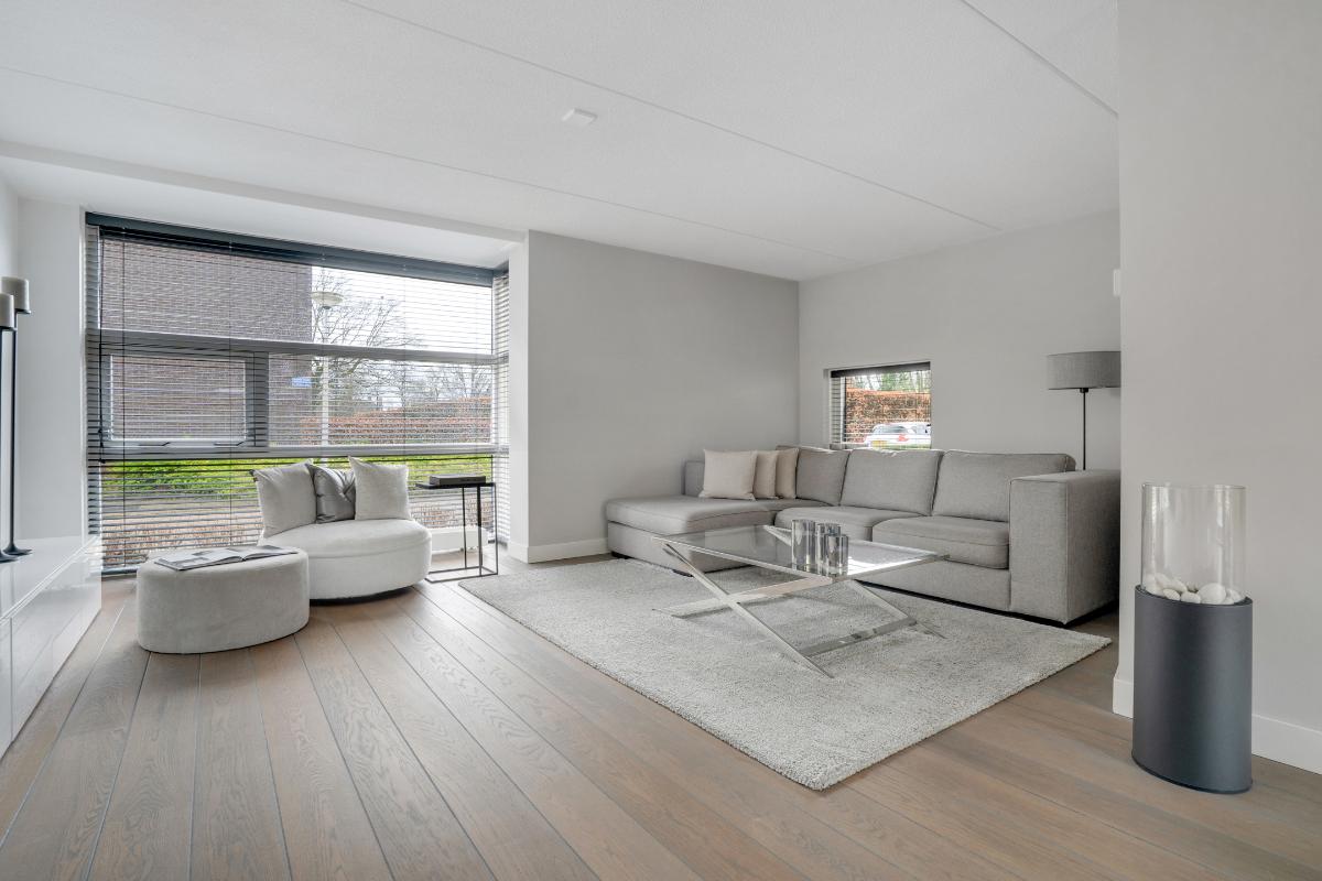 Begane grond: Aan de buitenzijde oogt het huis strak, verzorgd en eigentijds, eenmaal binnen valt daarnaast vooral ook de rust op. De afwerking is modern en de indeling logisch. Je komt binnen in de hal met toilet, meterkast en trapopgang. Aan de voorzijde van de woning ligt de woonkamer, een fijne plek met grote raampartijen en een rustige sfeer. Het licht valt hier mooi naar binnen en dat geeft het open gevoel. Geen drukte, geen overdaad, maar een woonkamer waar je direct voelt dat je hier ontspannen woont.