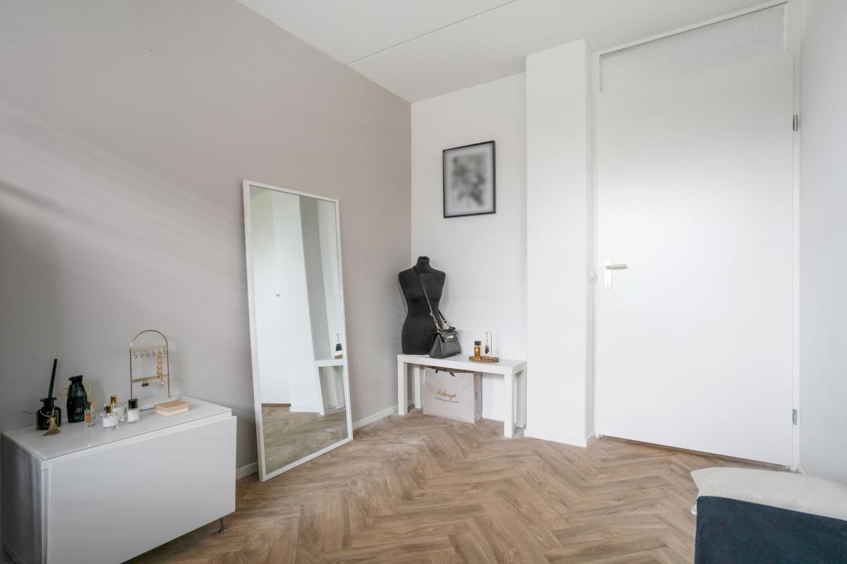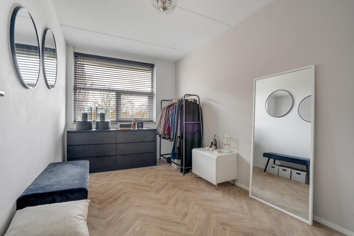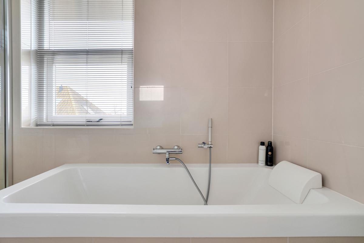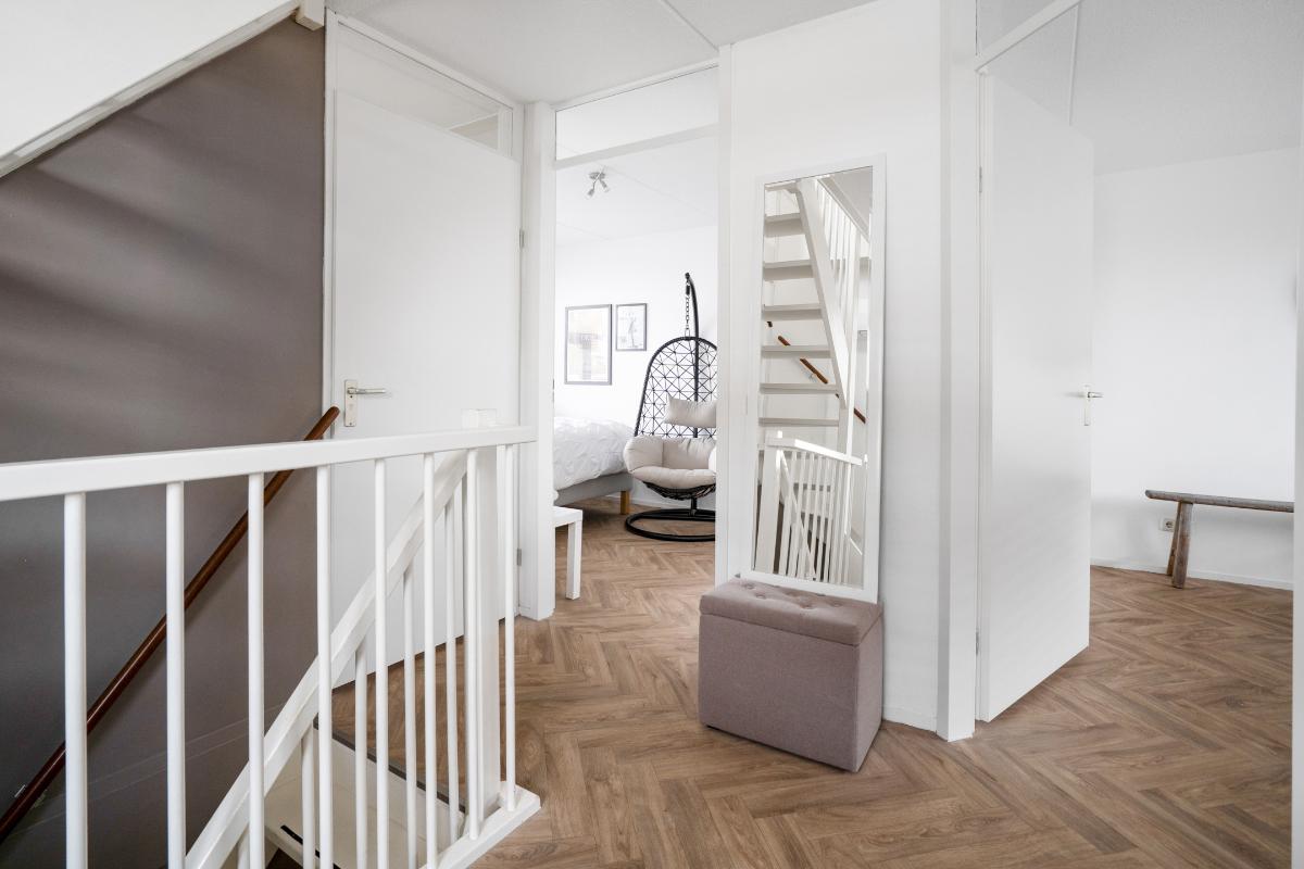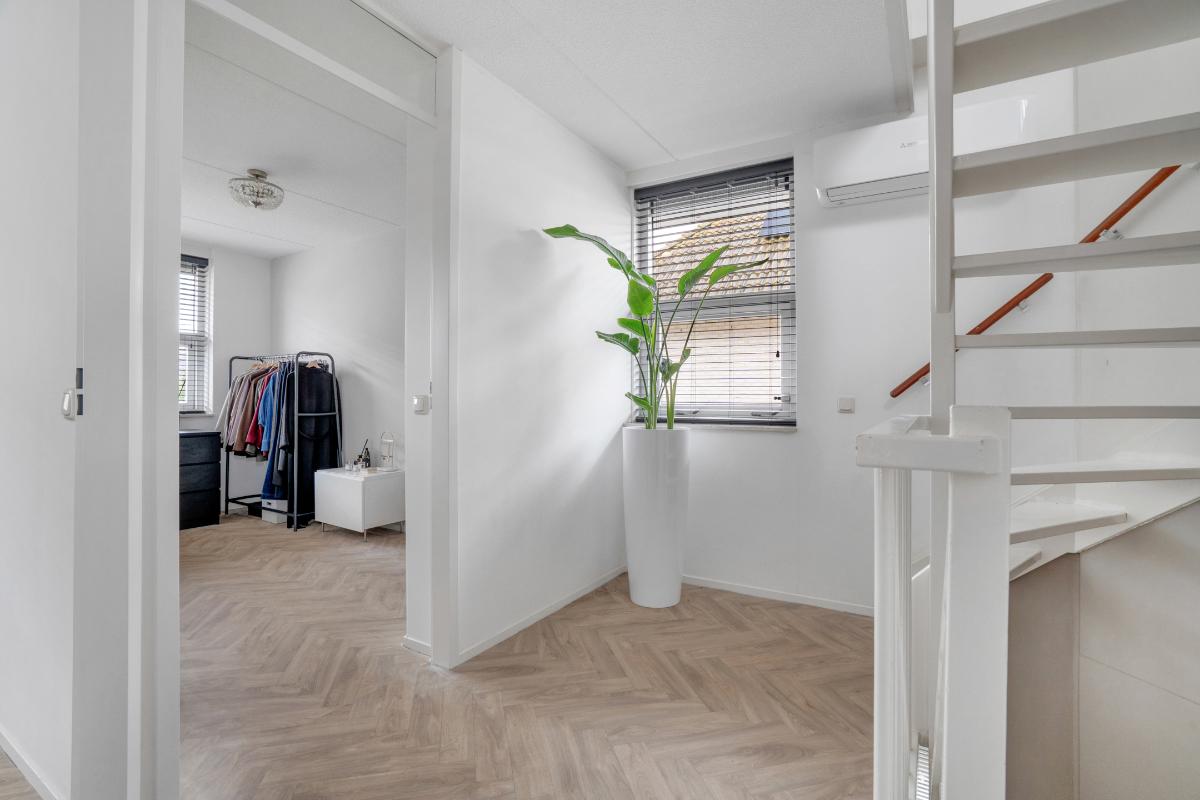 1e verdieping: Ook boven blijft het huis sterk overeind, namelijk een etage die precies doet wat je hoopt. Vanaf de overloop zijn alle kamers goed bereikbaar. Wat ook hier direct opvalt is de ruime en licht. Daarbij zorgt de visgraatvloer over deze gehele verdieping voor een mooi geheel. Er zijn drie slaapkamers aanwezig, stuk voor stuk volwaardige kamers. De grootste kamer heeft een comfortabele maat en leent zich perfect als hoofdslaapkamer. De andere twee kamers zijn net zo goed inzetbaar als kinder-, werk-, kleed- of logeerkamer. Je hoeft hier niet te puzzelen of concessies te doen, de ruimtes geven je alle mogelijkheden. Op de overloop is een airco aanwezig wat deze verdieping, zomers koel houdt en je in de winter kan gebruiken om wat bij te verwarmen. De badkamer sluit mooi aan op de rest van het huis. Licht, verzorgd en compleet uitgevoerd met een ligbad, douche, toilet en dubbele wastafel. Alles is aanwezig en de opzet is ruim genoeg om de ochtendspits nét wat aangenamer te maken.