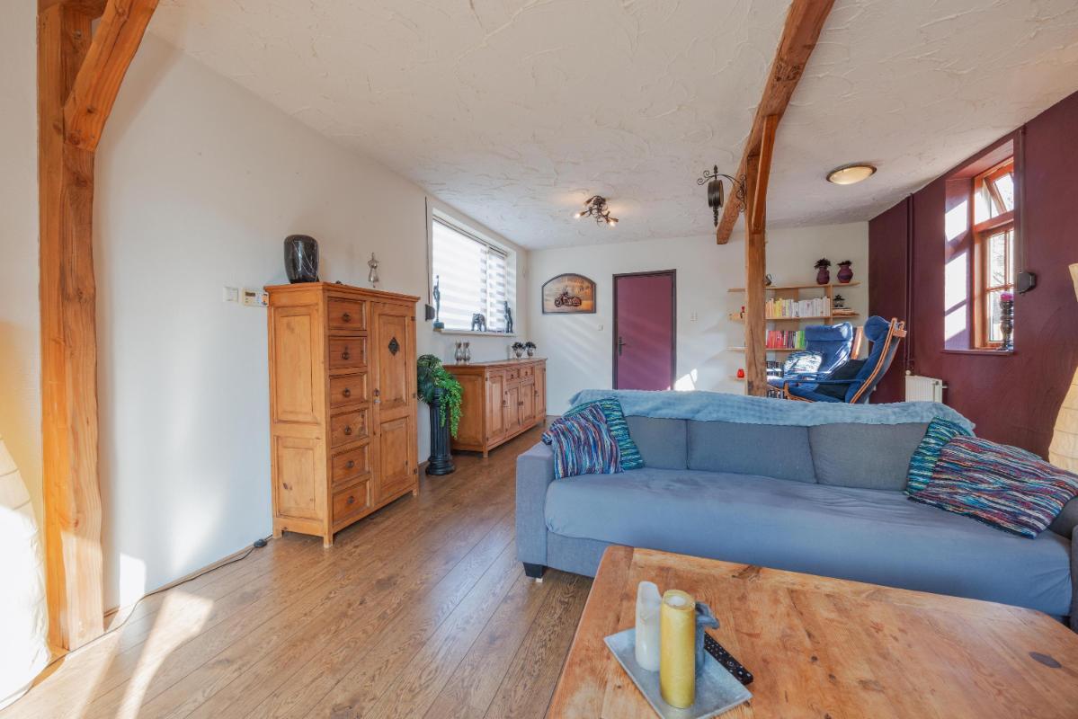 Indeling van de woning: Begane grond: Entree/hal met trapopgang naar de eerste verdieping en de volledig betegelde toiletruimte met fonteintje, toilet en bidet. Vanuit de hal enerzijds toegang tot de woonkamer en anderzijds naar de woonkeuken. De sfeervolle woonkamer is maar liefst ca. 40 m2 en aan de voorzijde gelegen. Door de vele raampartijen heeft de woonkamer een heerlijke lichtinval. Anderzijds is de keuken gelegen. Dit is een prachtige grote ruimte en oprecht een woonkeuken te noemen en doormiddel van openslaande tuindeuren staat de ruimte in open verbinding met de tuin. De keuken is in een U-vorm gesitueerd en heeft in het midden een extra werkblad met kastruimte. Aan inbouwapparatuur o.a. het volgende; vaatwasser, gaskookplaat, koelkast en oven. Vanuit de keuken is de 2e hal te bereiken. Deze hal biedt toegang tot een 2e toiletruimte, de badkamer, een slaapkamer en een loopdeur naar de achtertuin. Levensloopbestendig wonen met een badkamer en slaapkamer op de begane grond. De badkamer is ruim van opzet, deels betegeld en beschikt over een douche-lig combinatie, wastafel in meubel en aansluiting voor de wasapparatuur. Aansluitend de slaapkamer (momenteel ingericht als kantoor) welke voorzien is van een groot raam met uitkijk op de tuin.