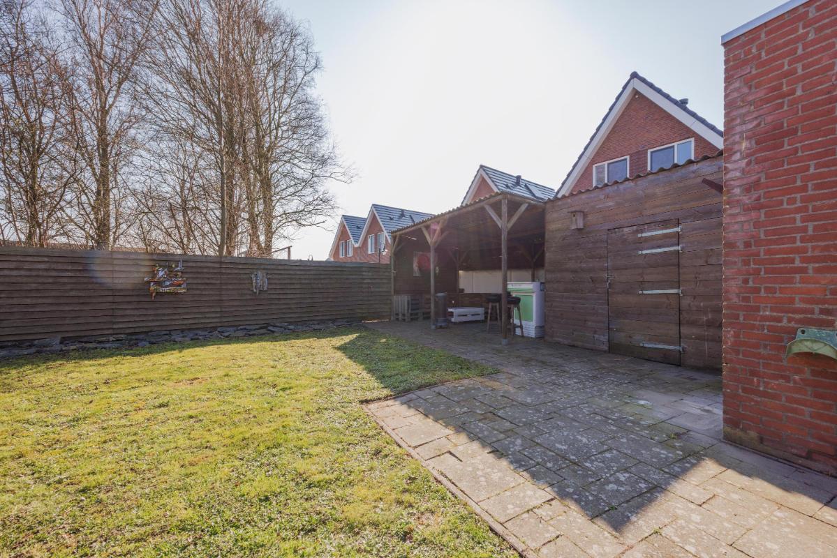 Tuin: Verzorgde geheel omsloten zij- en achtertuin met achterom. De privacy biedende tuin is overwegend gelegen op het zuidoosten en heeft een grote vrijstaande garage met daarnaast een berging en overkapping.