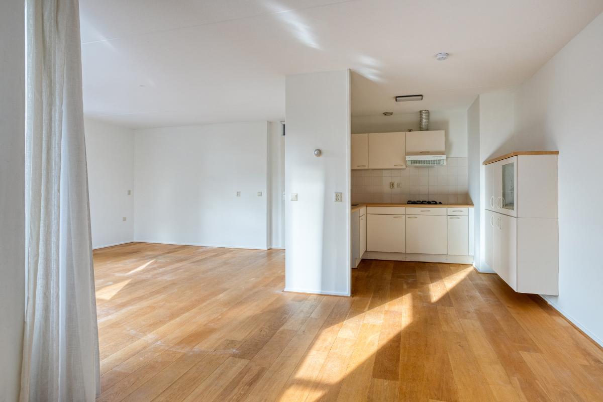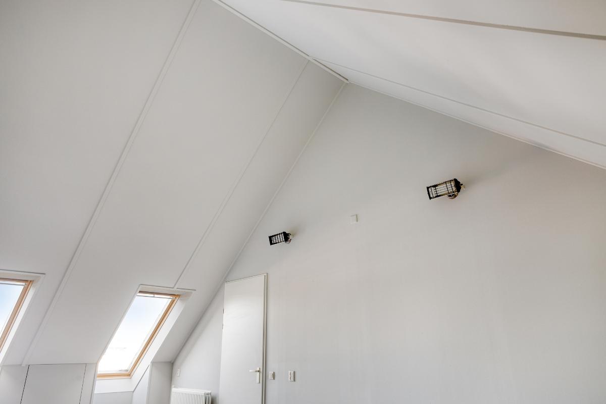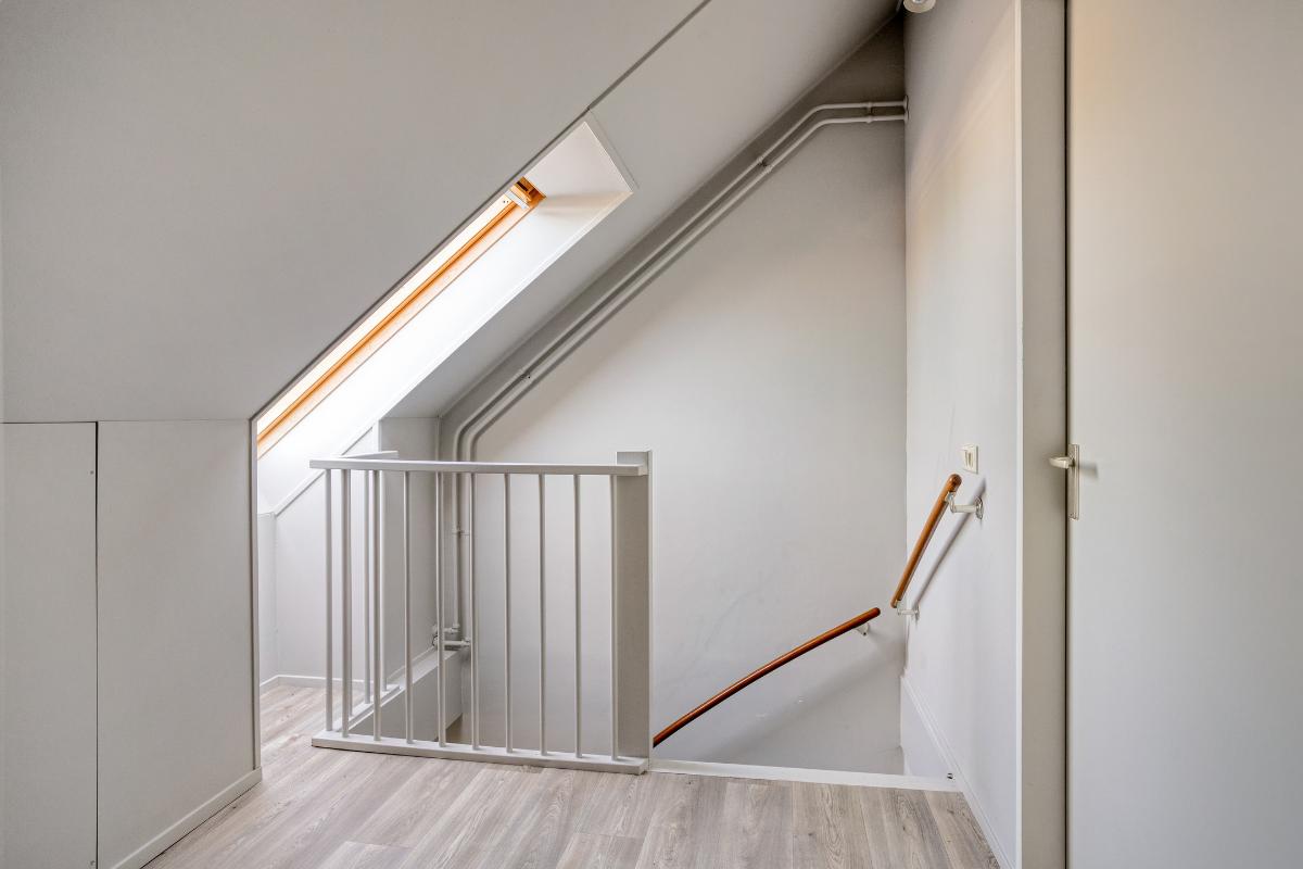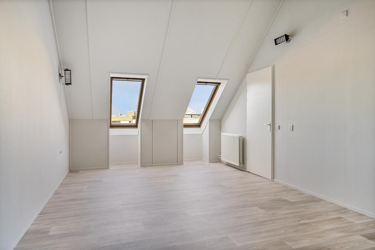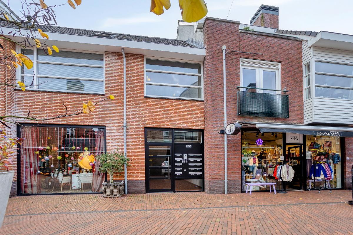Indeling appartement 1e woonlaag: ruime entree/hal met trapkast en toiletruimte met fonteintje. De zonnige L-vormige woonkamer heeft een openslaande deur naar het ruime dakterras. Van hier heeft u een fantastisch zich op het plein voor de dorpskerk. De gedeeltelijk open keuken heeft een lichte en L-vormige keukeninrichting met ingebouwde gaskookplaat en afzuigkap. De slaapkamer bevindt zich aan de achterzijde en de badkamer is v.v. een inloopdouche, wastafelmeubel en hangkast. 2e woonlaag: overloop met dakraam, zeer ruime (zolder)kamer met dakraam en een extra multi functionele kamer met c.v.ketel en wasmachineaansluiting.