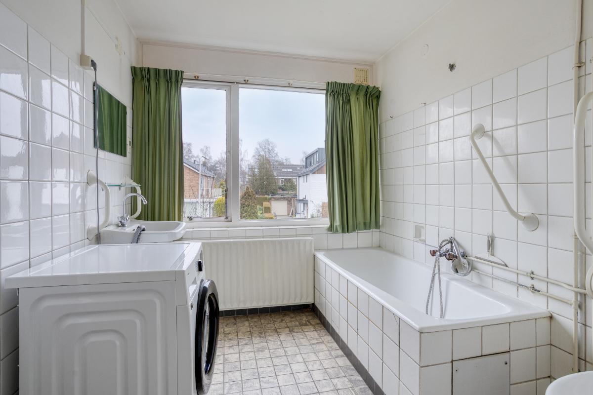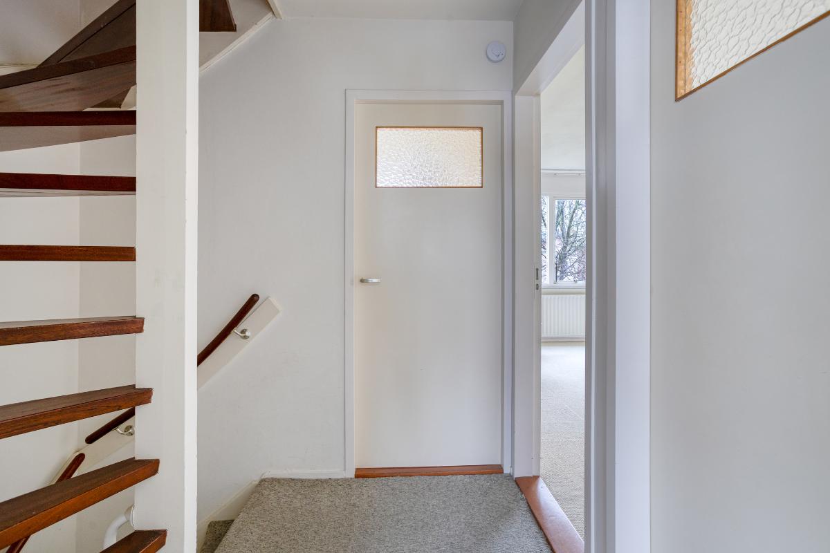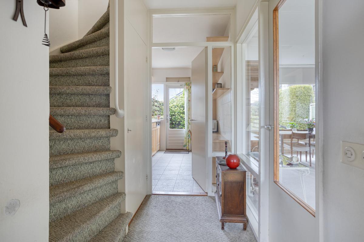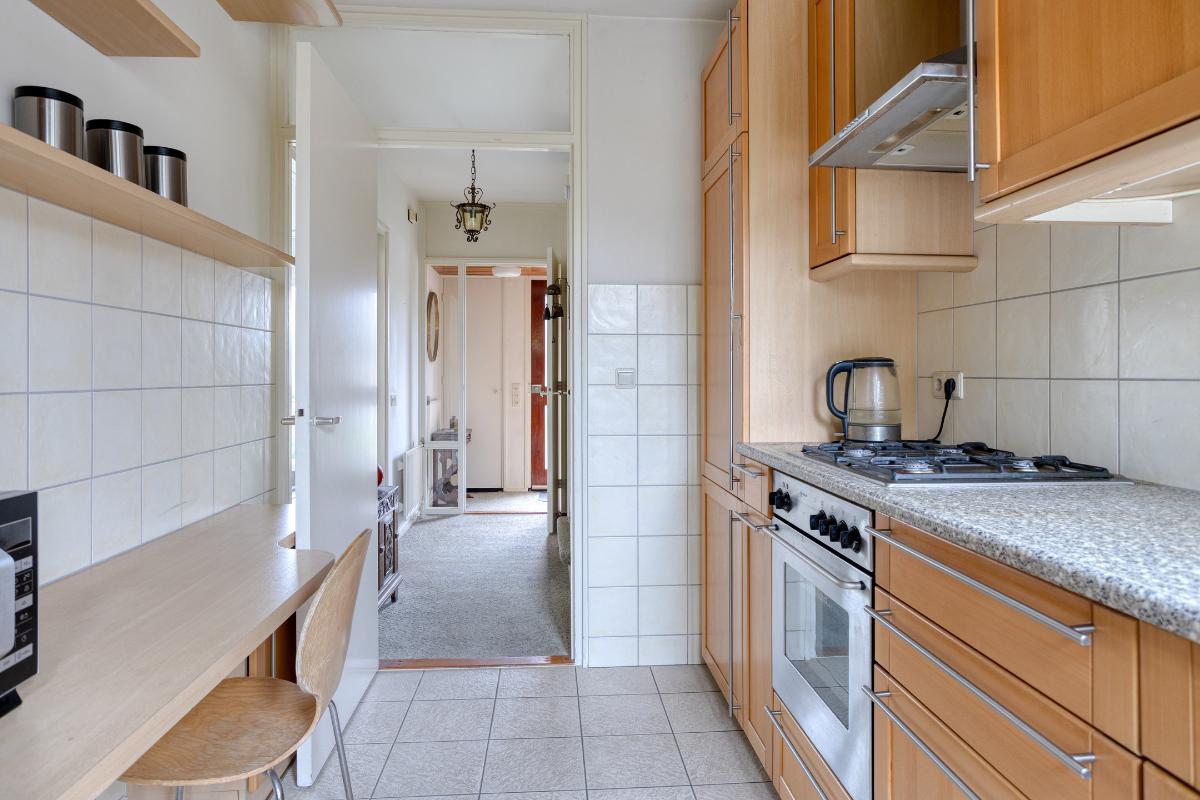 Indeling Begane grond: entree/tochtportaal met meterkast. Hal met trap-/provisiekast, trapopgang en toiletruimte met fonteintje. De ruime doorzonkamer van 32 m2, heeft een tuindeur en is bijzonder zonnig. De aparte keuken van 8 m2, heeft een tuindeur en een ingebouwde oven, gaskookplaat, afzuigkap, koelkast, vriezer en vaatwasser. 1e Verdieping: overloop met drie slaapkamers resp. 8, 14 en 17 m2. De badkamer is voorzien van een ligbad, wastafel, toilet en wasmachine aansluiting. De vaste trap geeft toegang tot; 2e Verdieping: overloop met twee royale zolderbergingen waarvan één met c.v. ketel. De ruime zolderkamer is v.v. een dakraam en bergruimte achter de knieschotten