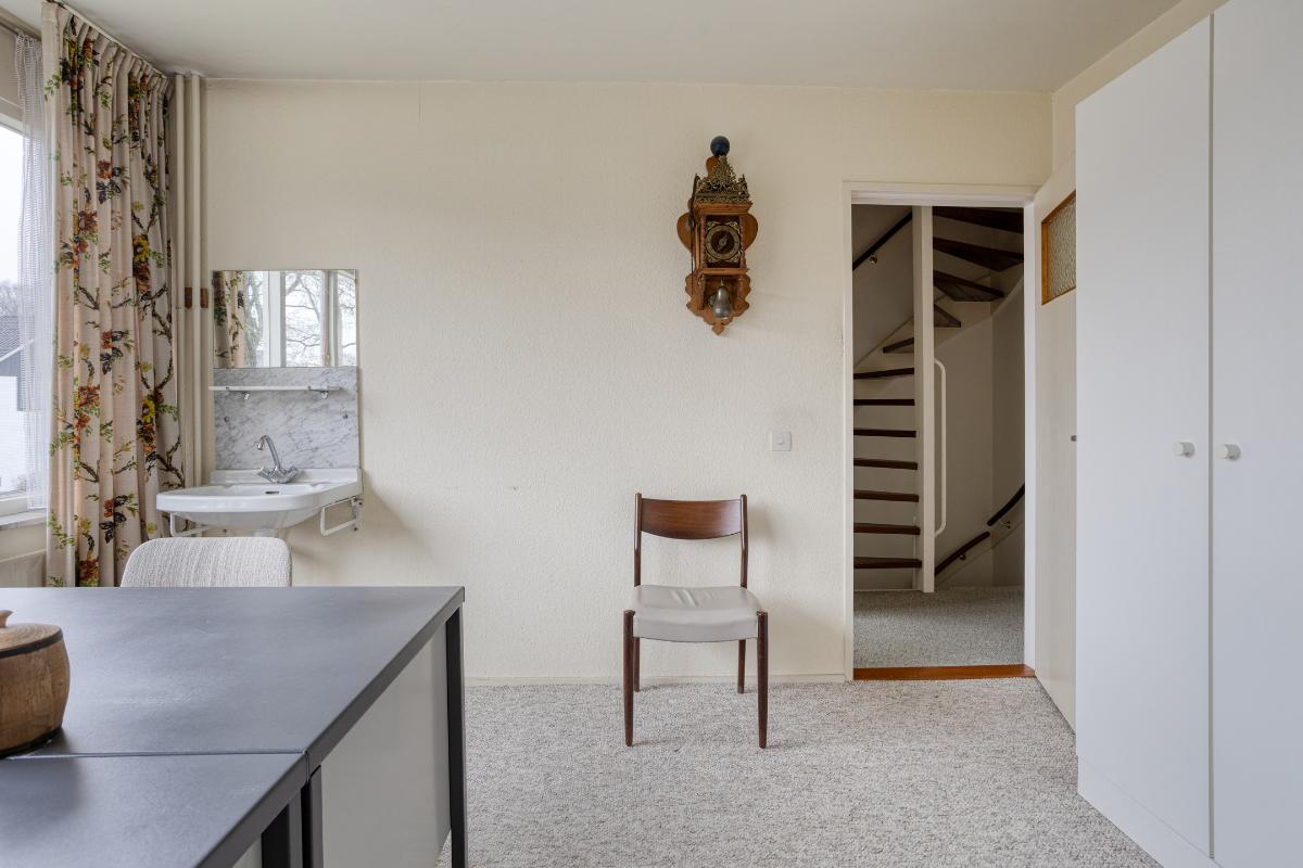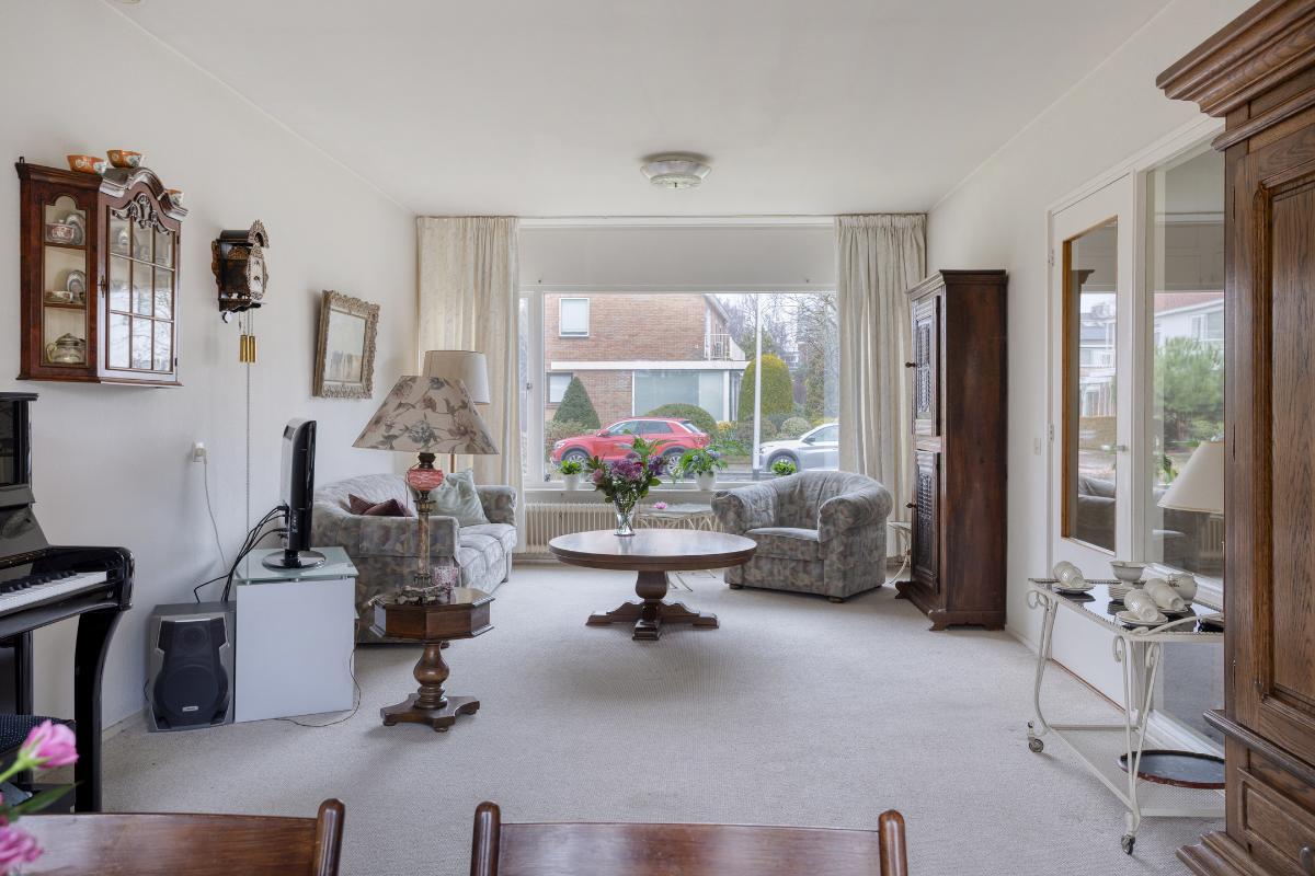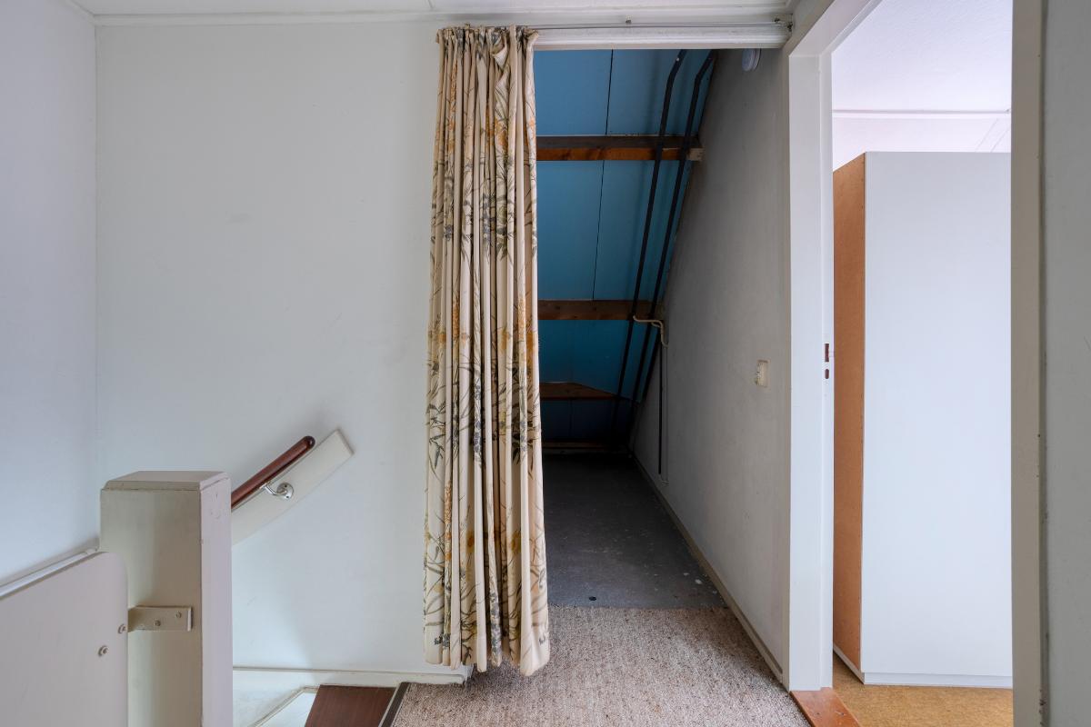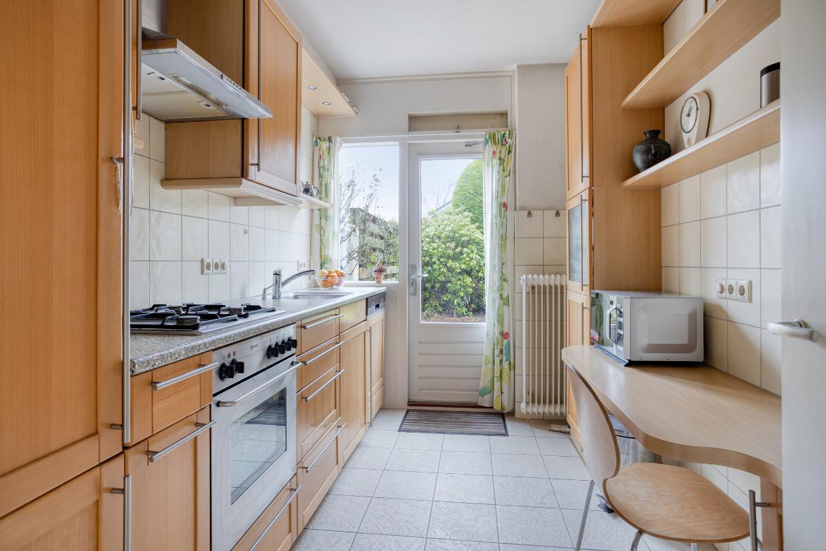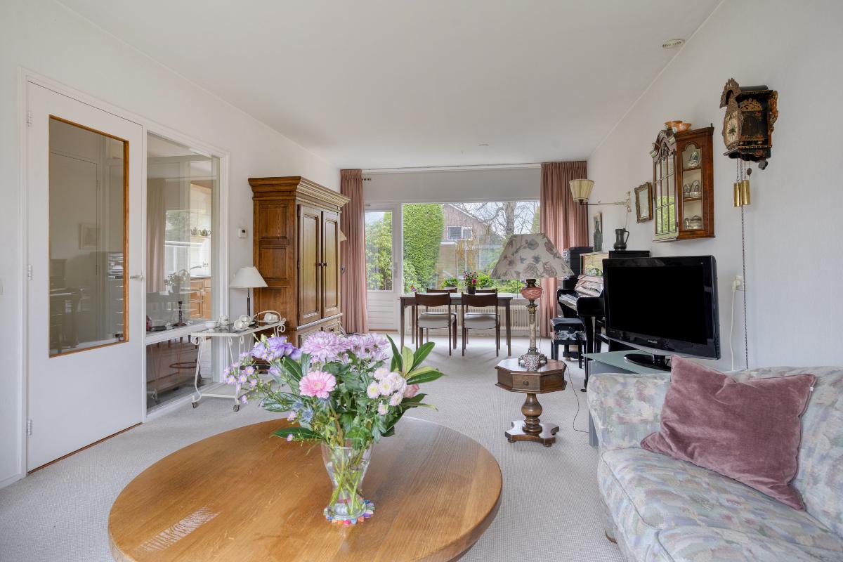 Indeling Begane grond: entree/tochtportaal met meterkast. Hal met trap-/provisiekast, trapopgang en toiletruimte met fonteintje. De ruime doorzonkamer van 32 m2, heeft een tuindeur en is bijzonder zonnig. De aparte keuken van 8 m2, heeft een tuindeur en een ingebouwde oven, gaskookplaat, afzuigkap, koelkast, vriezer en vaatwasser. 1e Verdieping: overloop met drie slaapkamers resp. 8, 14 en 17 m2. De badkamer is voorzien van een ligbad, wastafel, toilet en wasmachine aansluiting. De vaste trap geeft toegang tot; 2e Verdieping: overloop met twee royale zolderbergingen waarvan één met c.v. ketel. De ruime zolderkamer is v.v. een dakraam en bergruimte achter de knieschotten