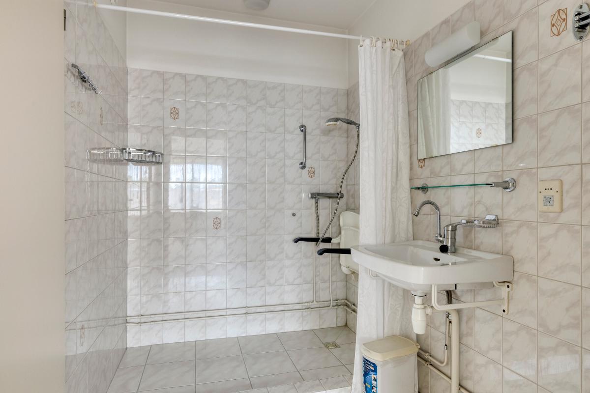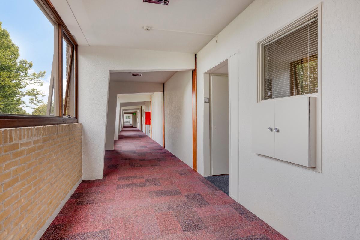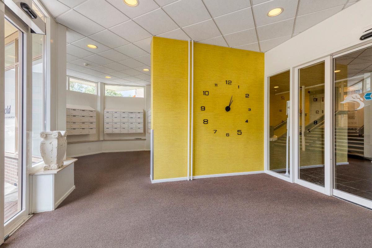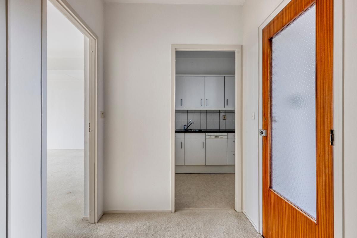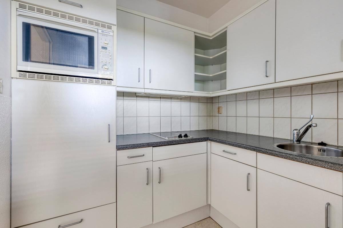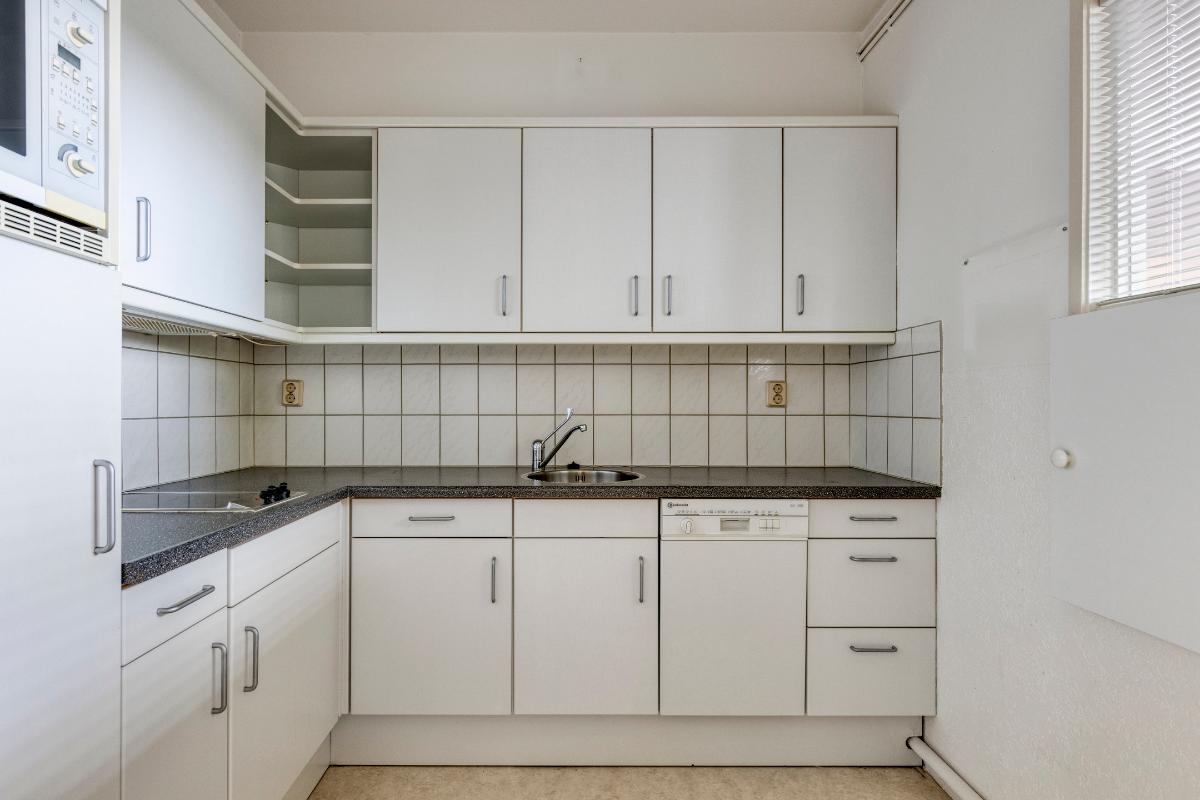 Indeling appartement Ruime entree/hal met garderobekast, toiletruimte met toilet en fonteintje met een doorloop naar de badkamer. De zonnige en royale living heeft een fraai uitzicht en geeft toegang tot het balkon aan de voorzijde. De aparte keuken is v.v. een witte L-vormige keukeninrichting met ingebouwde tweepits inductieplaat, koelvriescombinatie, combi-oven en vaatwasser. De slaapkamer is v.v. vaste kasten en geeft toegang tot het balkon en tot de badkamer. De badkamer heeft een inloopdouche en wastafel. De direct naastgelegen aparte berging annex bijkeuken is v.v. een wasmachine aansluiting en warmwaterboiler.