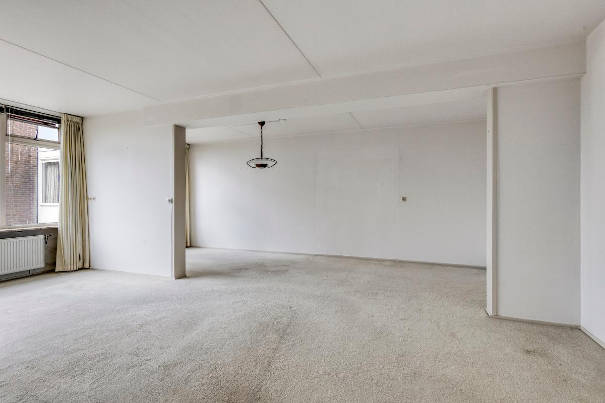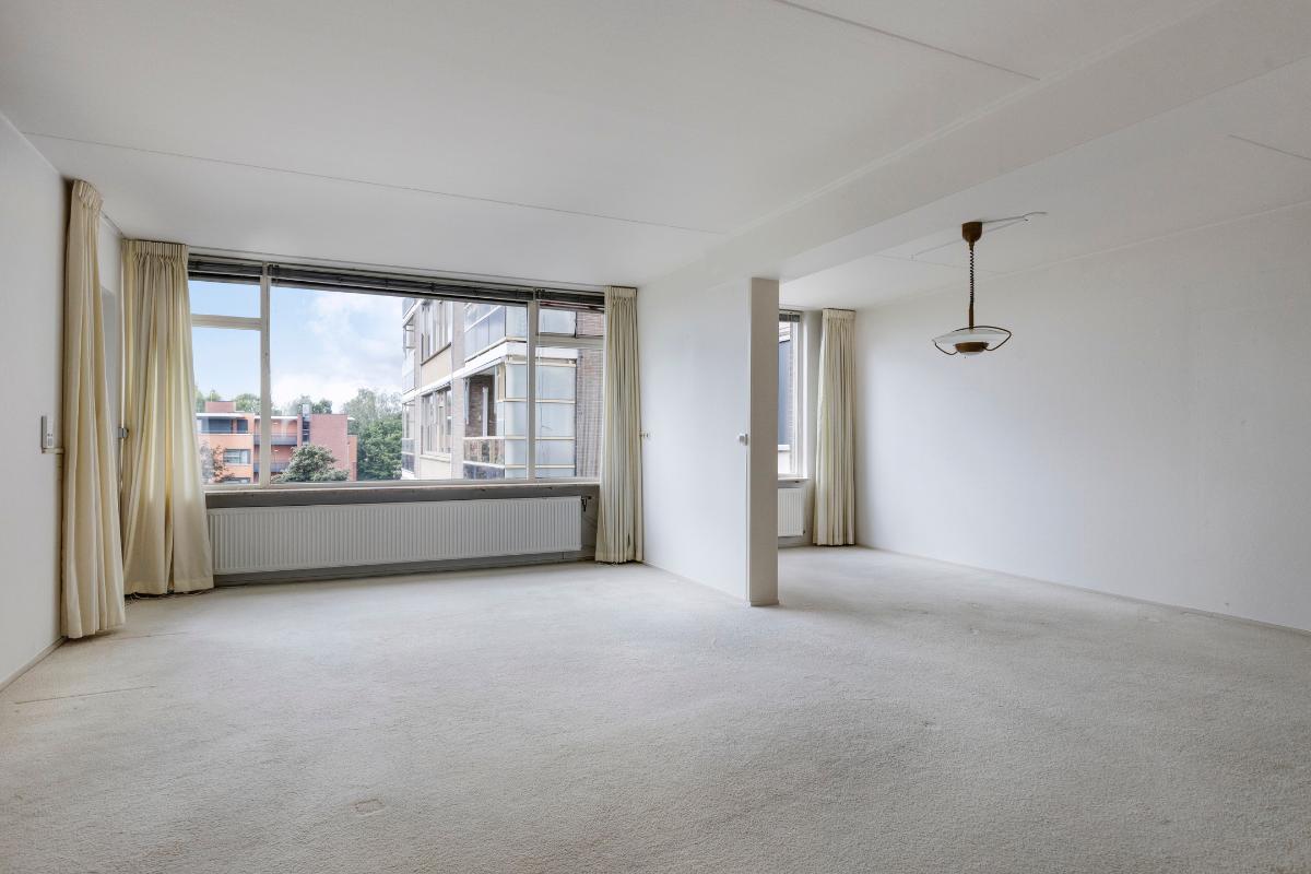 Dit keurige en comfortabele driekamerappartement (Type C: drie-kamerklein) bevindt zich op de derde verdieping. De voormalige zijkamer is bij de woonkamer getrokken tot een heerlijk royale en lichte living met balkon. Het appartement heeft een keuken met inbouwapparatuur, slaapkamer en badkamer. In de separate bijkeuken resp. berging bevindt zich de warmwaterboiler en de wasmachine aansluiting.