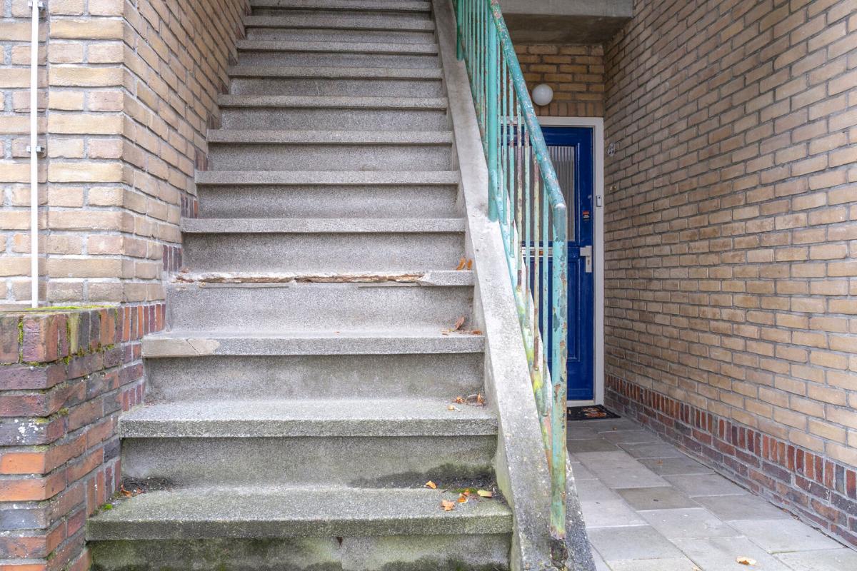 Bereikbaarheid Vanaf de straat bereikt u de voordeur met een open trap en een voorgelegen bordes.