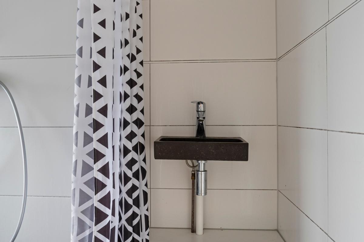 Indeling 1e woonlaag: entree/hal met meterkast, trapopgang en toiletruimte met hangtoilet. De L-vormige woonkamer heeft een houten vloer en is met een boog verdeeld in een zit-/voorkamer en een eet-/achterkamer. De woonkamer biedt een gezellig en levendig zicht op het voorgelegen plein en een vrij zicht over de tuinen aan de achterzijde. De voorkamer heeft een schouw en de achterkamer een vaste kast en een deur naar het achterbalkon. De aparte keuken heeft een moderne L-vormige keukeninrichting met apothekerskasten, lades en een ingebouwde inductie kookplaat, afzuigkap, koelkast, combi oven-magnetron en vaatwasser. Voorts is er een trap-/provisiekast en een balkondeur naar het zonnige achterbalkon. 2e woonlaag: de overloop geeft toegang tot een dakterrasje. De drie slaapkamers zijn groot resp. 8, 8 en 12 m2. De badkamer is v.v. een douche en wastafel. Een aparte was-/bergruimte met wasmachine aansluiting. 3e woonlaag: zeer royale multifunctionele zolderruimte.