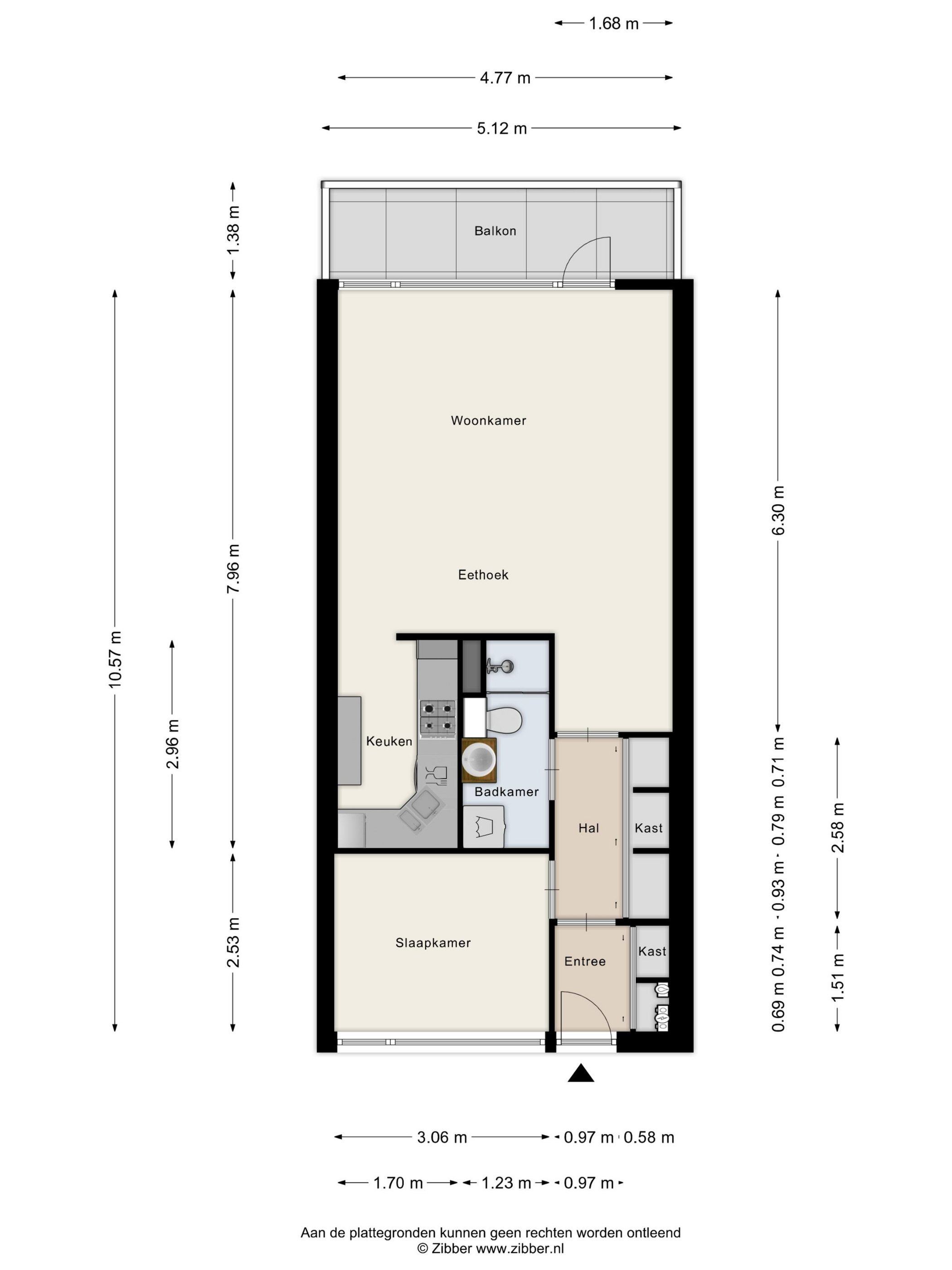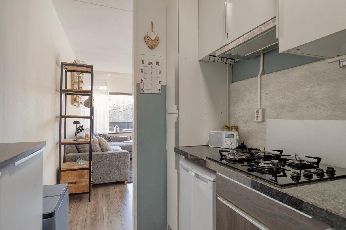 Indeling entree/tochtportaal met meterkast en vaste garderobekast. Tussenhal met vaste schuifkastenwand. Woonkamer met laminaatvoer, balkondeur en gedeeltelijk open keuken. De keuken is voorzien van een moderne L-vormige keukeninrichting v.v. gaskookplaat, afzuigkap, koelkast, oven en vaatwasser. Aparte slaapkamer ca. 8 m2. Badkamer met douchecabine, toilet, wastafelmeubel en wasmachineaansluiting.